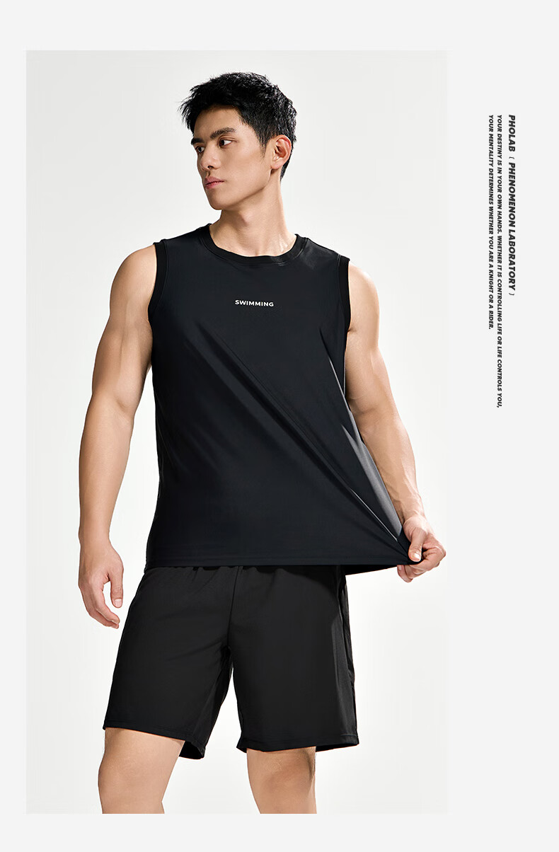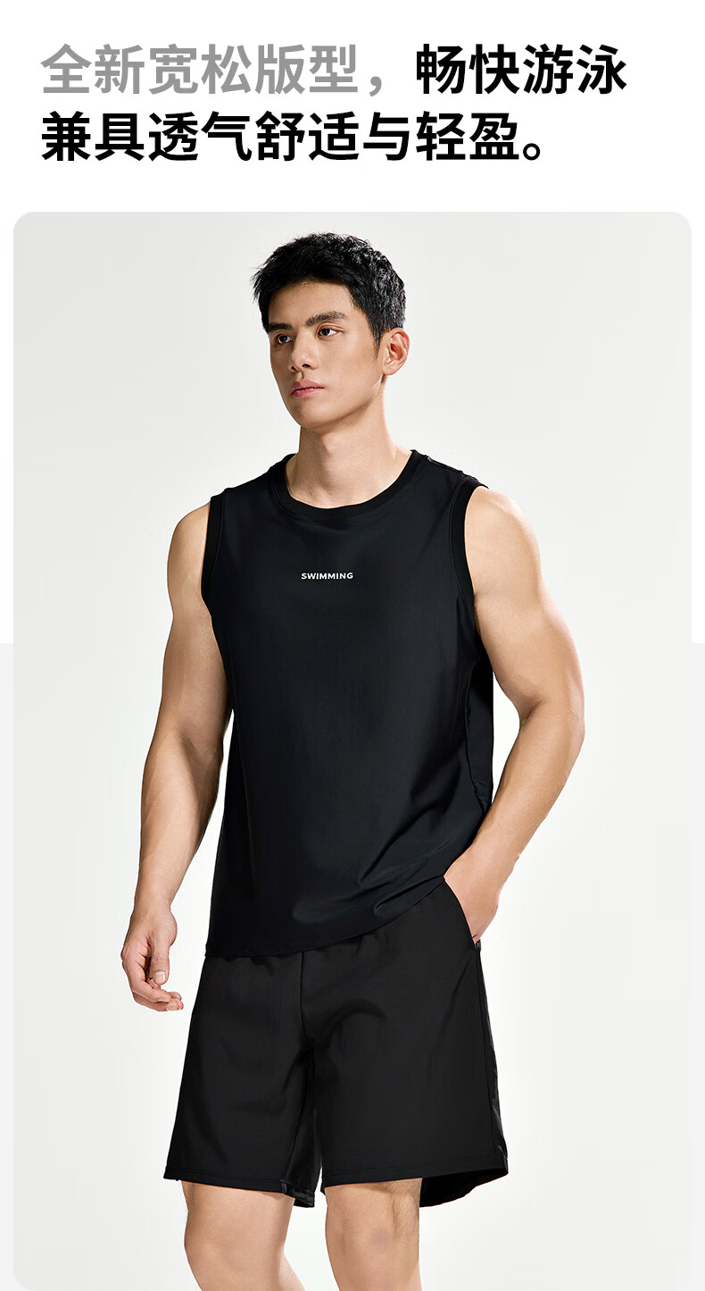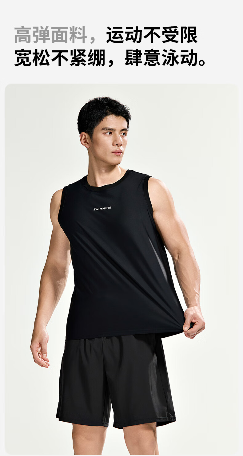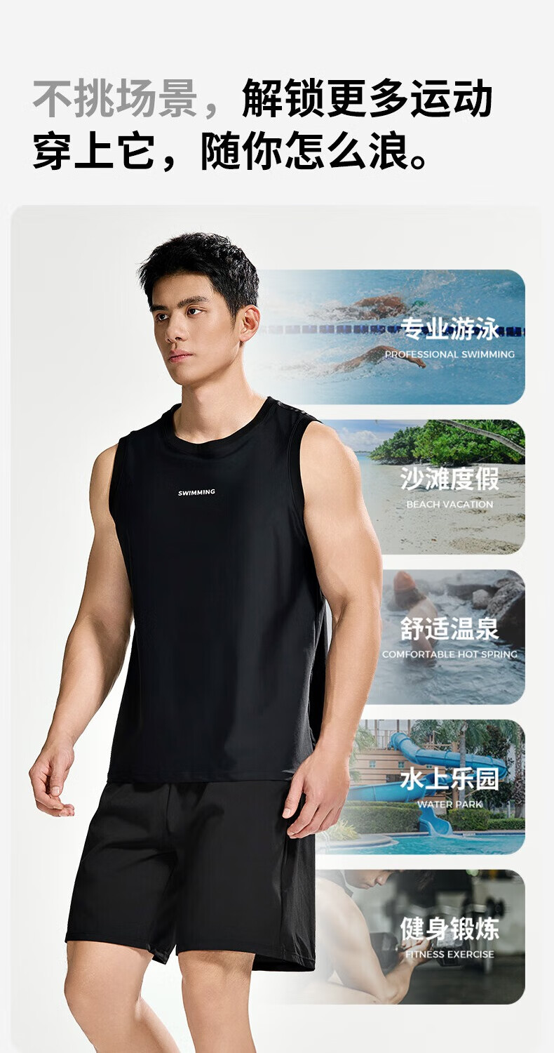 Yuke Men's Swimsuit Set 2025 New Summer Quick-Drying Swimming Vest Men's Anti-Embarrassing Swimming Pants Equipment Complete Set Black Suit + Swimming Cap 2XL Size Recommended 165-175CM65-75KG