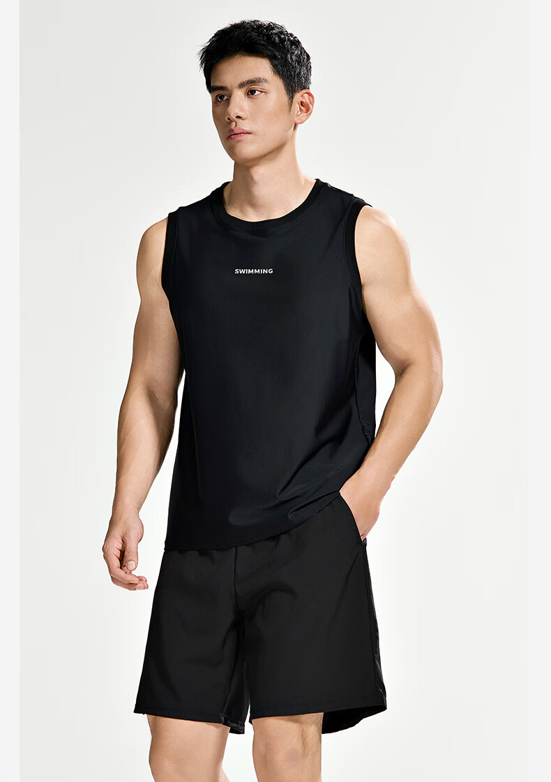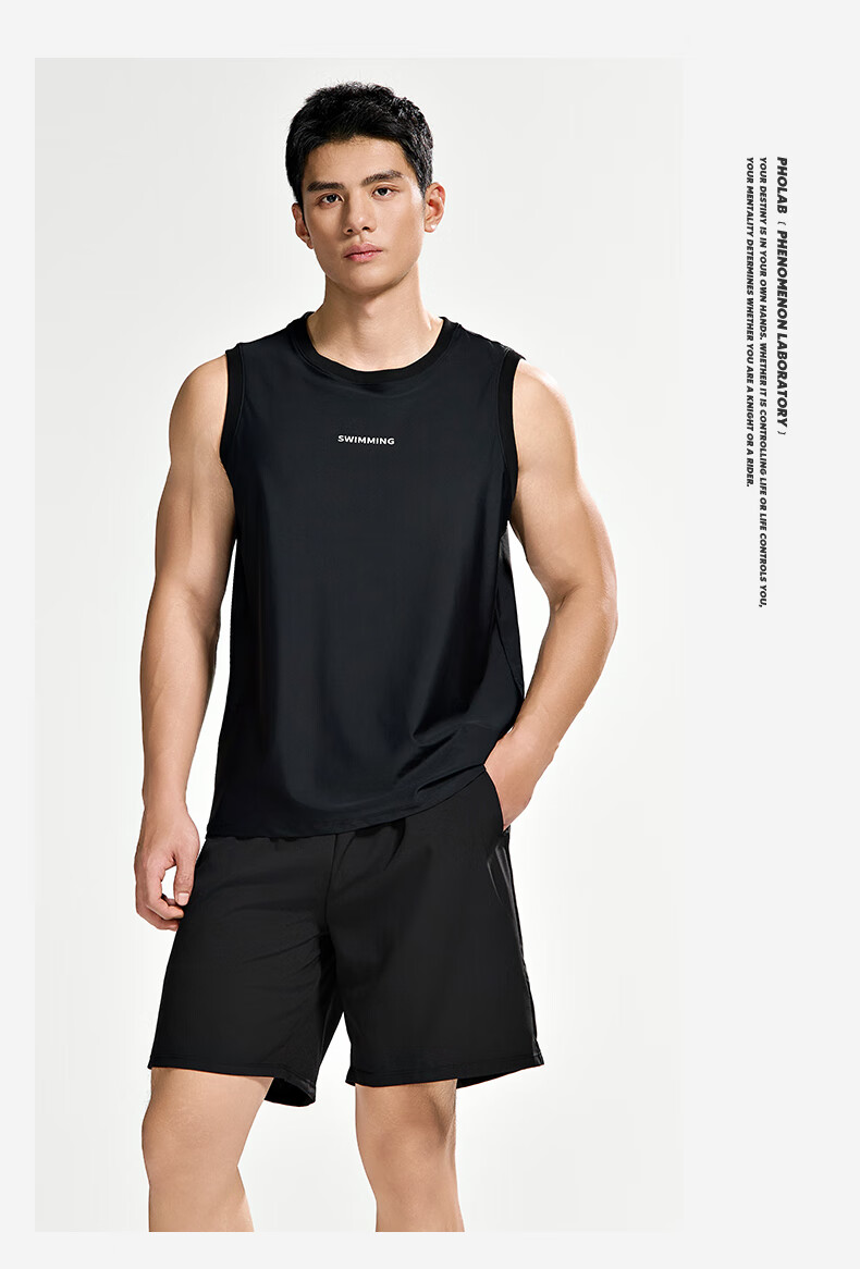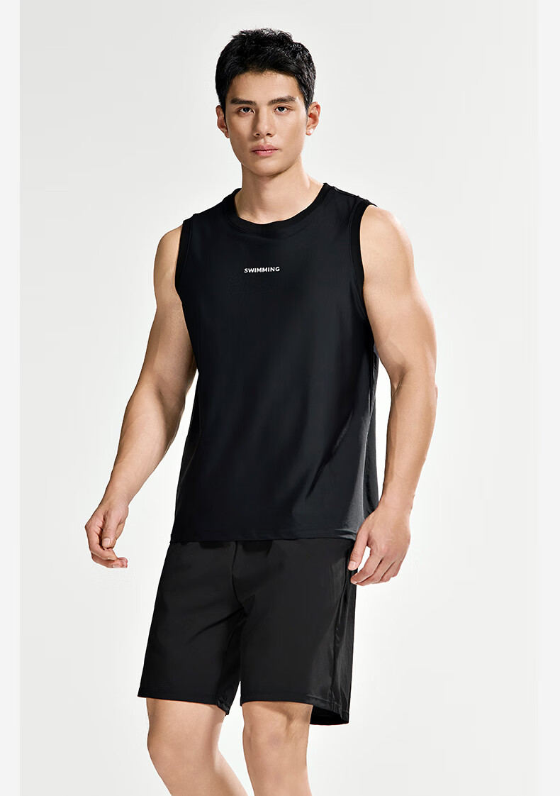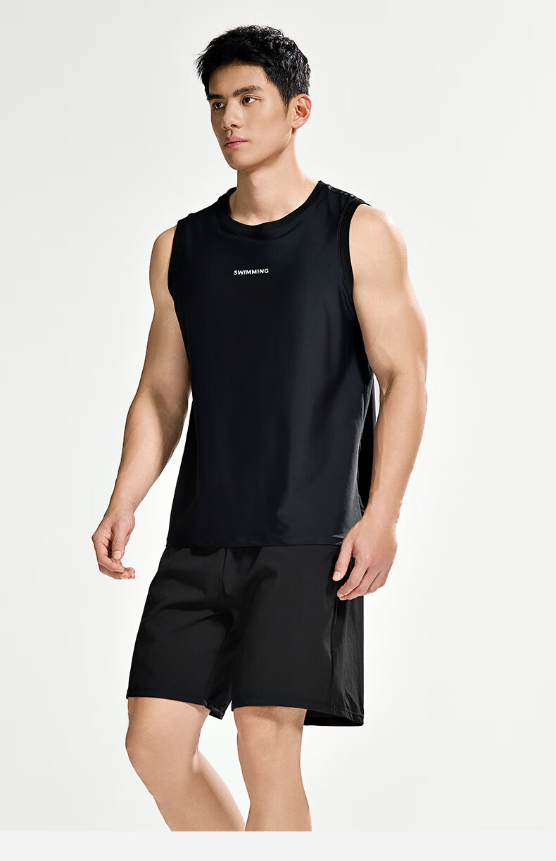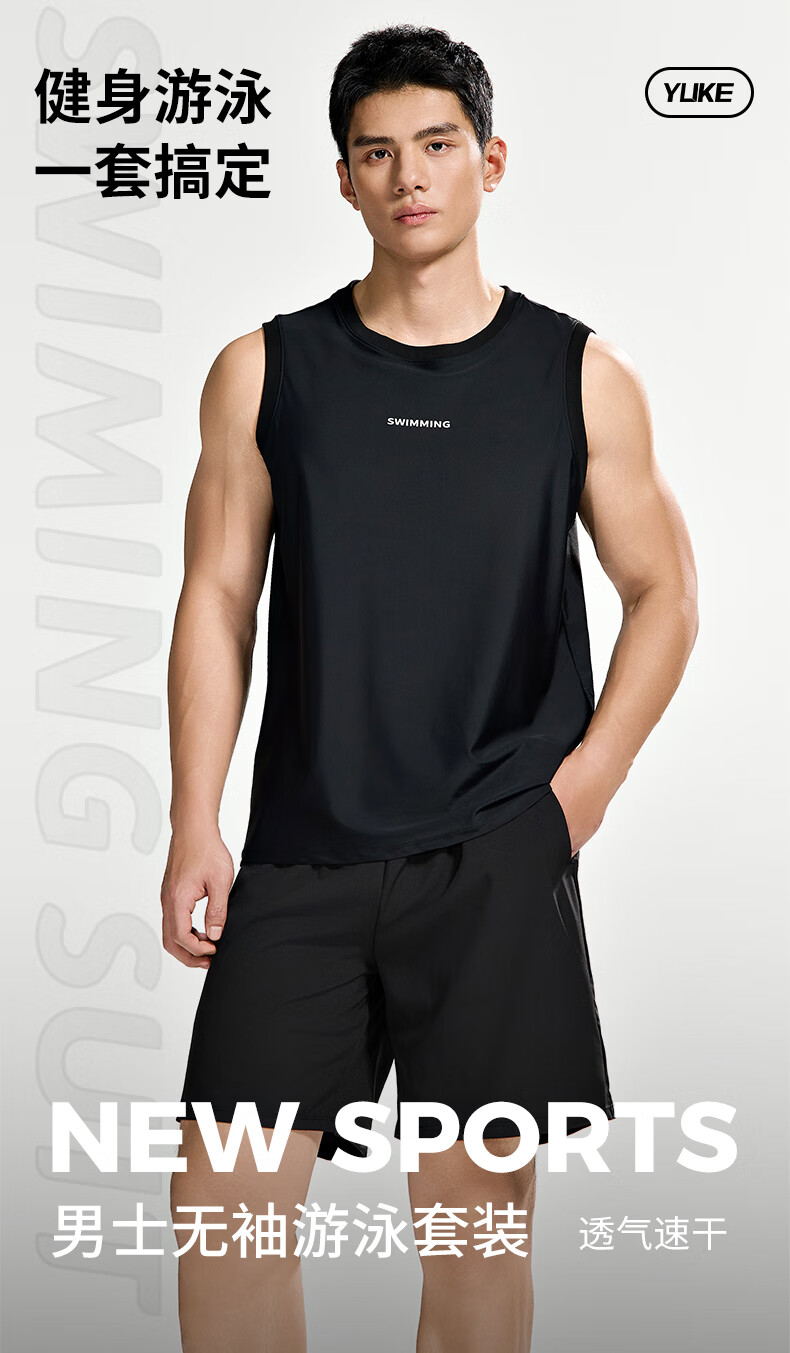 Yuke Men's Swimsuit Set 2025 New Summer Quick-Drying Swimming Vest Men's Anti-Embarrassing Swimming Pants Equipment Complete Set Black Suit + Swimming Cap 2XL Size Recommended 165-175CM65-75KG