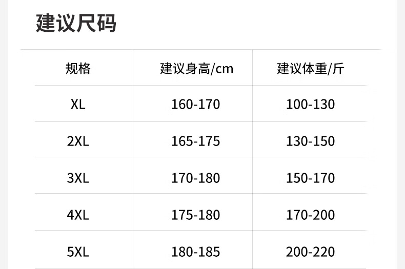 China (cm) 165 / 88-90 170 / 96-98 175 / 108-110 180 / 118-122 185 / 126-130