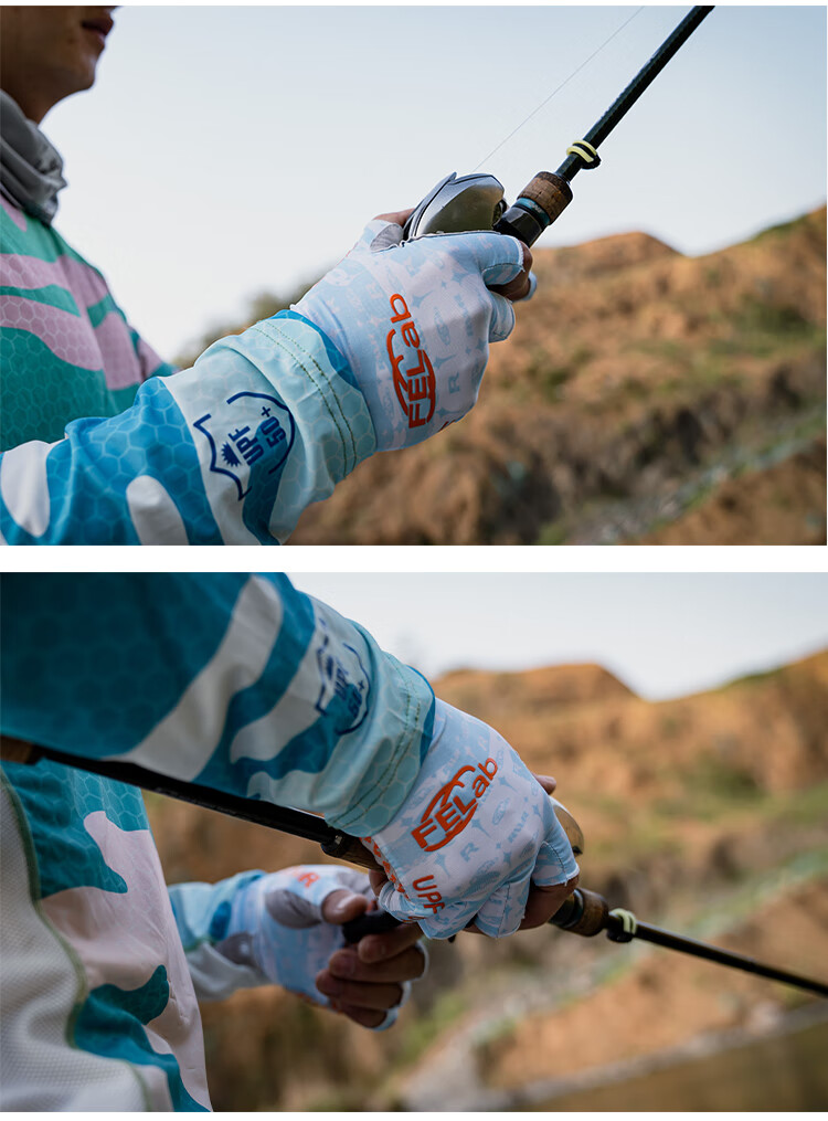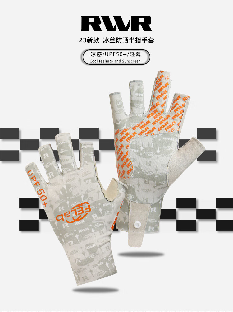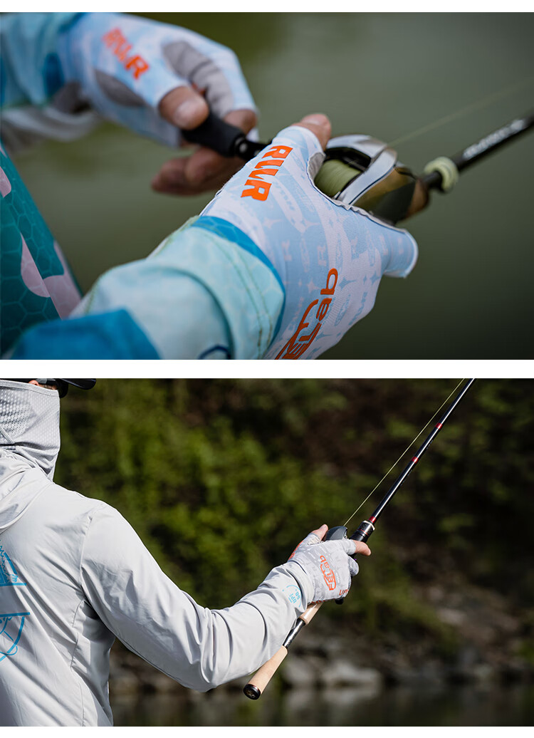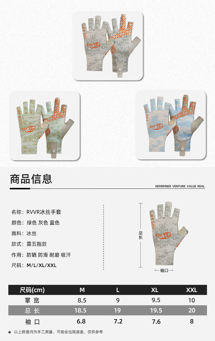 RVVR outdoor UPF50 ice silk sun protection gloves summer five-finger fishing blue M