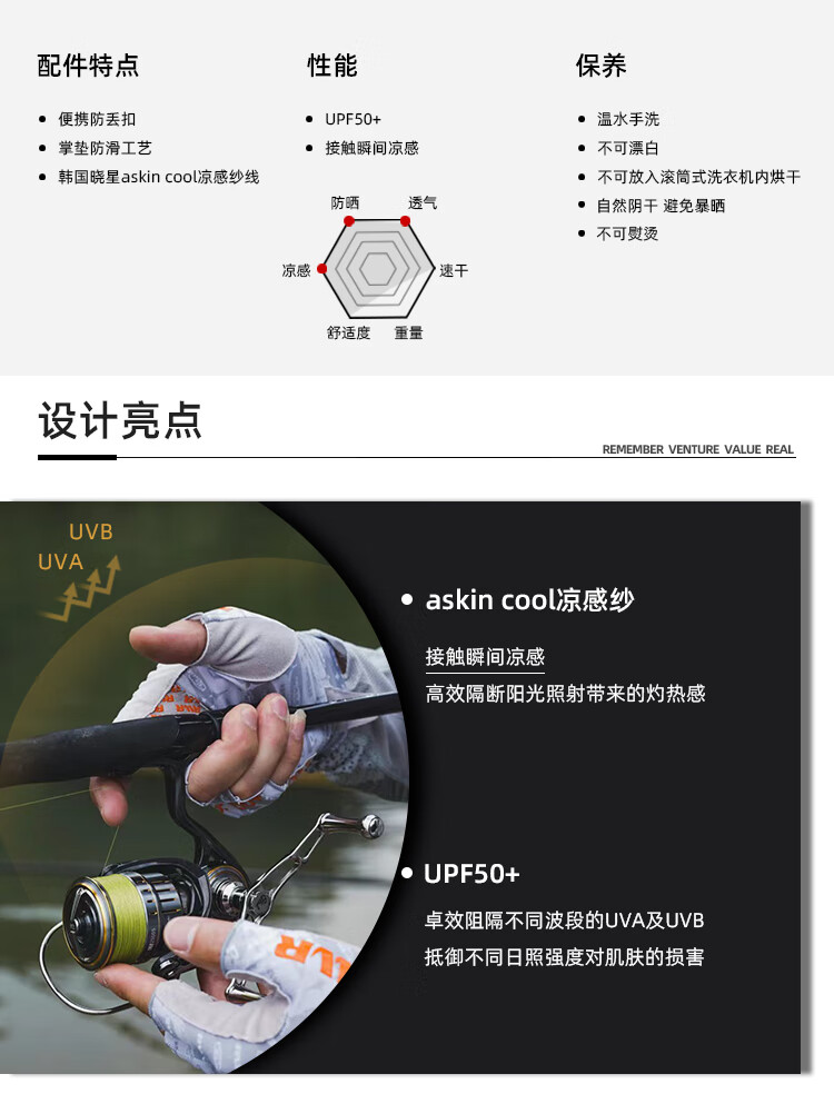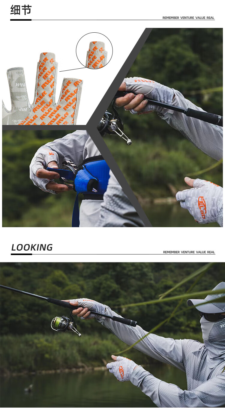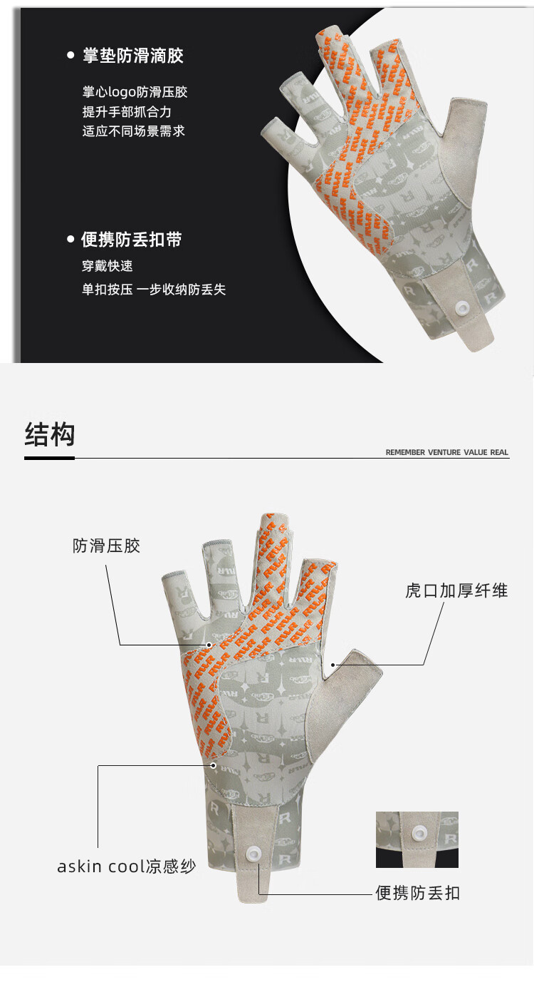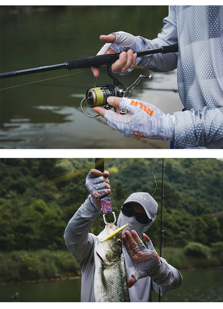 RVVR outdoor UPF50 ice silk sun protection gloves summer five-finger fishing blue M