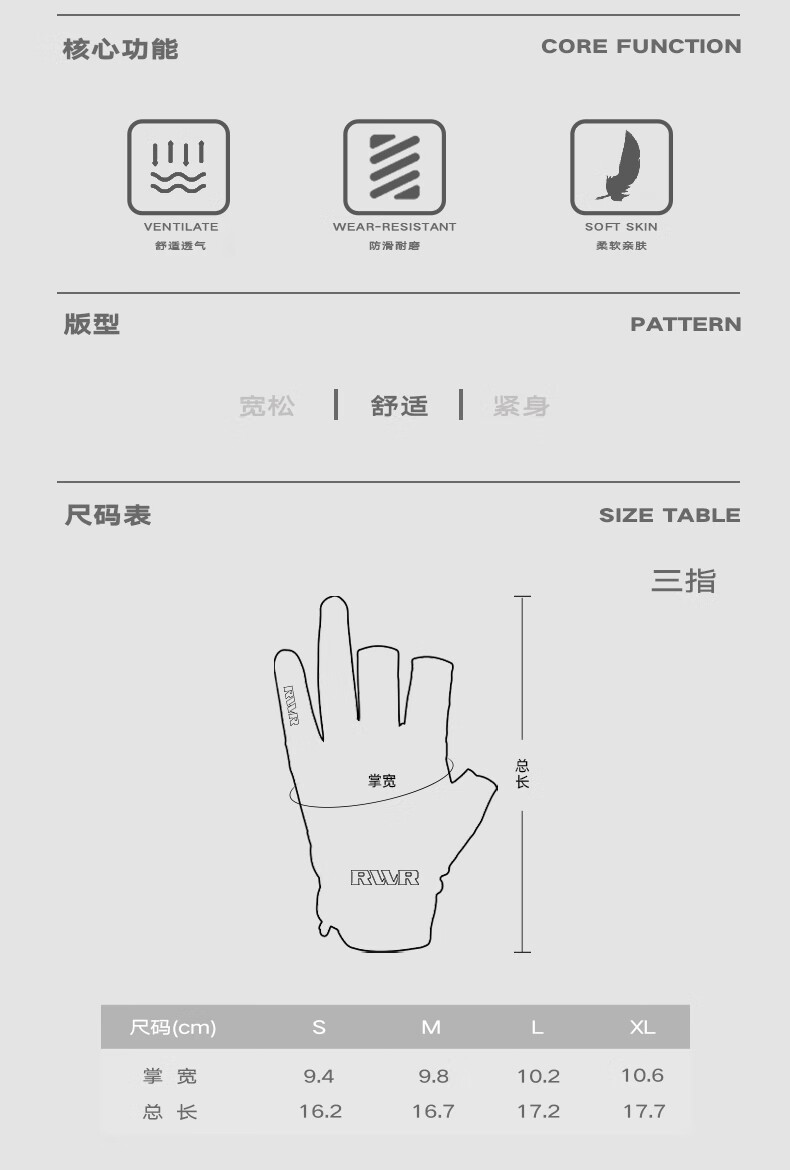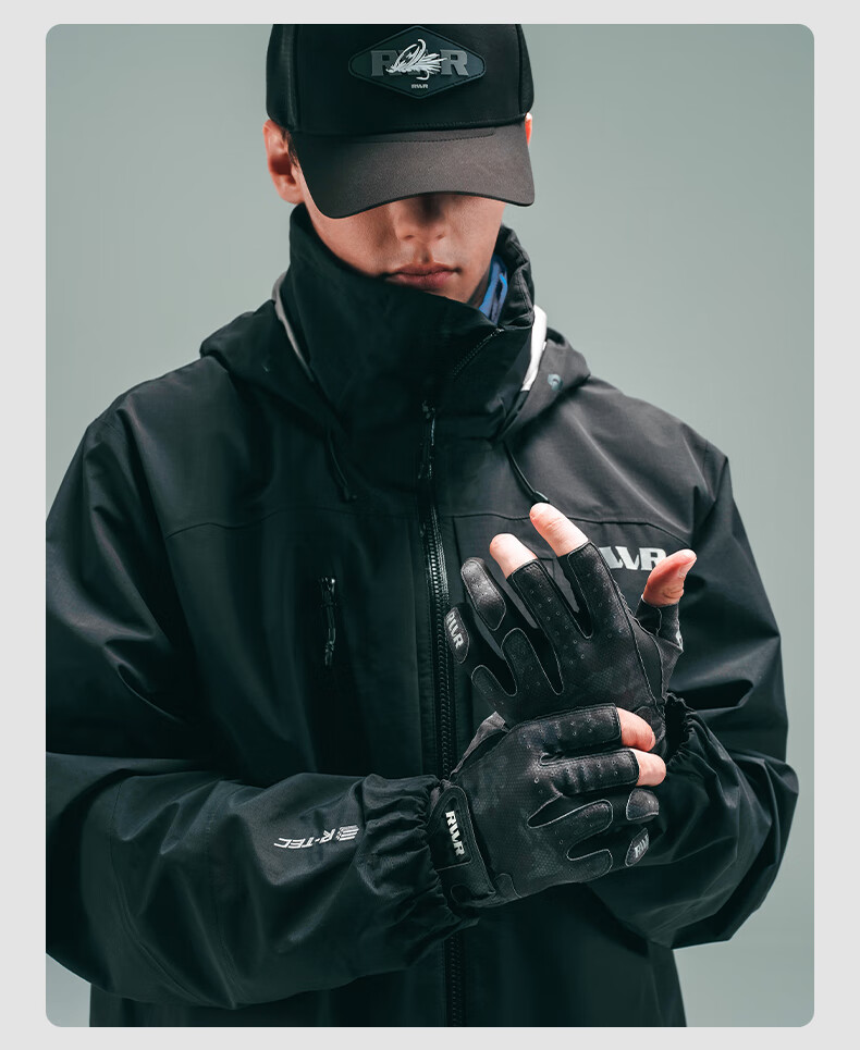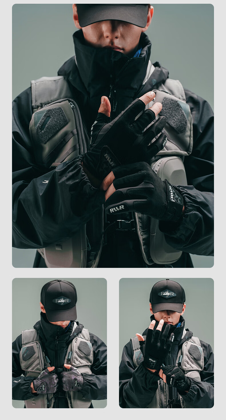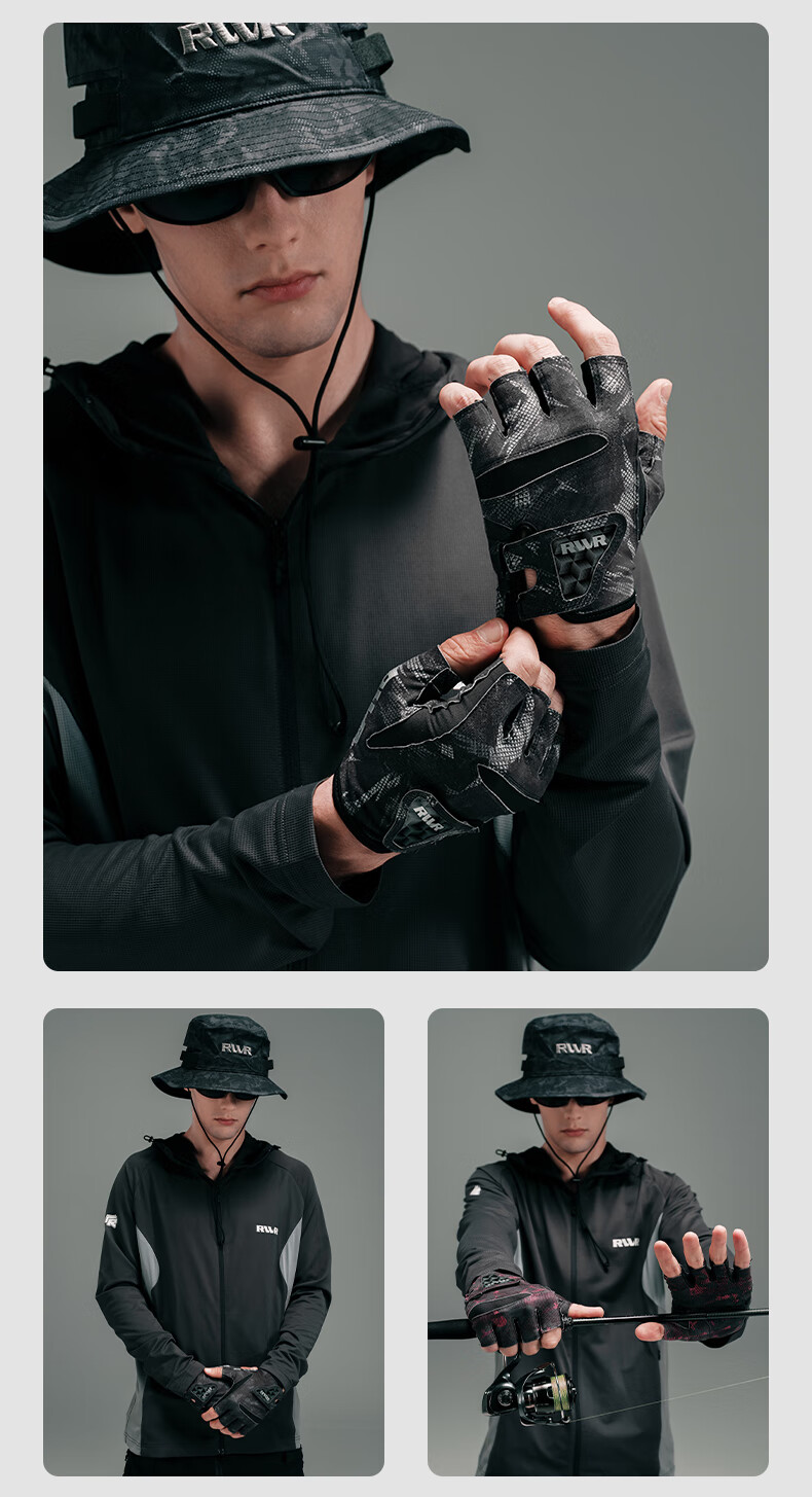 RVVR outdoor new anti-slip fishing gloves, wear-resistant and breathable three-finger lure gloves, three-finger exposed black M