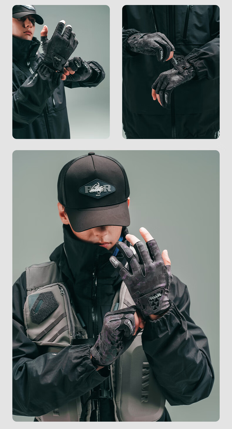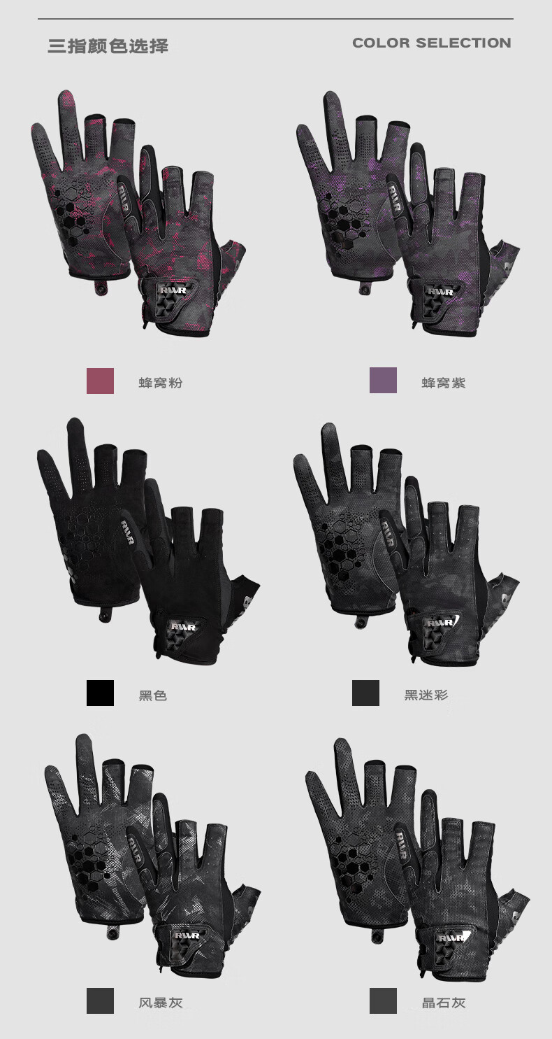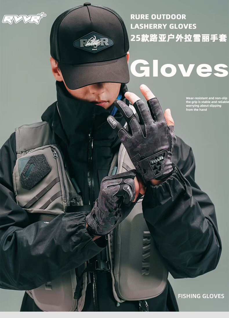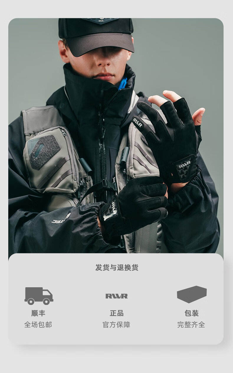 RVVR outdoor new anti-slip fishing gloves, wear-resistant and breathable three-finger lure gloves, three-finger exposed black M