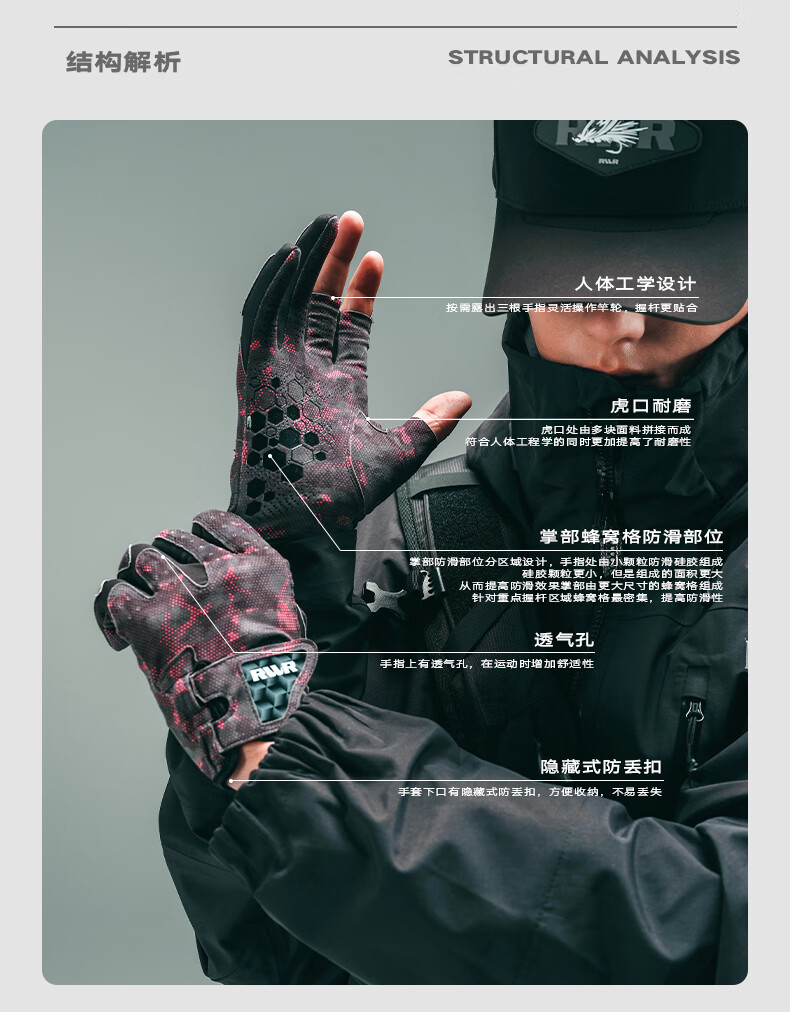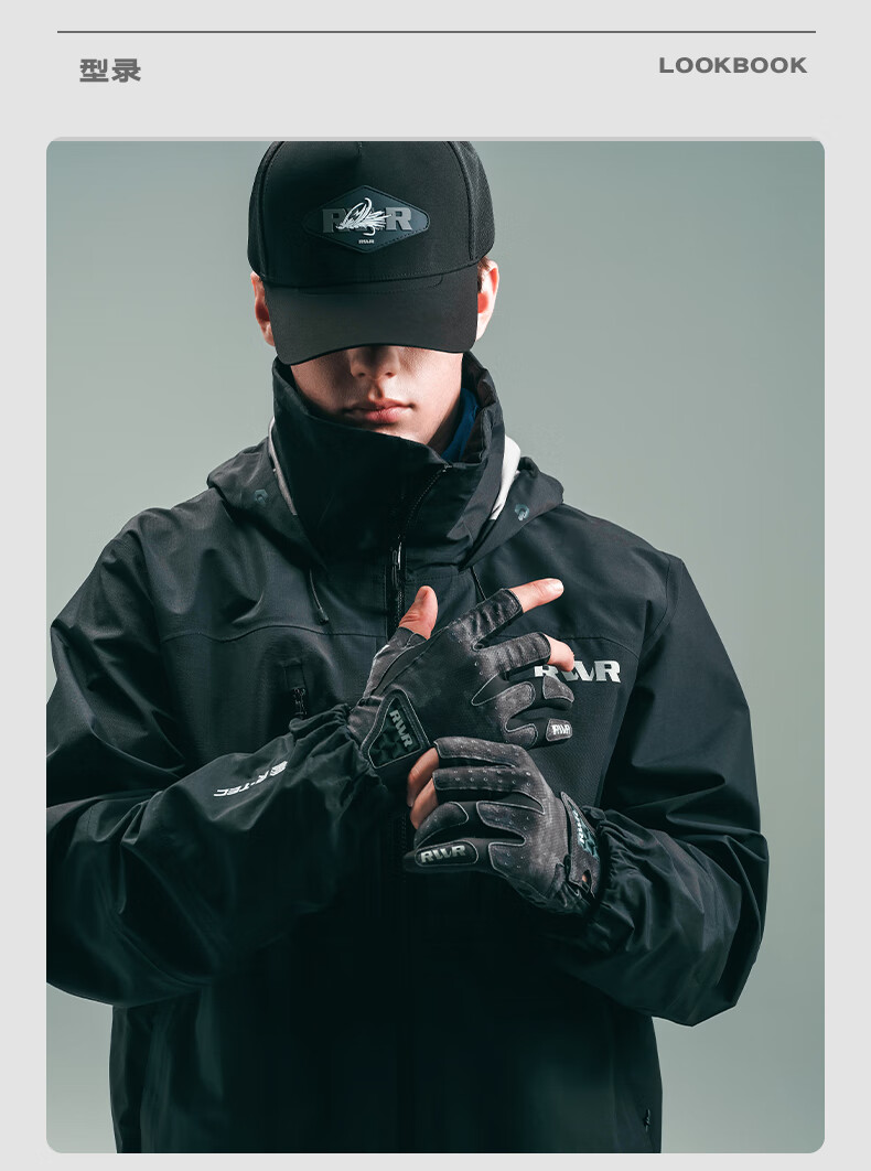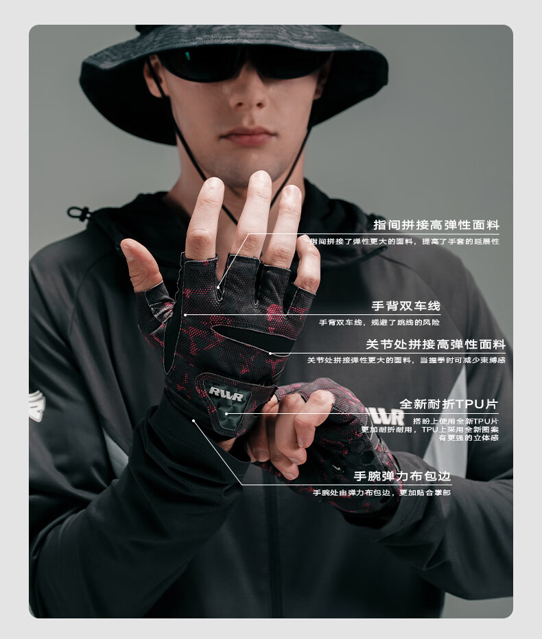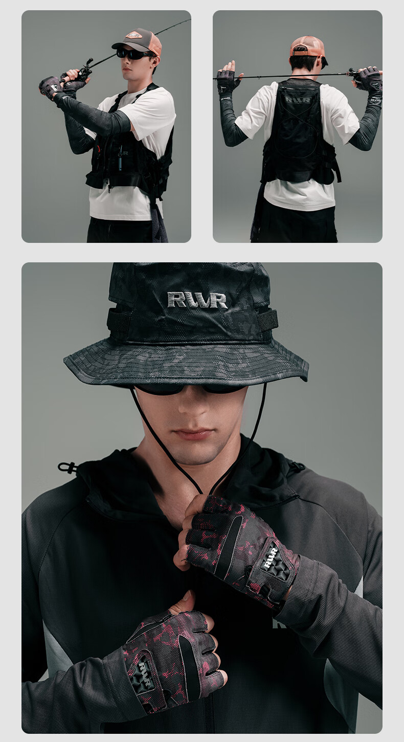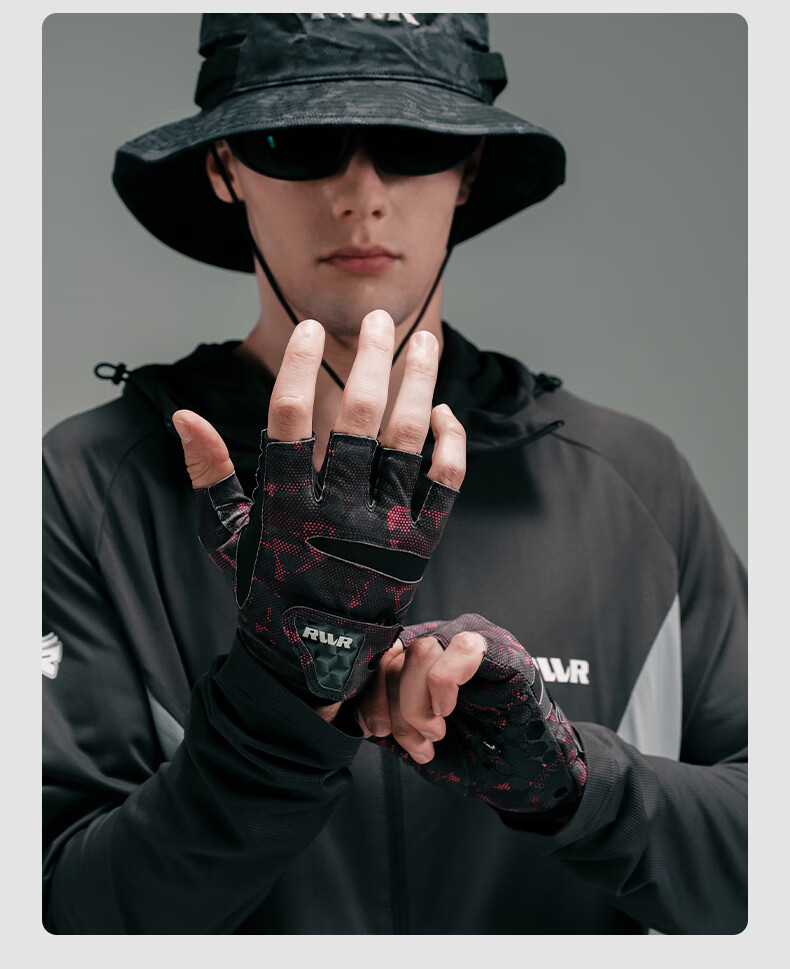 RVVR outdoor new anti-slip fishing gloves, wear-resistant and breathable three-finger lure gloves, three-finger exposed black M