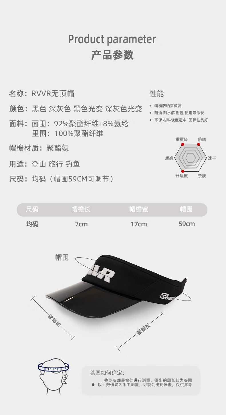 RVVR Summer Outdoor Sun Protection Hat Men's Empty Top Sunshade Fishing Hat Luya Hat Black One Size