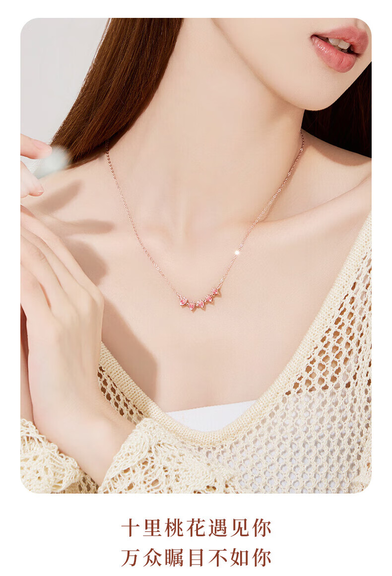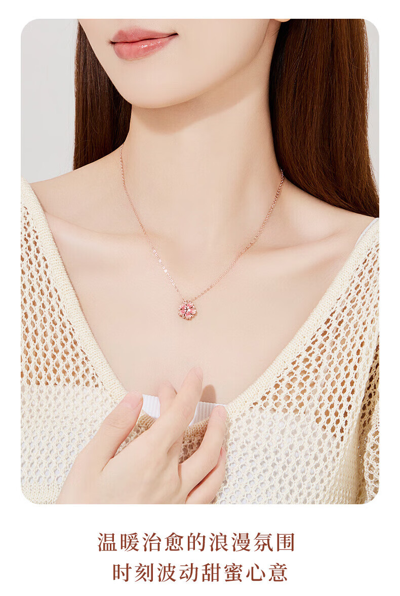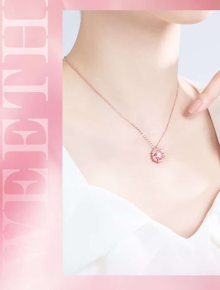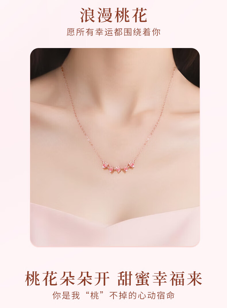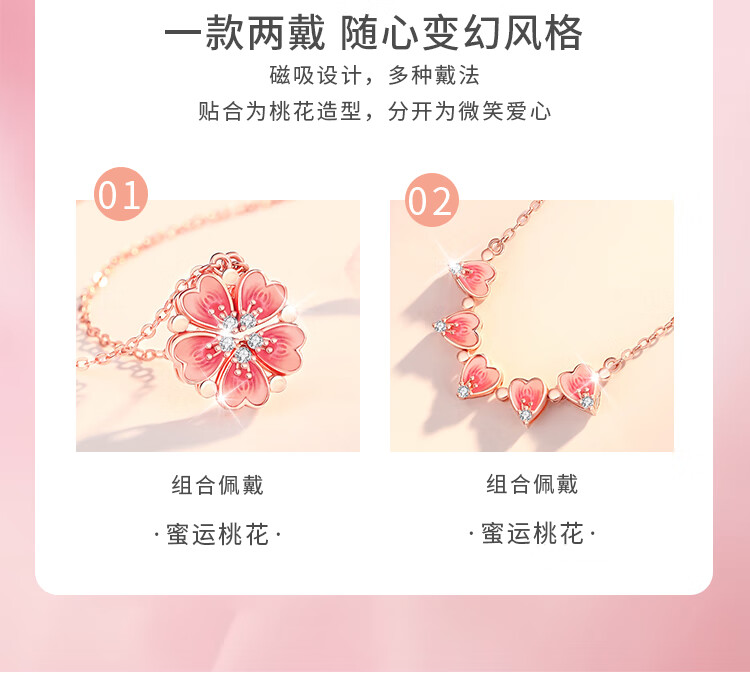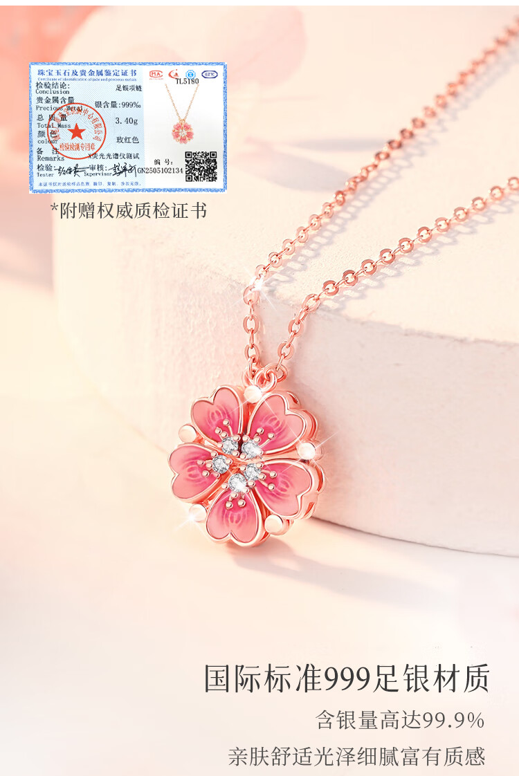 Ginqianhui 999 sterling silver peach blossom necklace for women, light luxury niche pendant, birthday, New Year, and Valentine's Day gift for girlfriend. Honey peach blossom necklace/999 pure silver/one for two wears + seven warehouse delivery. Valentine's Day girl gift/with jewelry certificate/rose gift box for wife