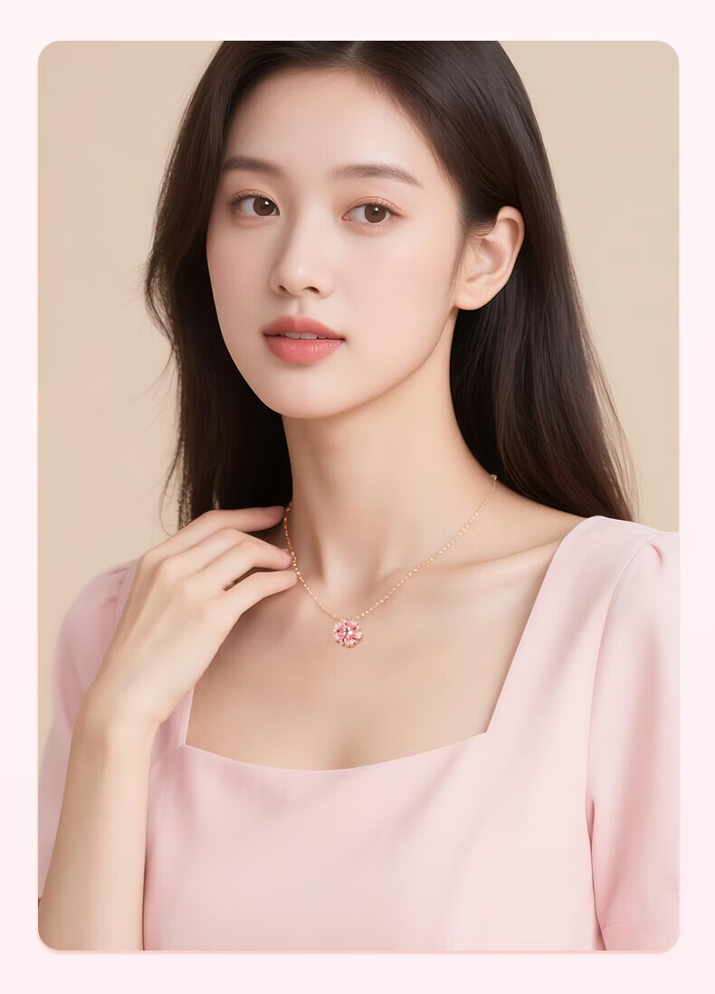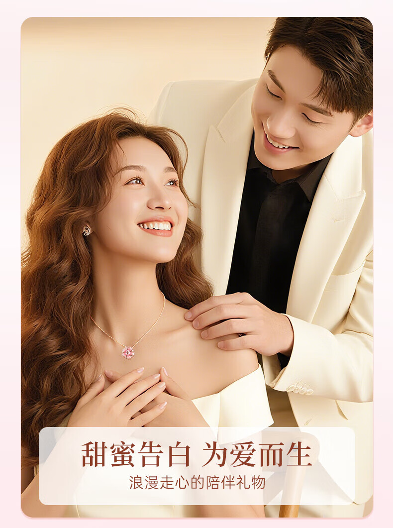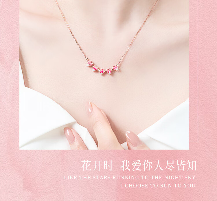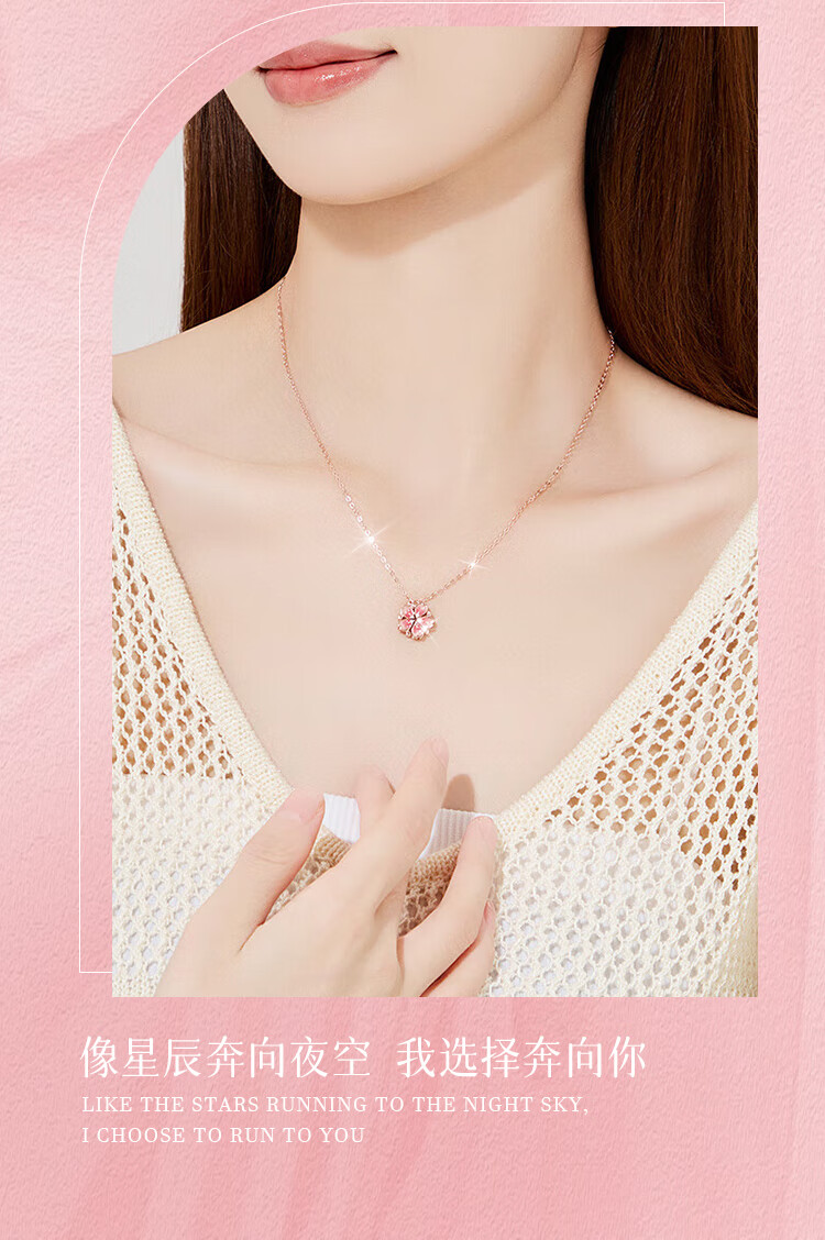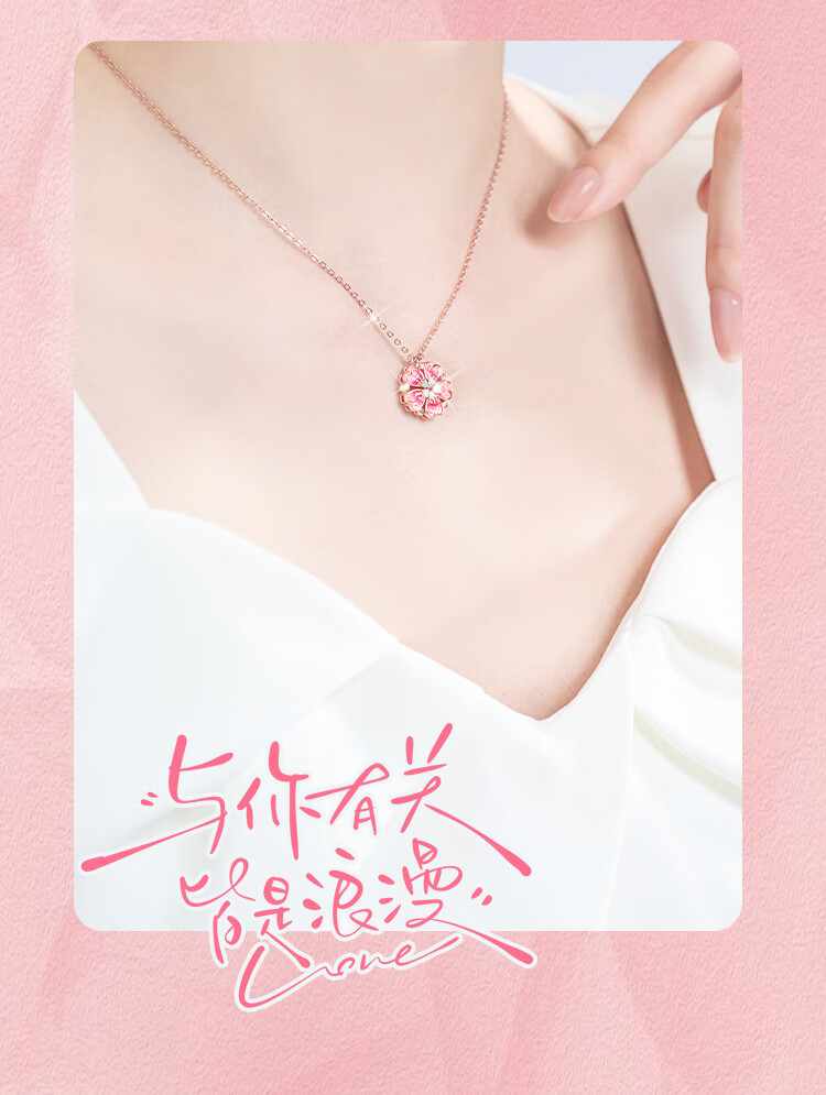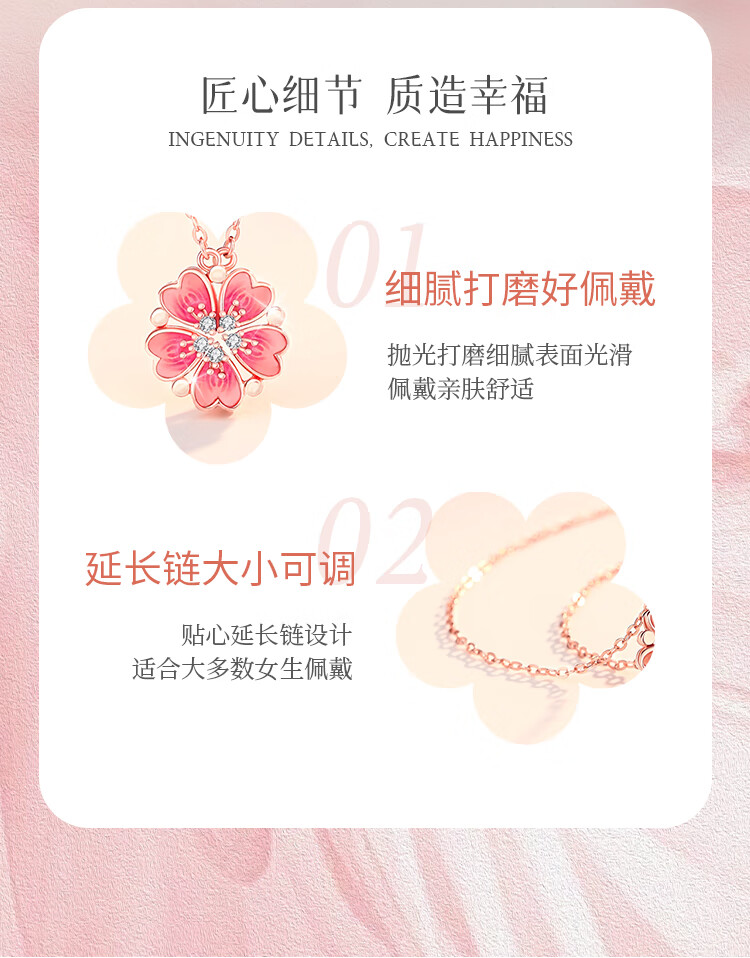 Ginqianhui 999 sterling silver peach blossom necklace for women, light luxury niche pendant, birthday, New Year, and Valentine's Day gift for girlfriend. Honey peach blossom necklace/999 pure silver/one for two wears + seven warehouse delivery. Valentine's Day girl gift/with jewelry certificate/rose gift box for wife