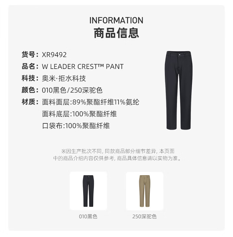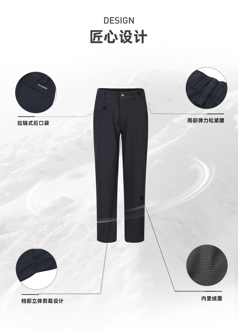 Columbia Zhang Jingyi's same style Columbia outdoor women's water-repellent suede lining sports travel casual trousers XR9492 010 Asia-Pacific slim fit black M (160/62A)