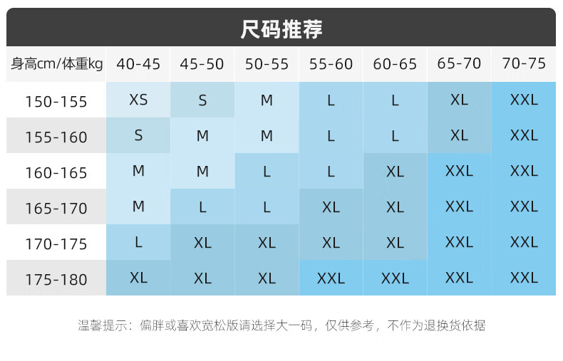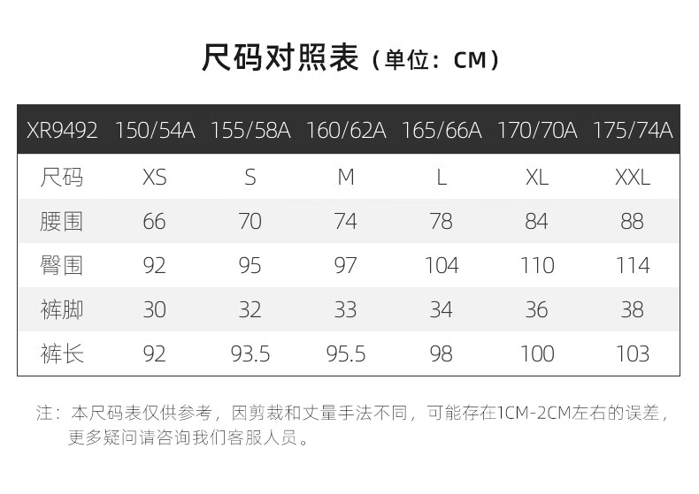 China (cm) 160-165/84-86 165-170 / 88-90 167-172 / 92-96 168-173 / 98-102 170-176 / 106-110
