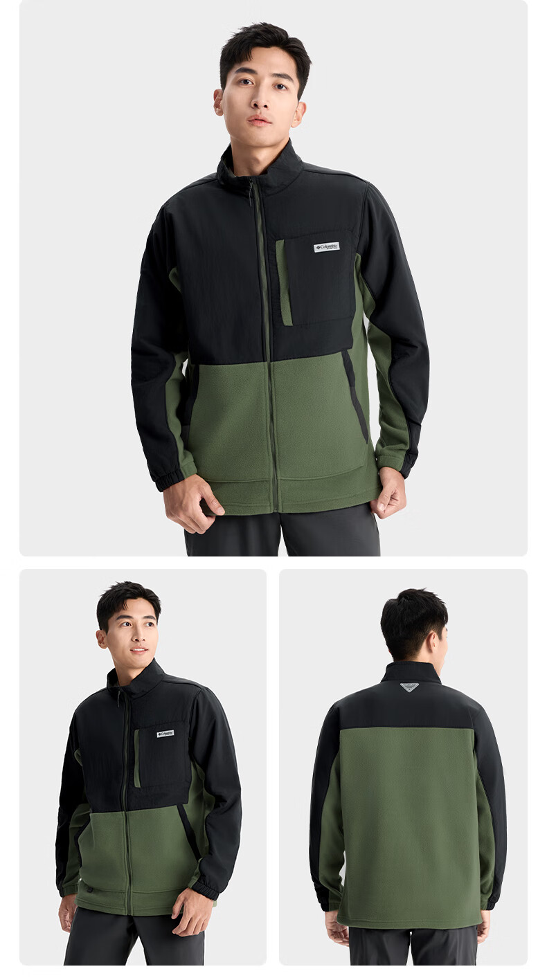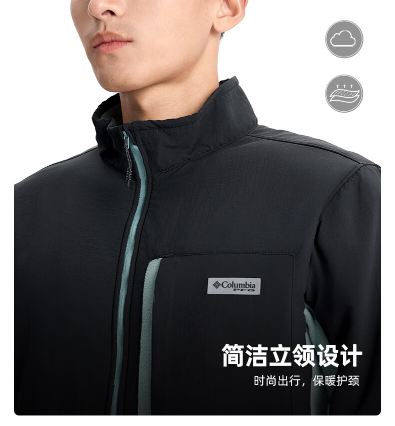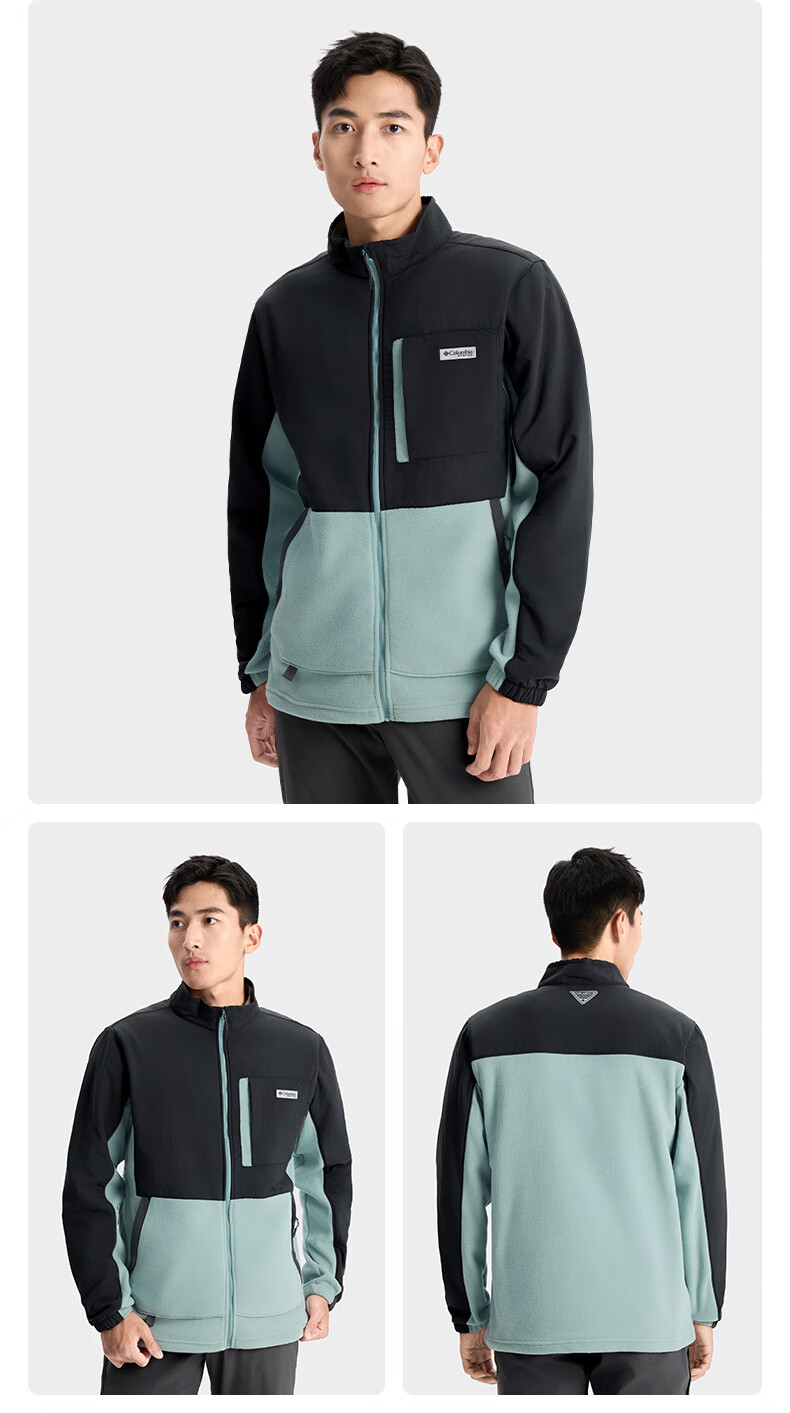 Columbia Outdoor 25th Autumn and Winter New Men's Fishing Series Warm Fleece Jacket FO9344 014 European and American Slim Fit Shark Black and Dawn Blue XXL (190/104A)