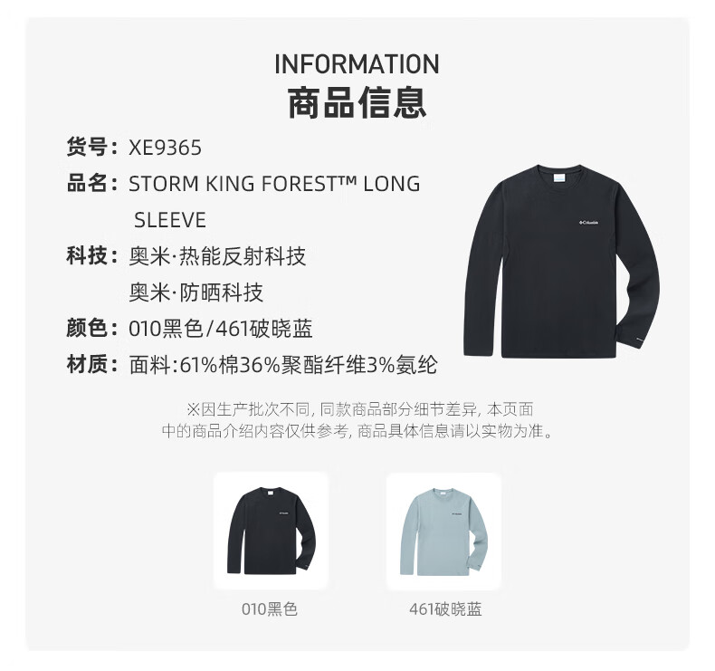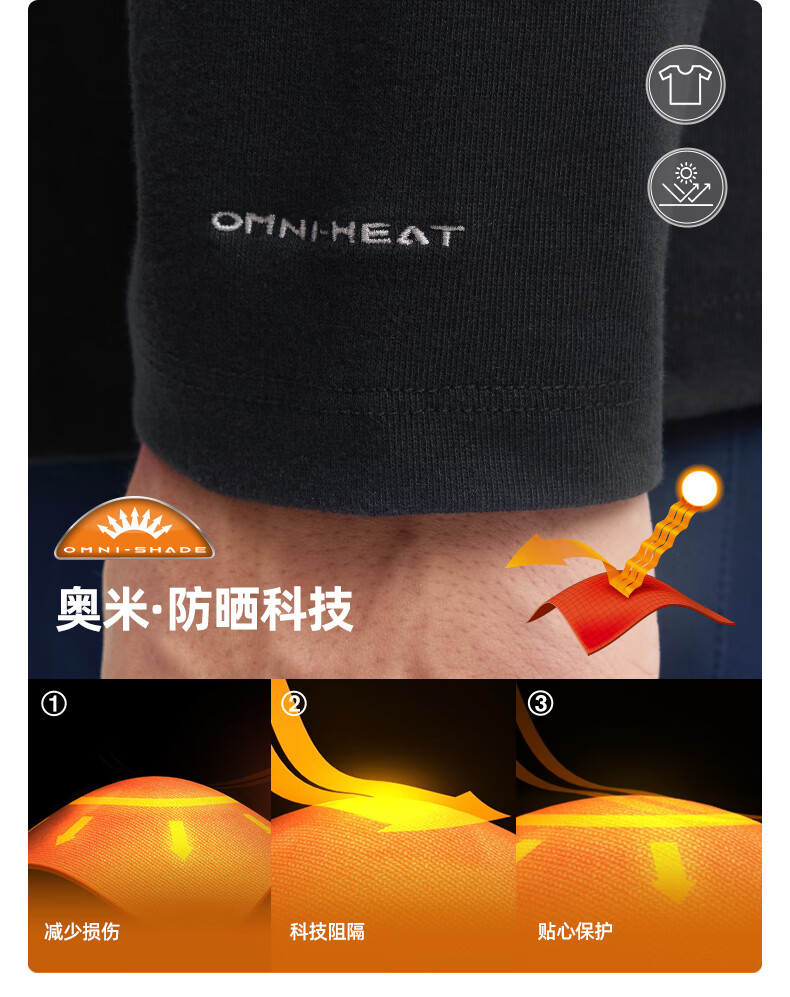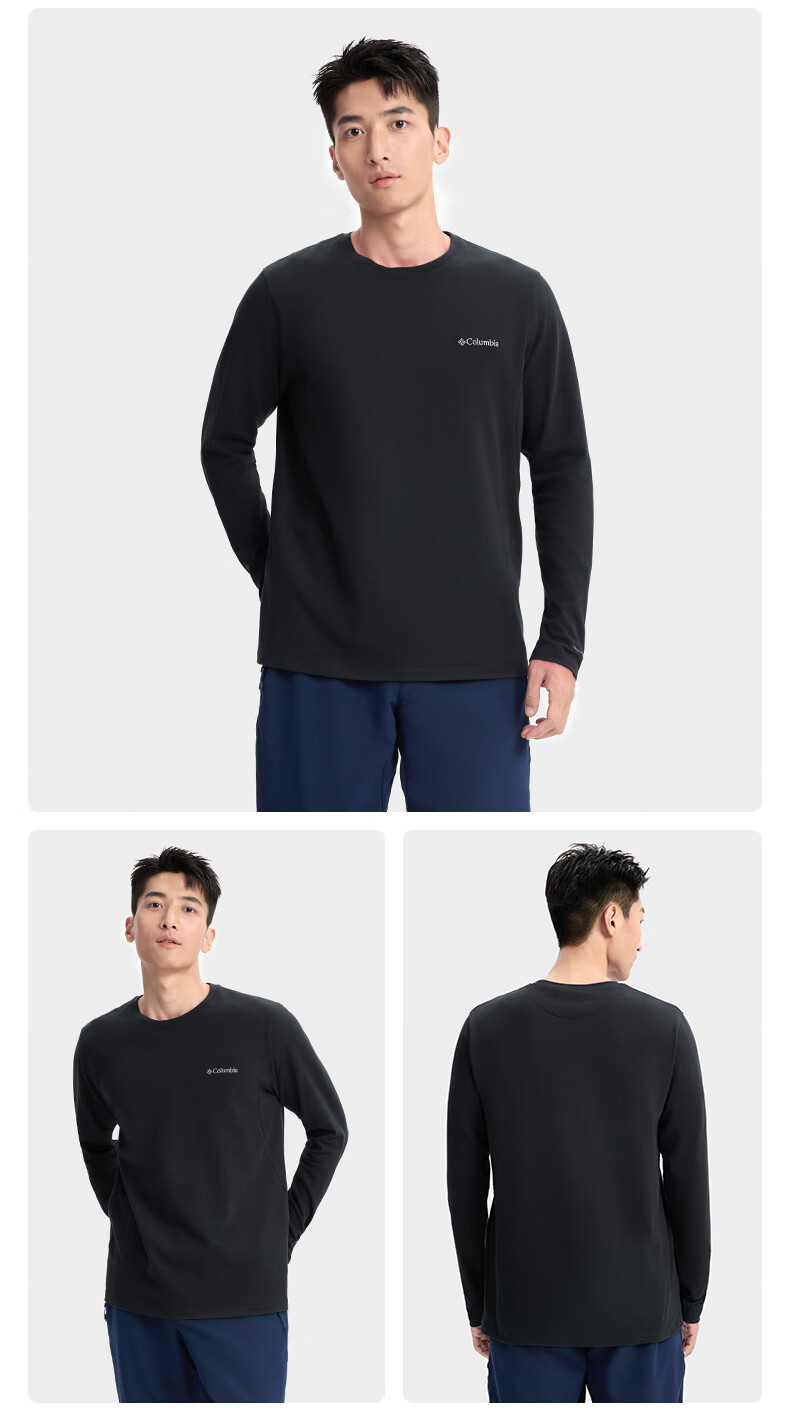 Columbia Outdoor 25 autumn and winter new men's silver point thermal UPF50 sun protection T-shirt XE9365 010 black Asia-Pacific slim fit M (175/96A)