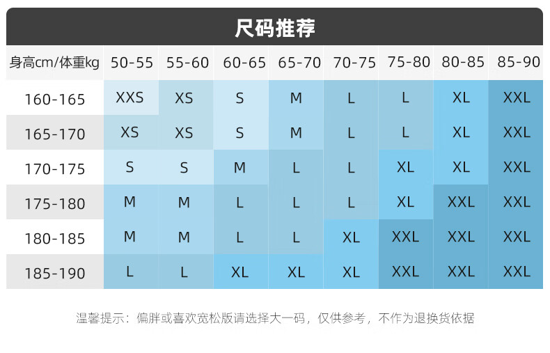 China (cm) 160-165/84-86 165-170 / 88-90 167-172 / 92-96 168-173 / 98-102 170-176 / 106-110