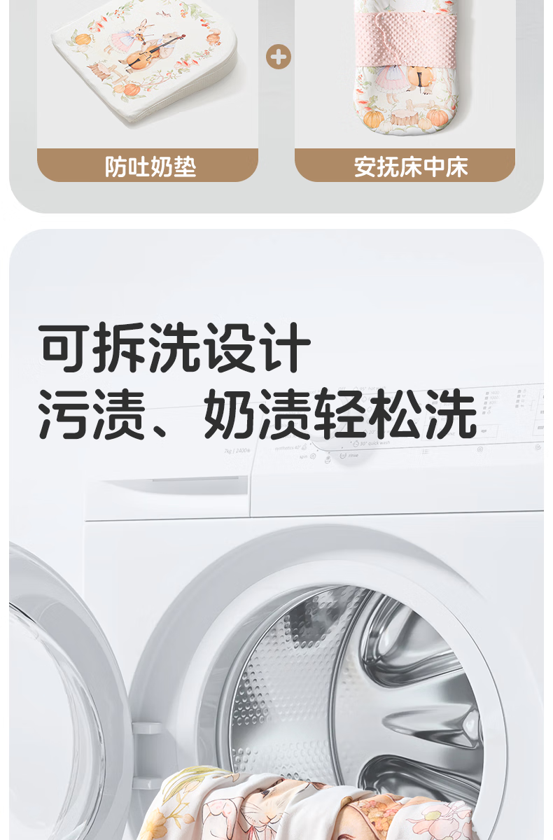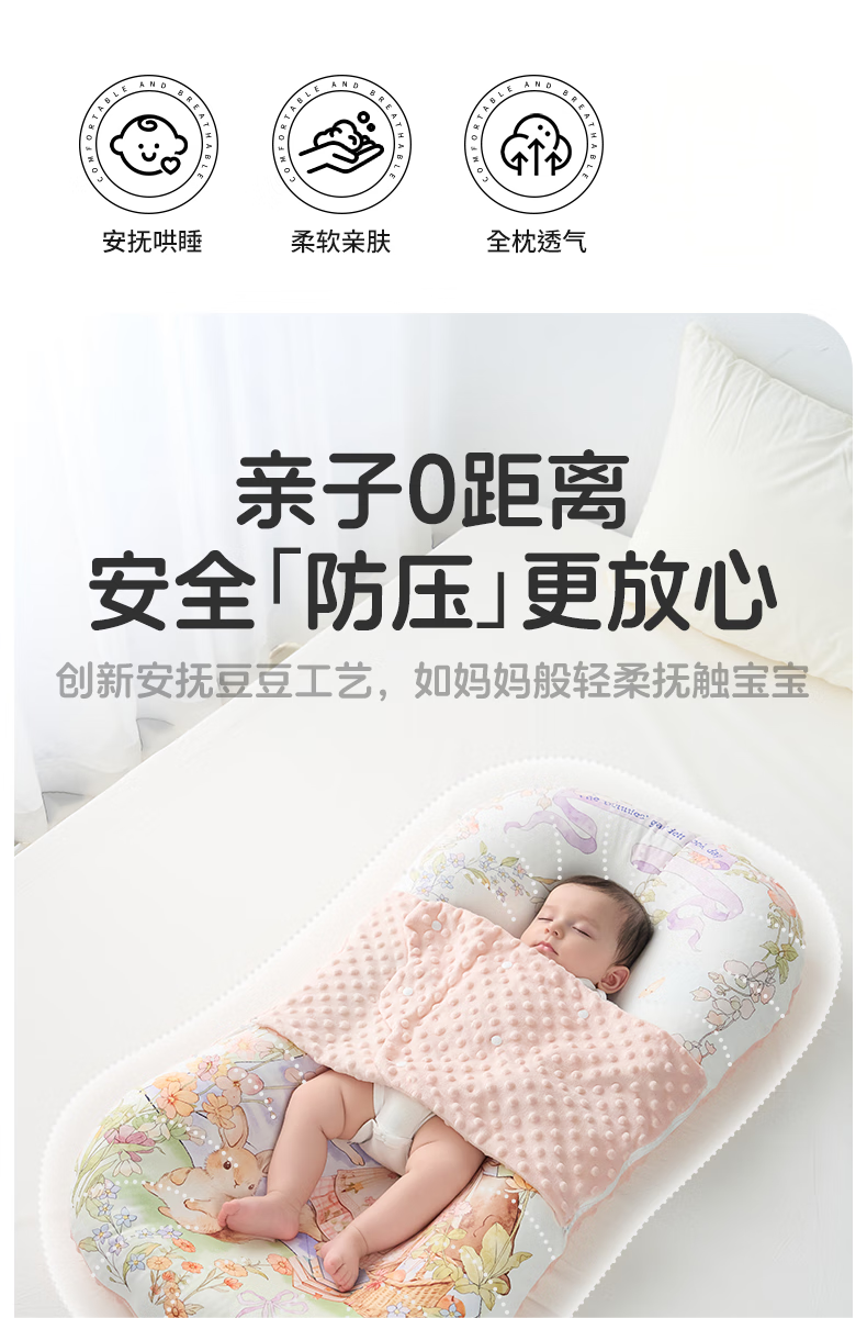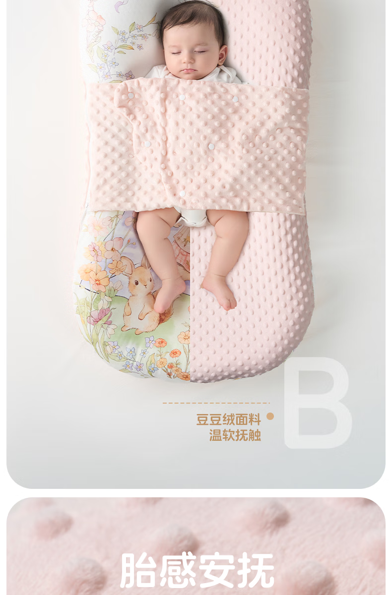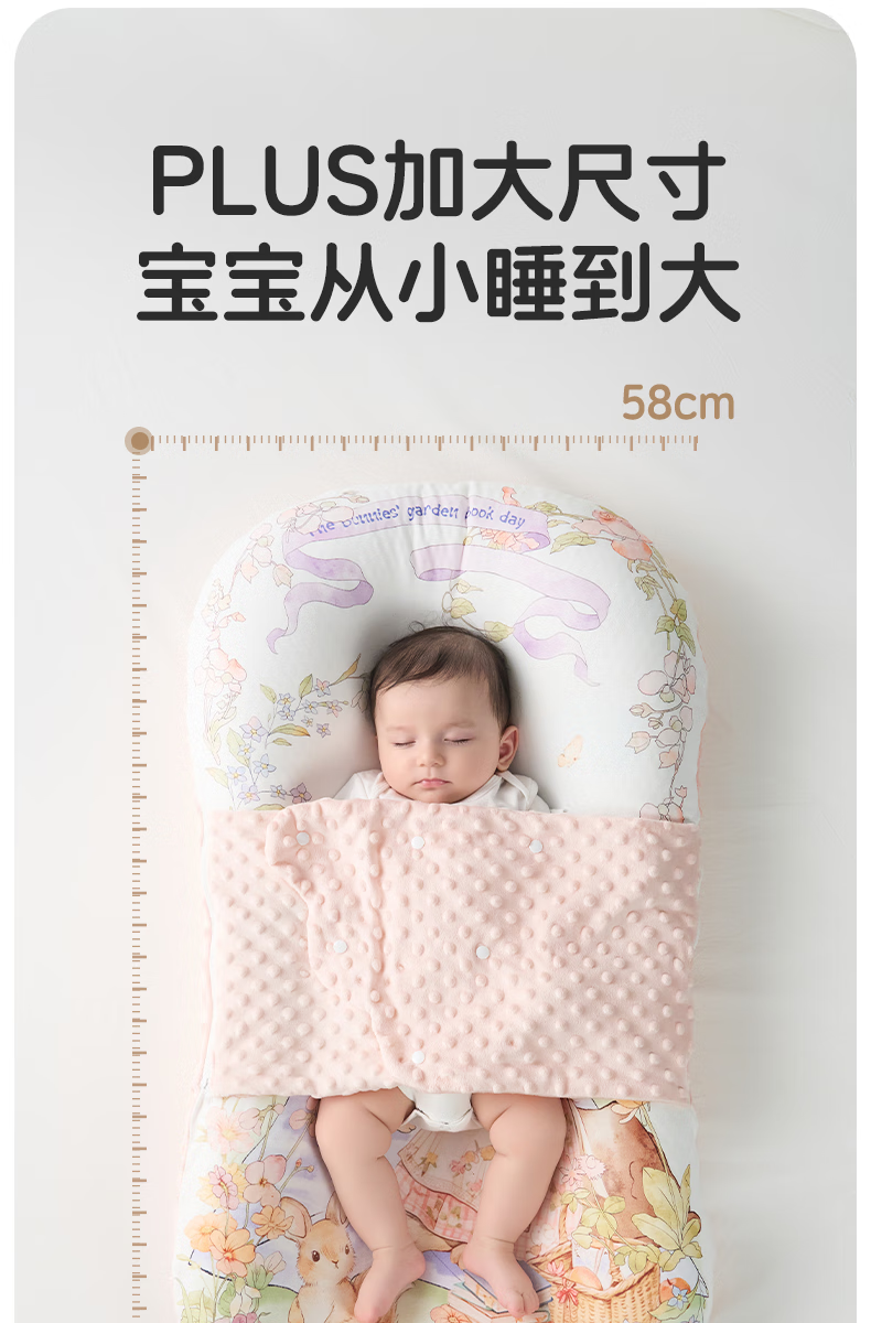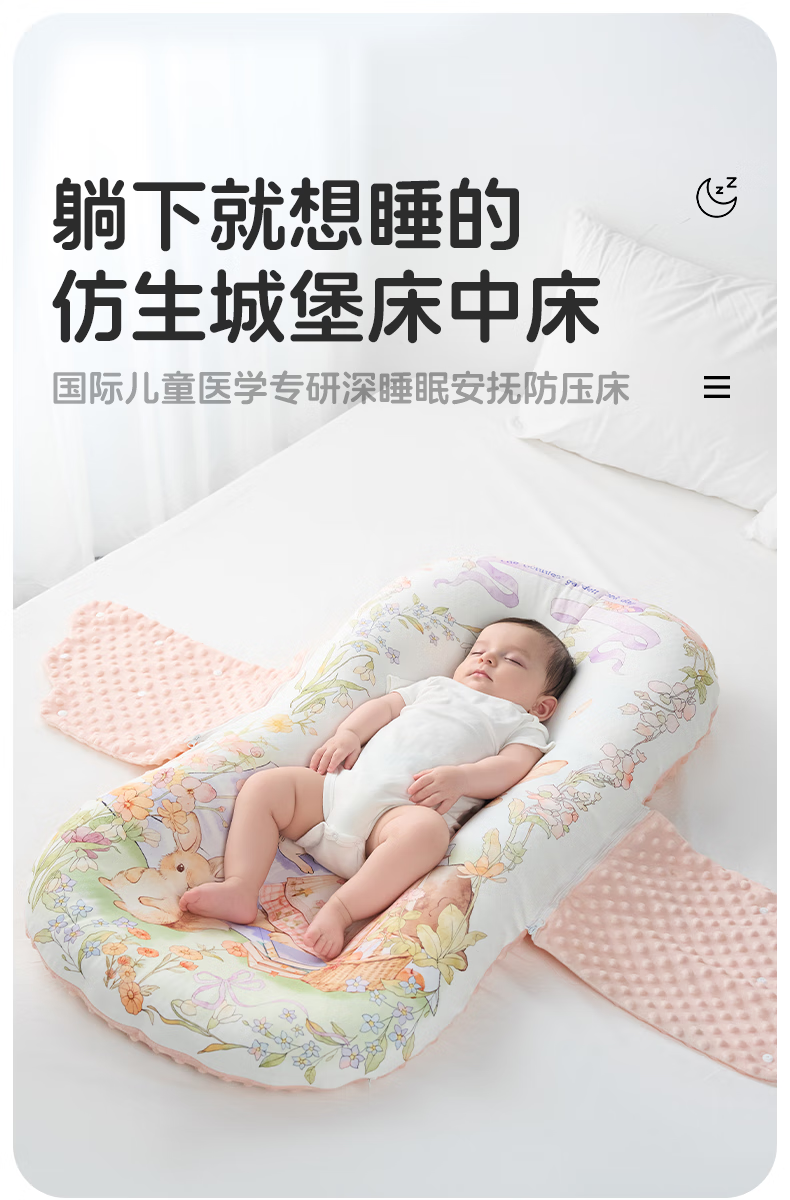 Jingqi bed-in-bed baby lulling to sleep, anti-jumping, anti-vomiting, uterus bionic bed, newborn sleeping floor-standing wake-up device, garden picnic note + slope mat set