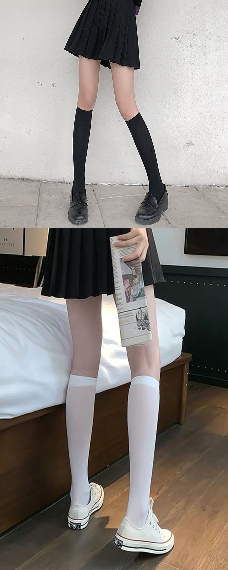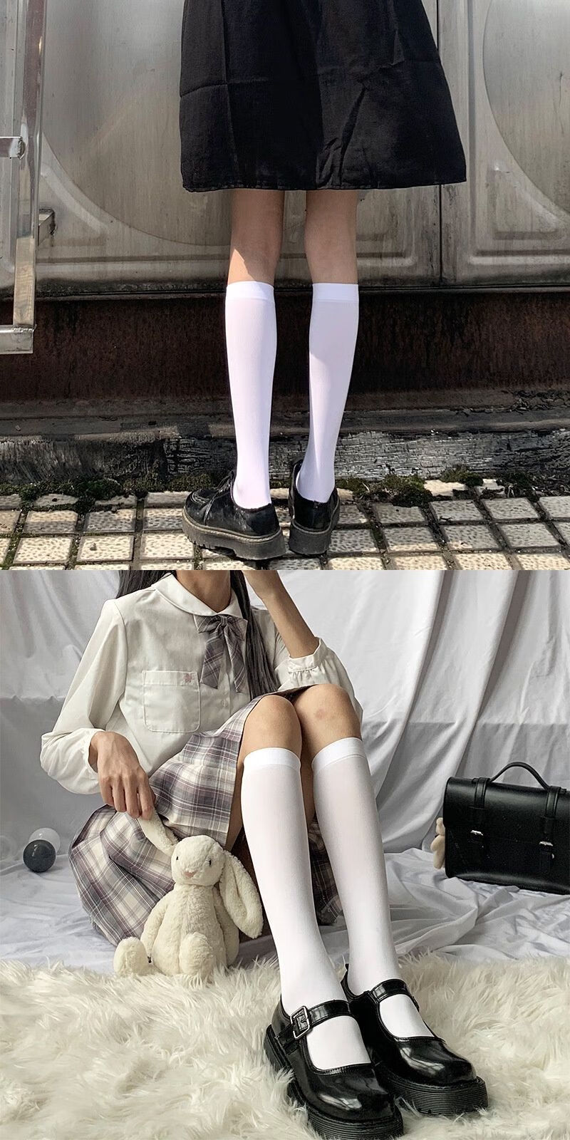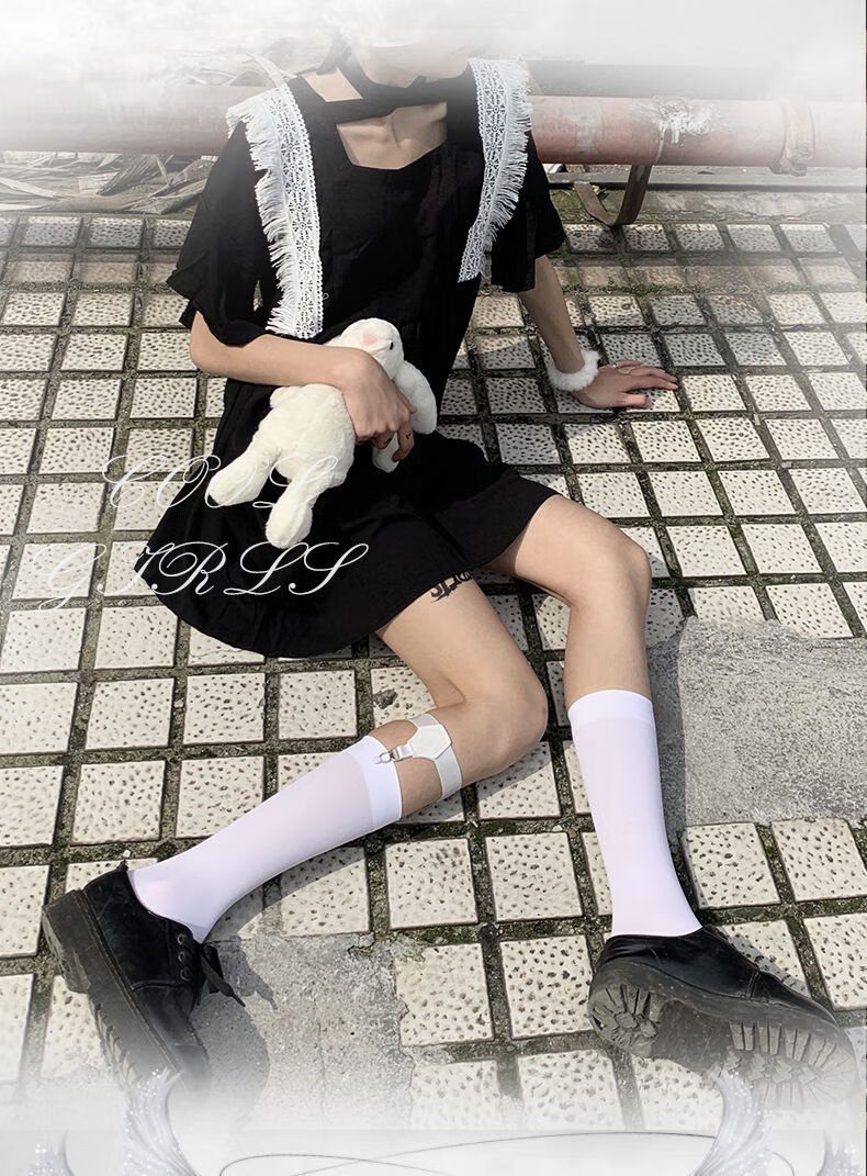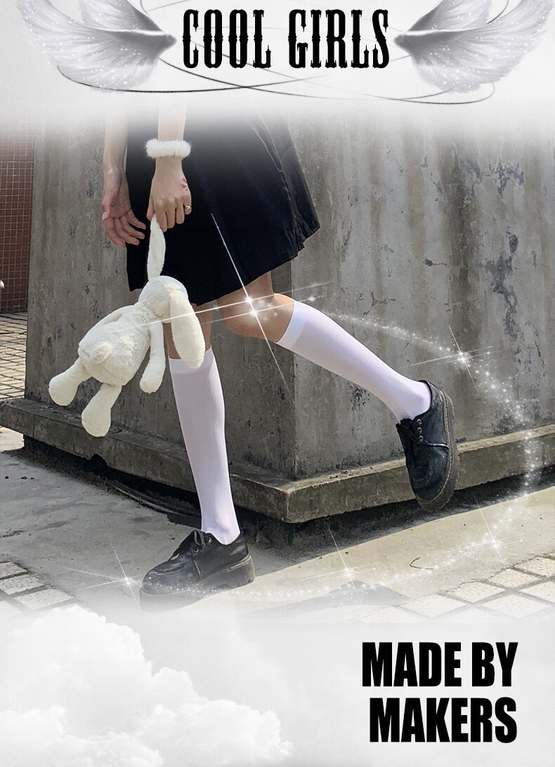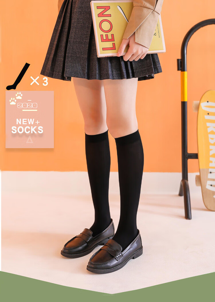 Ifishen's new white velvet calf socks, stockings, medium tube socks, summer thin long tube jk spring and summer half tube Japanese style, medium tube black, one size fits all