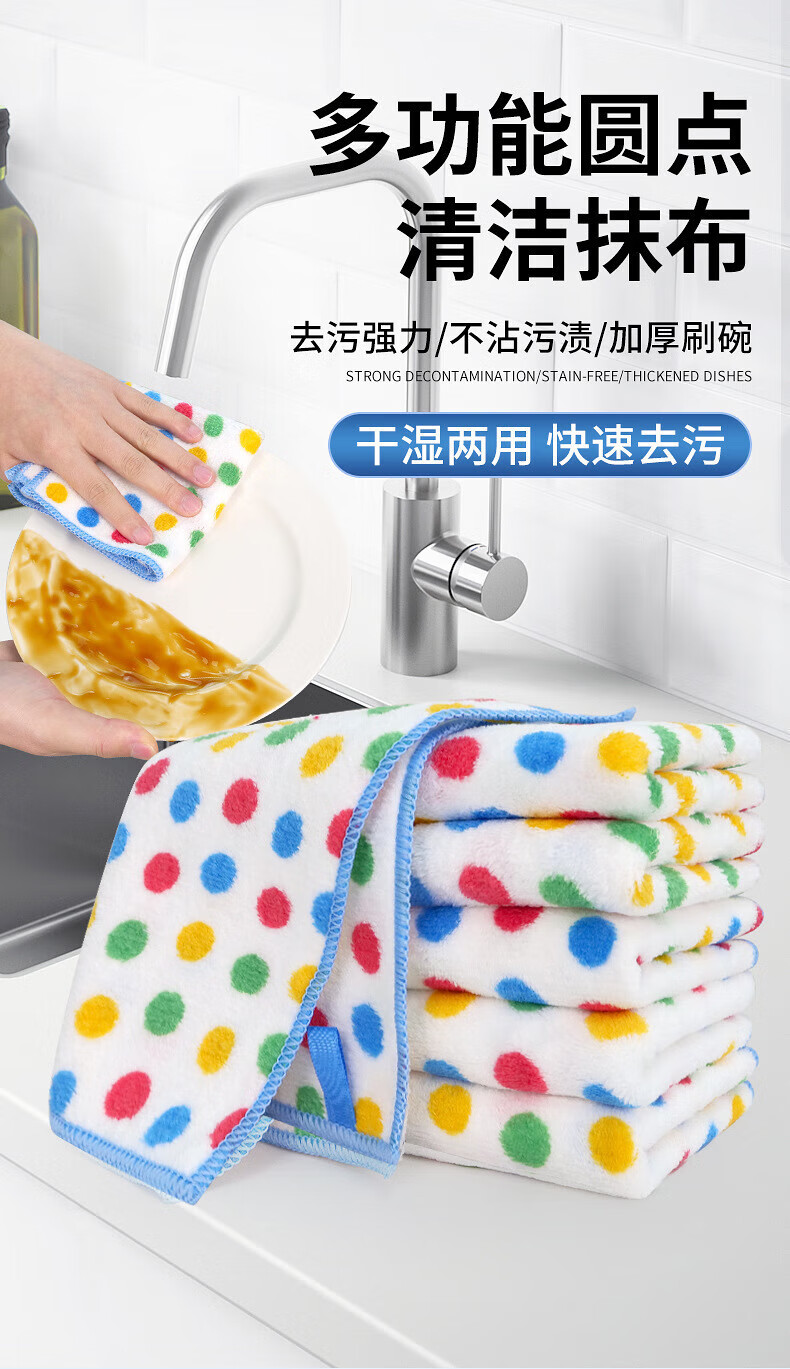 Special thickened dishwashing cloth for kitchen, coral velvet rag artifact for household cleaning, 3 pieces (25*25) polka dot rags