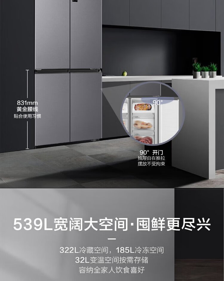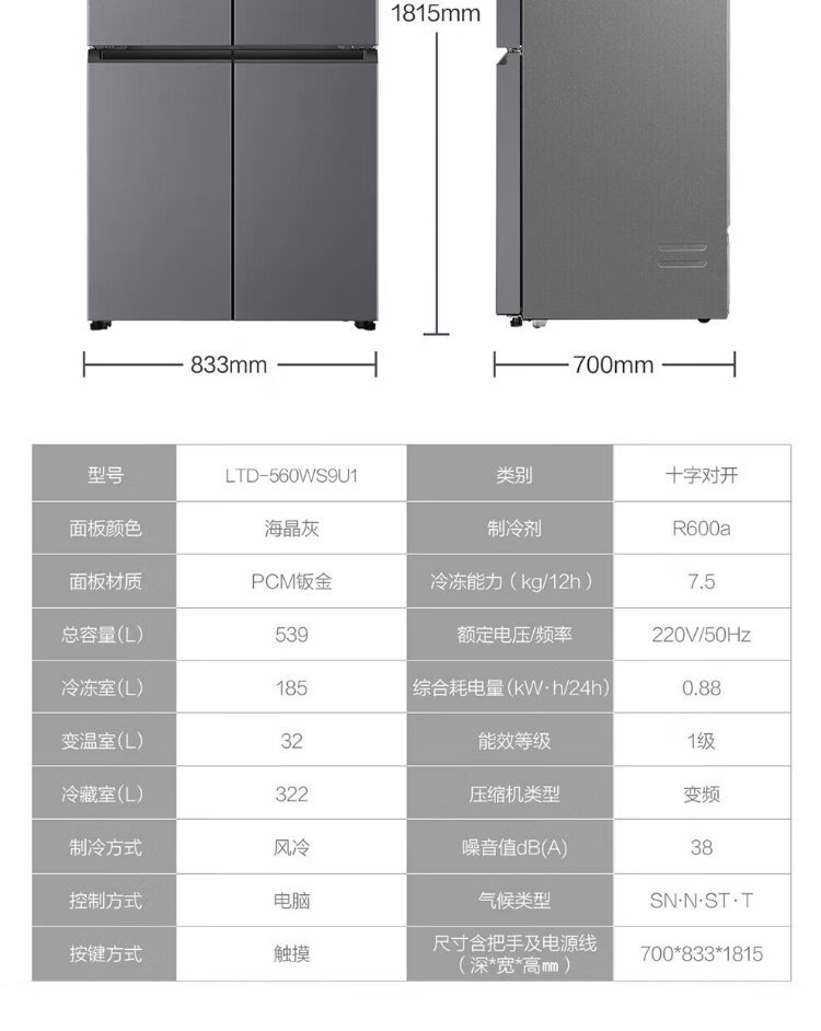 Haier refrigerator produces Commander 560 double-door cross door 539 upgraded to first-class energy efficiency household refrigerator Haier refrigerator household first-grade energy efficiency state subsidy trade-in