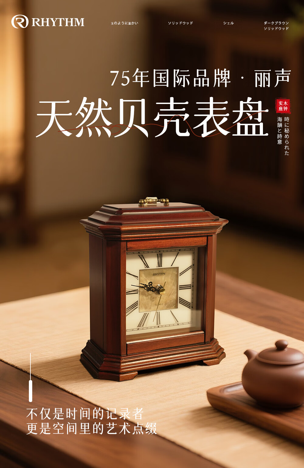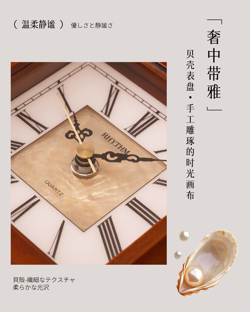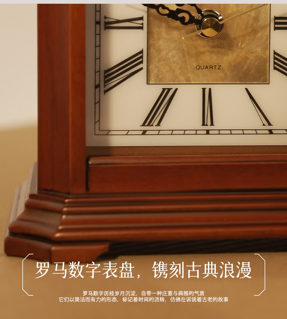 Lisheng natural mother-of-pearl dial hand-carved solid wood clock silent large clock 2025 new retro art living room