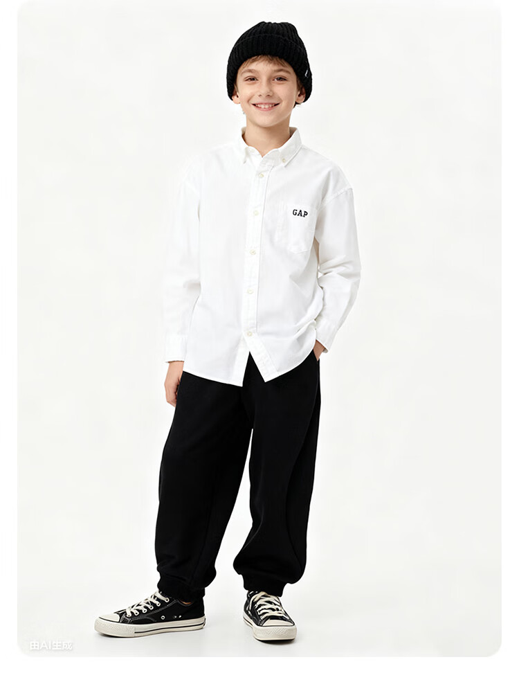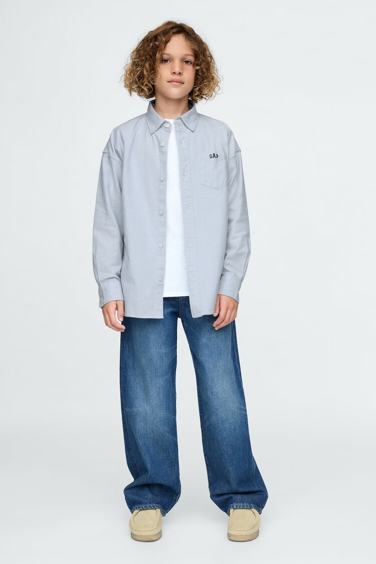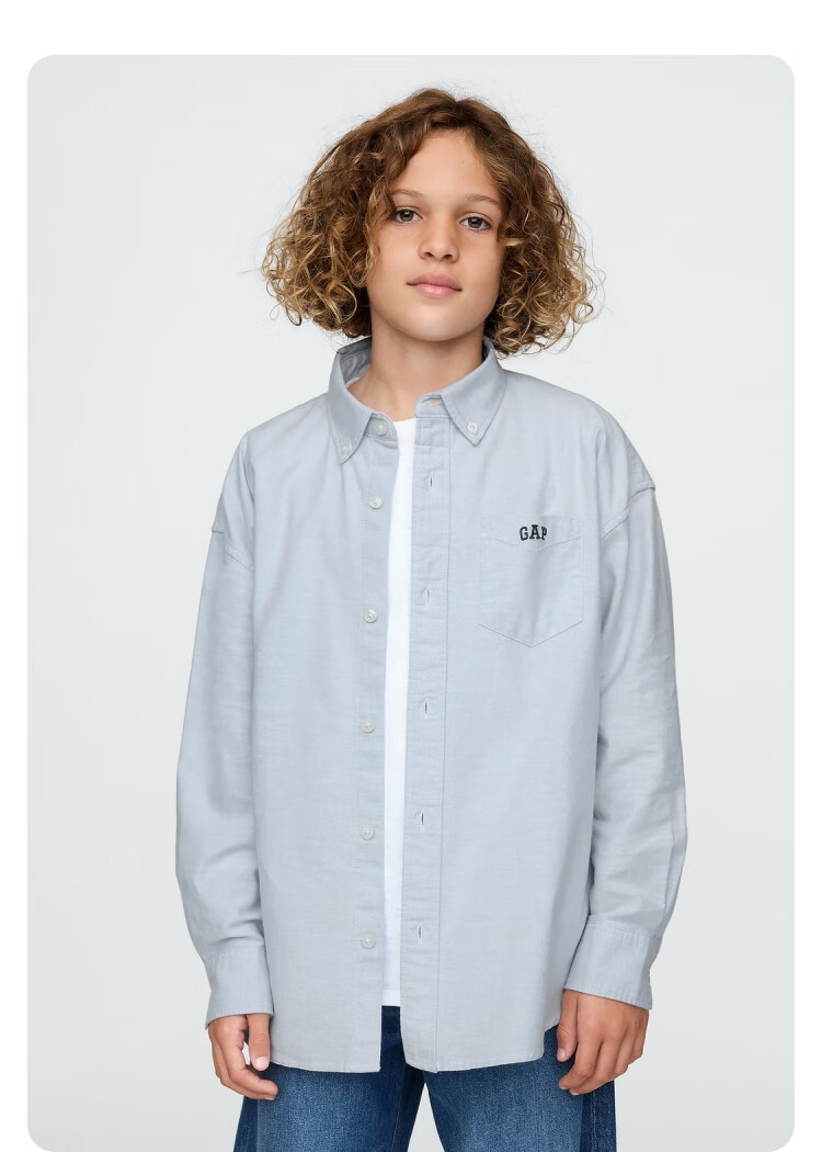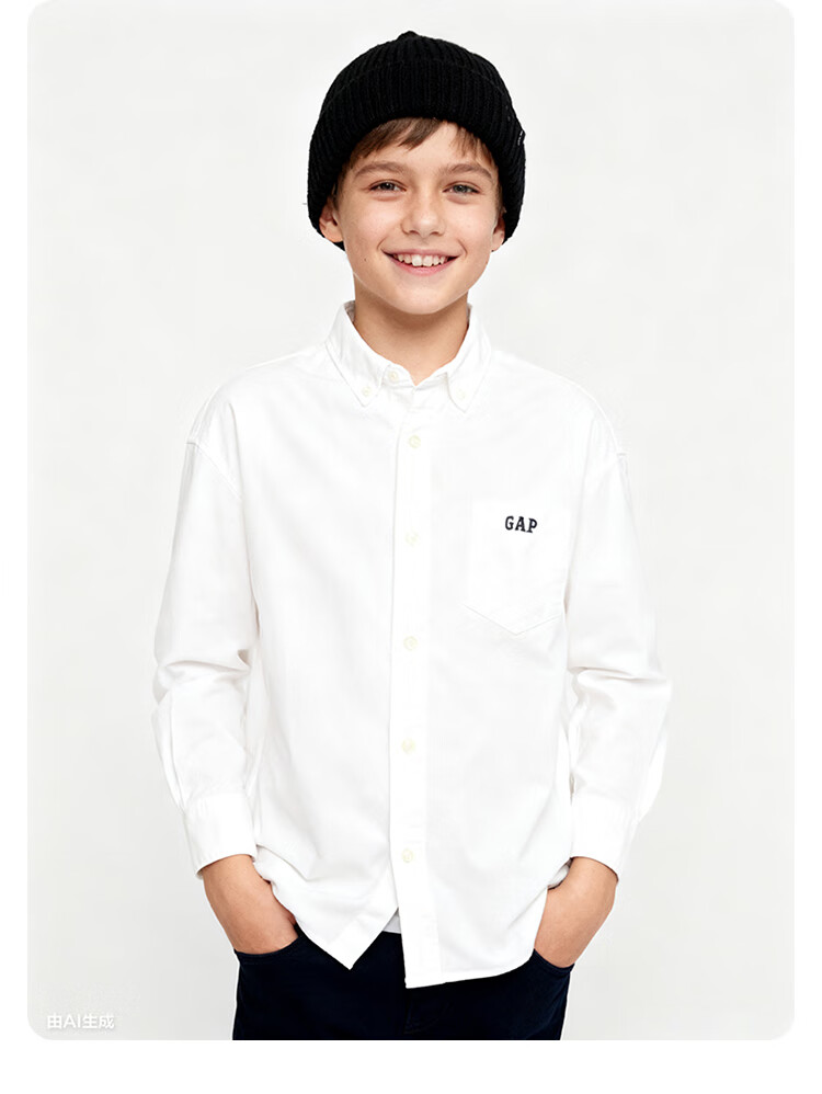 Gap Boys' Spring Style Embroidered Logo Long-Sleeved Shirt Fitted Children's Top US Version 605359 White 110/60 (4-5 years old)