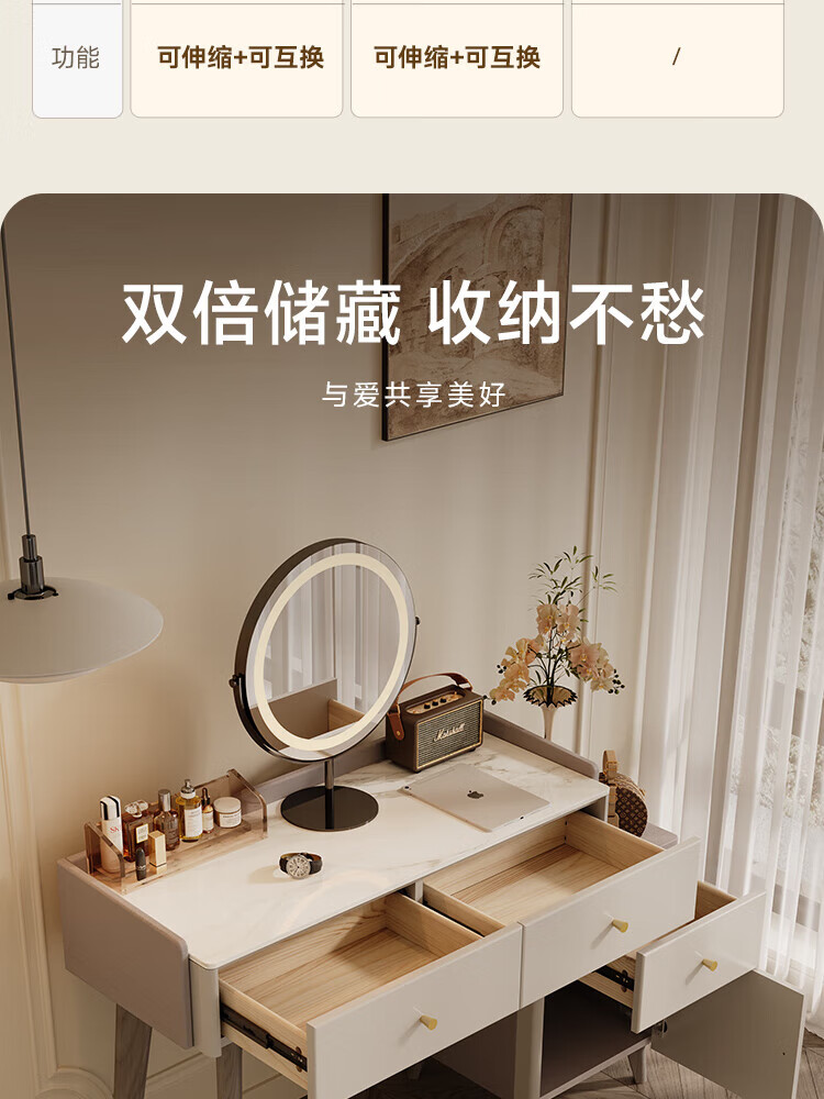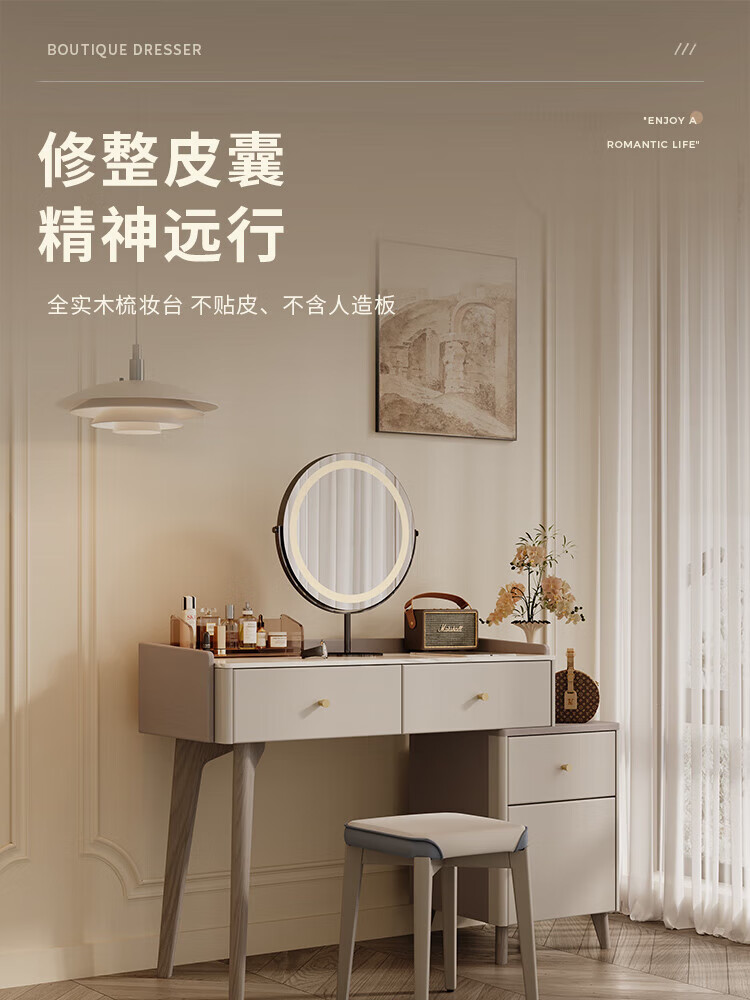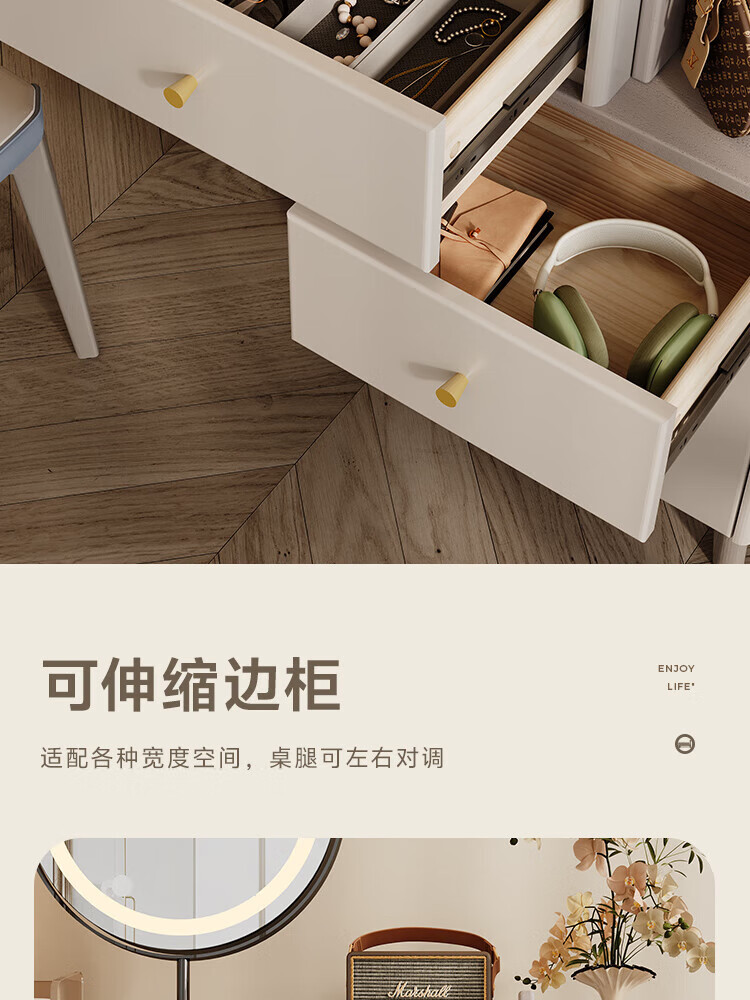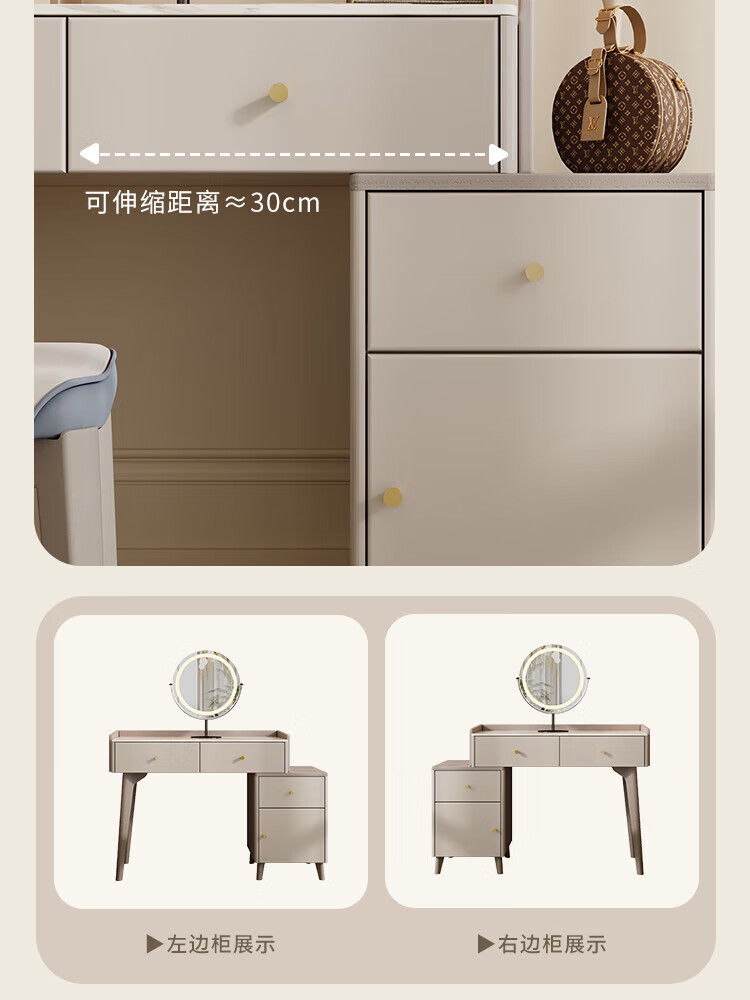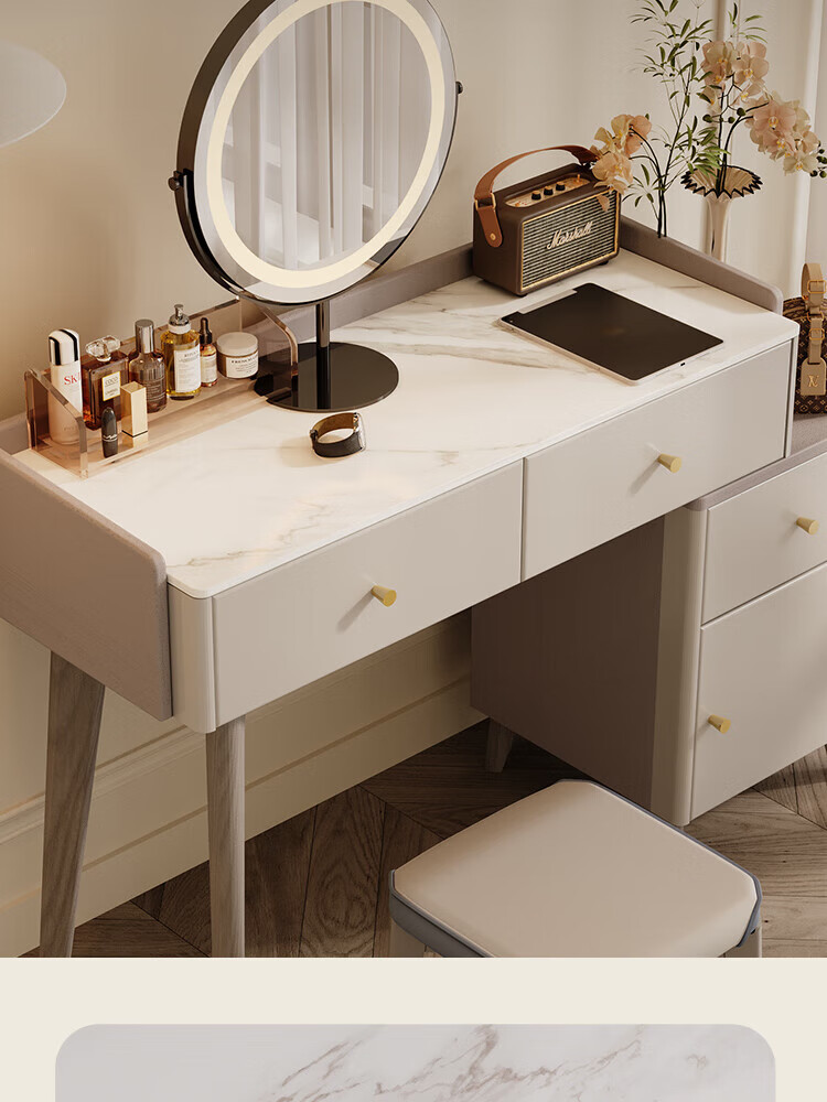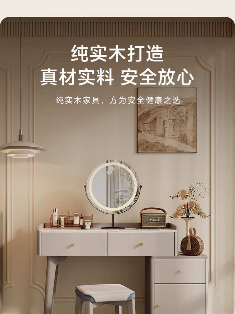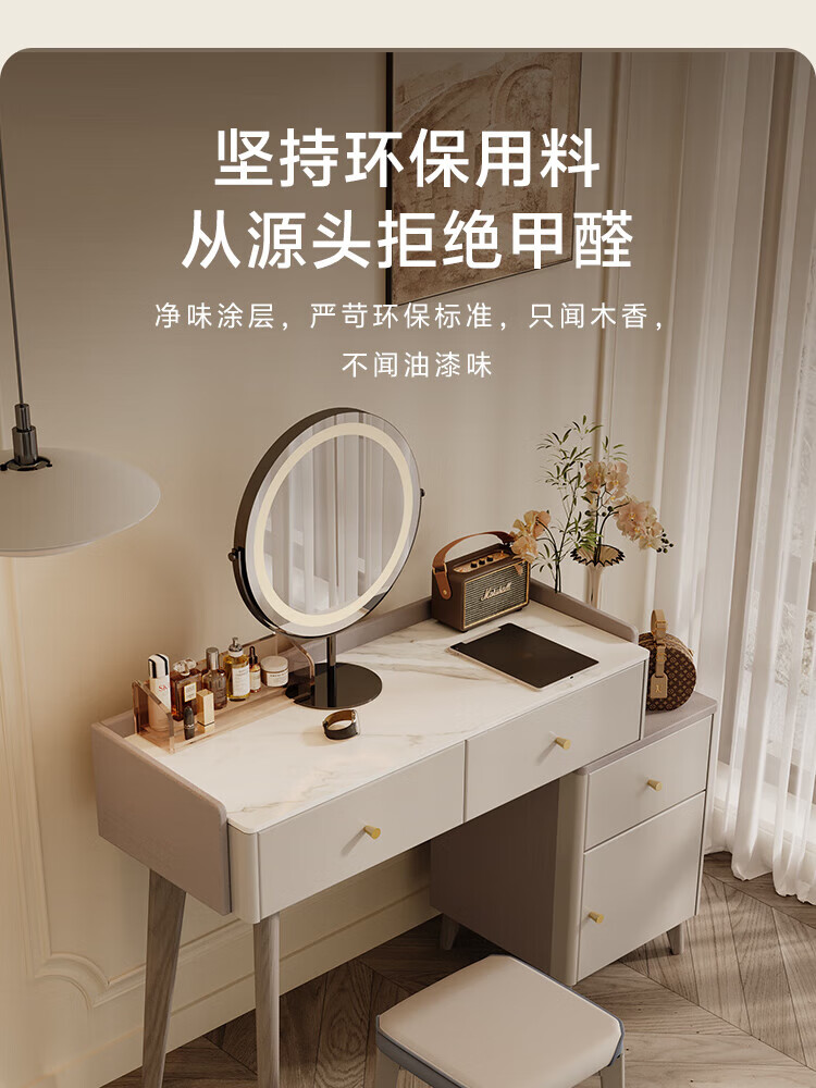 KUKA Gujia Wood Art Simple Dressing Table Storage Cabinet Integrated Retractable Solid Wood Slate Makeup Table Retractable Dressing Table + 8025YQ Makeup Stool