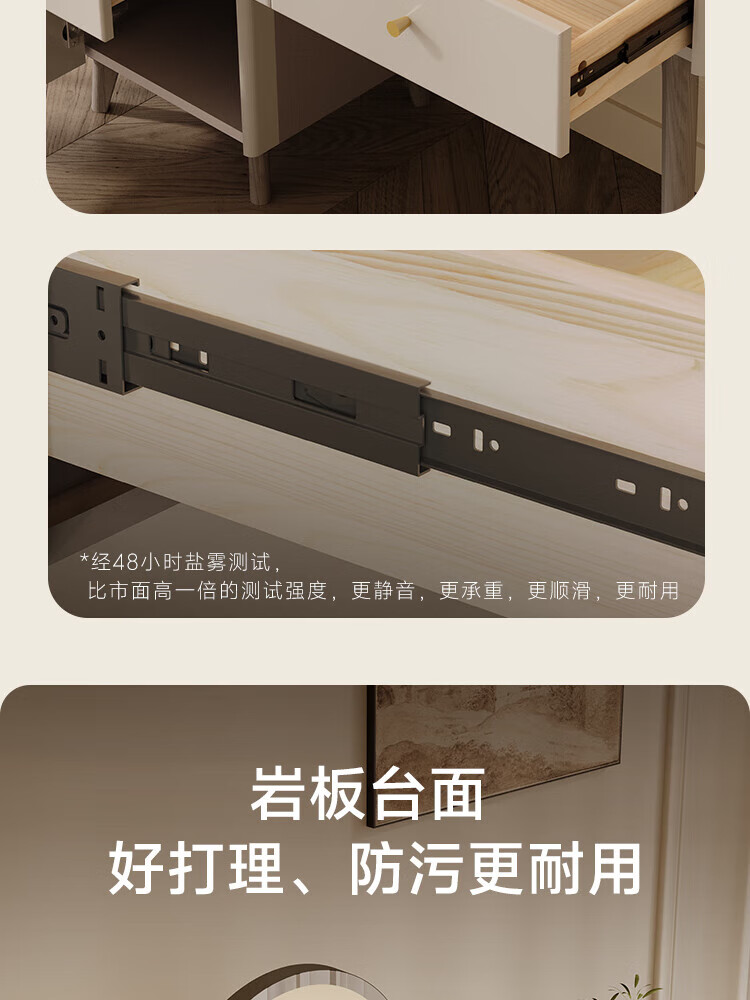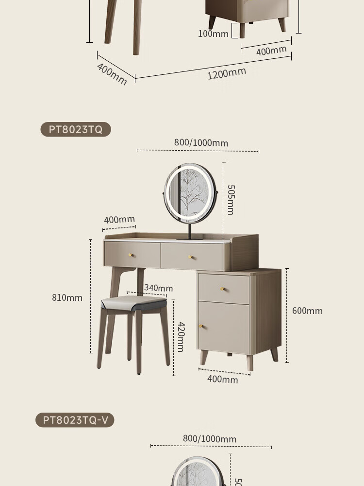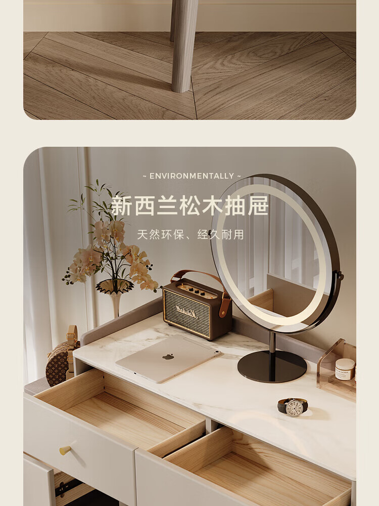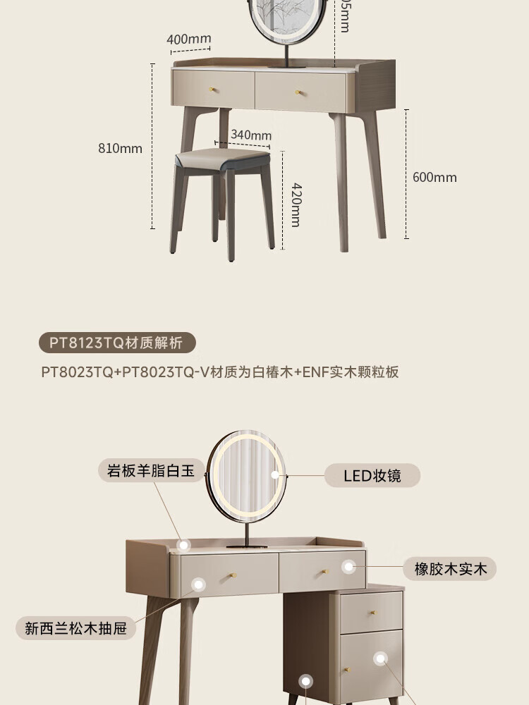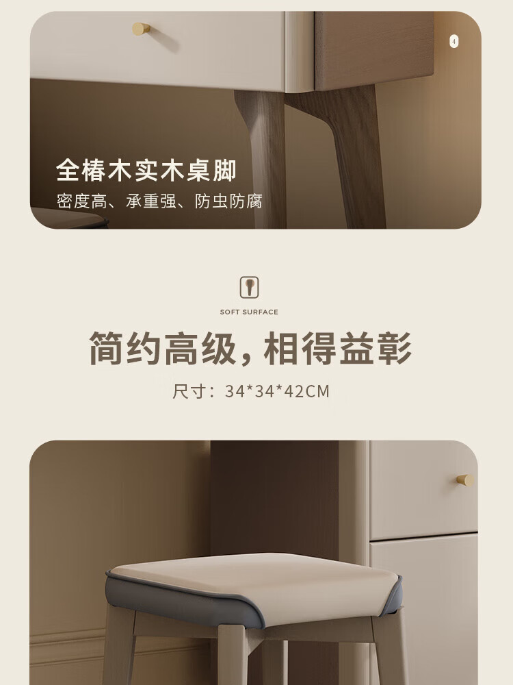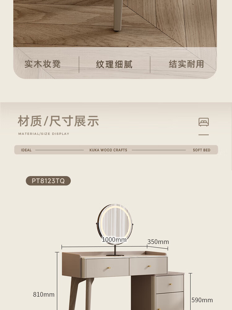 KUKA Gujia Wood Art Simple Dressing Table Storage Cabinet Integrated Retractable Solid Wood Slate Makeup Table Retractable Dressing Table + 8025YQ Makeup Stool