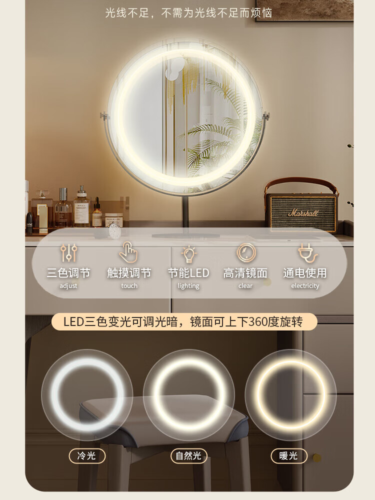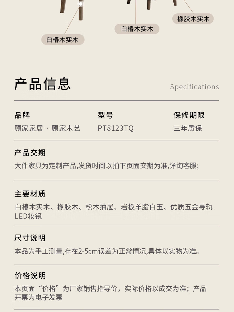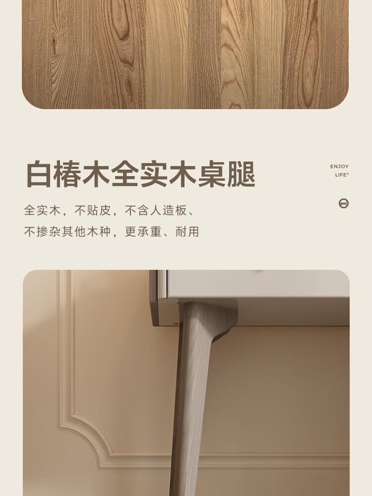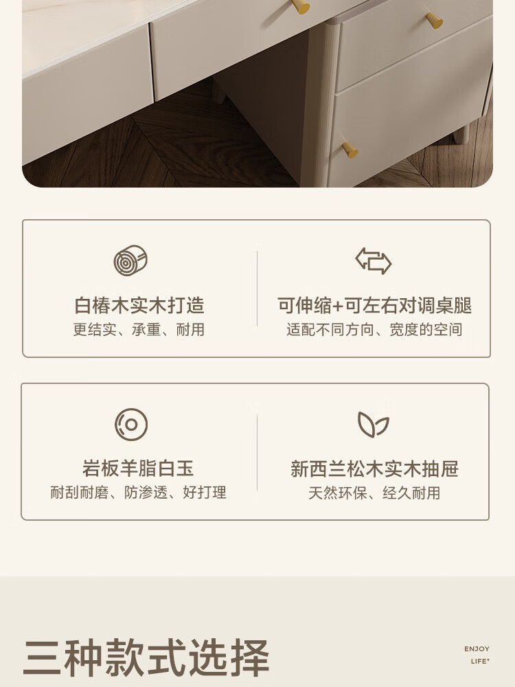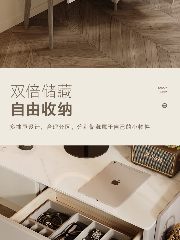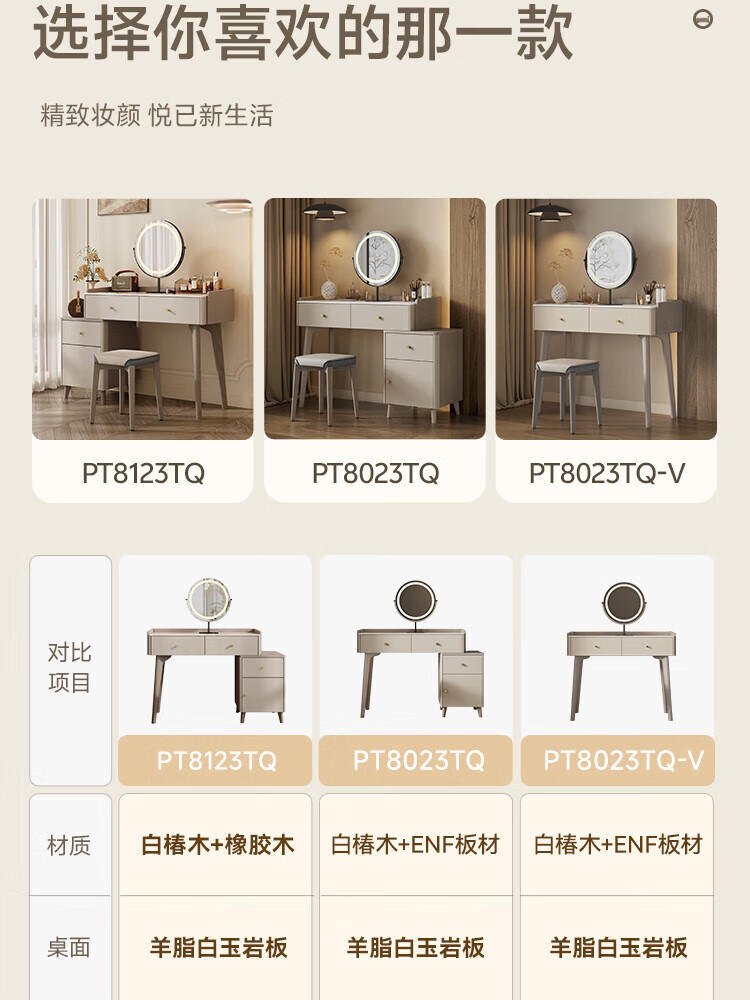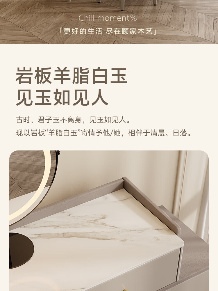 KUKA Gujia Wood Art Simple Dressing Table Storage Cabinet Integrated Retractable Solid Wood Slate Makeup Table Retractable Dressing Table + 8025YQ Makeup Stool