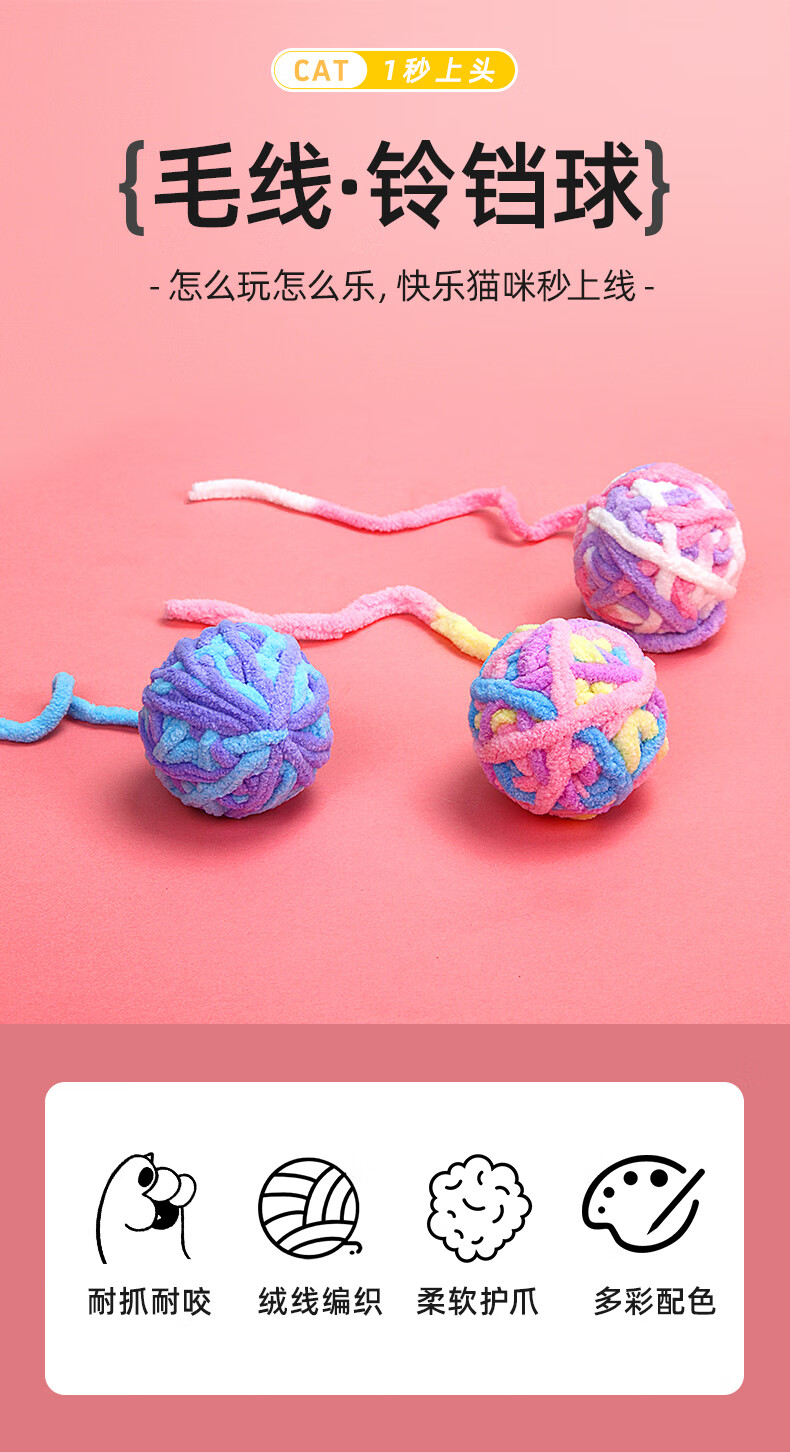 Muling Wool Ball Cat Toy Self-pleasure and Boredom Relief Yarn Ball Cat with Bell A Complete Collection of Teeth-Resisting and Bite-Resistant Cat Supplies 3 Value Packs Scratch-Resistant Wool Bell Ball