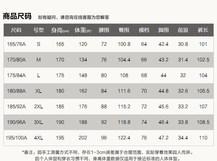 China (cm) 160-165/84-86 165-170 / 88-90 167-172 / 92-96 168-173 / 98-102 170-176 / 106-110