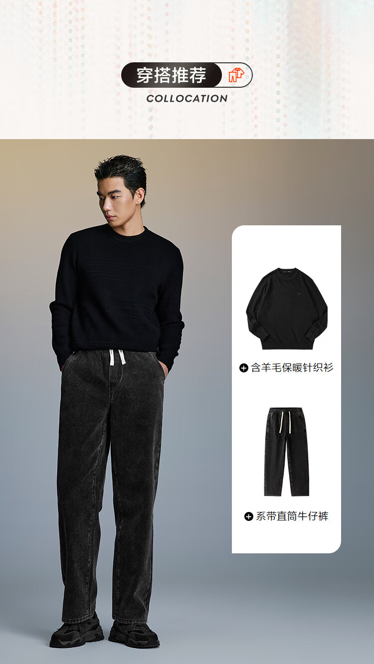 Heilan House (HLA) straight jeans show same style POWER YOUNG series pants for men, black cow transition color (dark) 5K M 170/80A recommended 121~134Jin Jin equals 0.5 kg