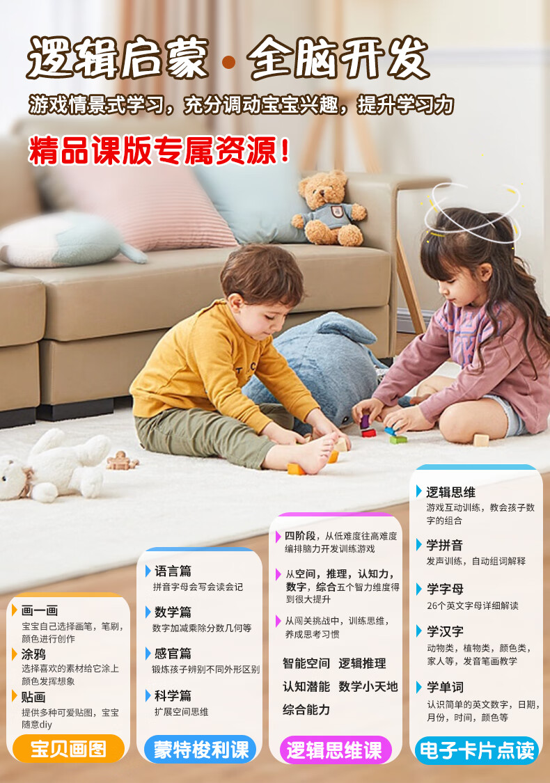Kuaiyitong's flagship new children's early education machine for babies aged 1 to 3 years old and above, smart AI tablet learning machine, logical thinking machine, drawing and literacy computer learning machine, infant students of all ages, premium course flagship version 128GB, new logical thinking video call