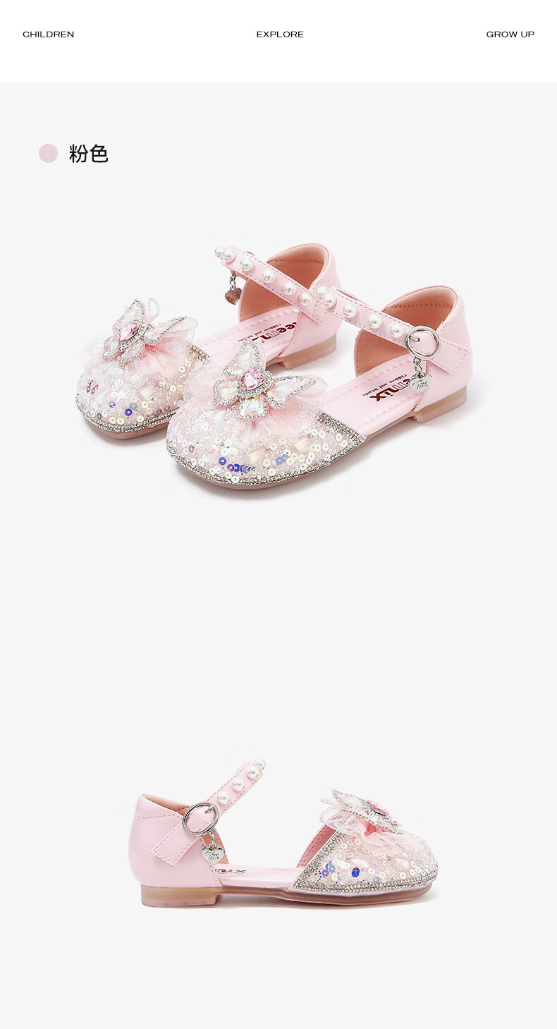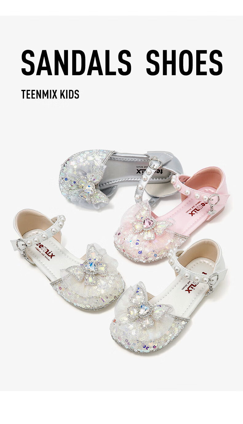 Tianmiyi Children's Shoes Girls Sandals 2026 Summer New Soft Sole Comfortable Sweet Versatile Princess Shoes Crystal Fashion Shoes Pink 28