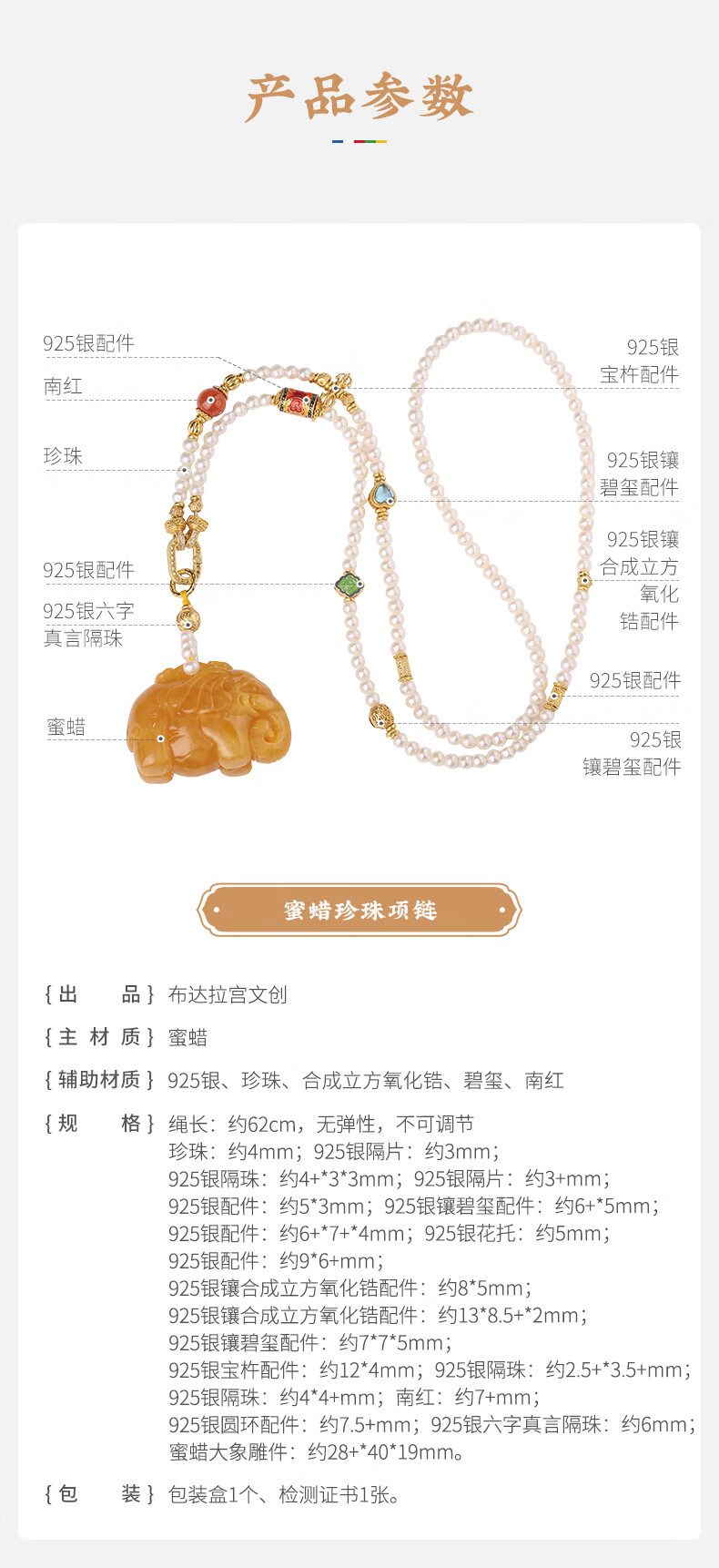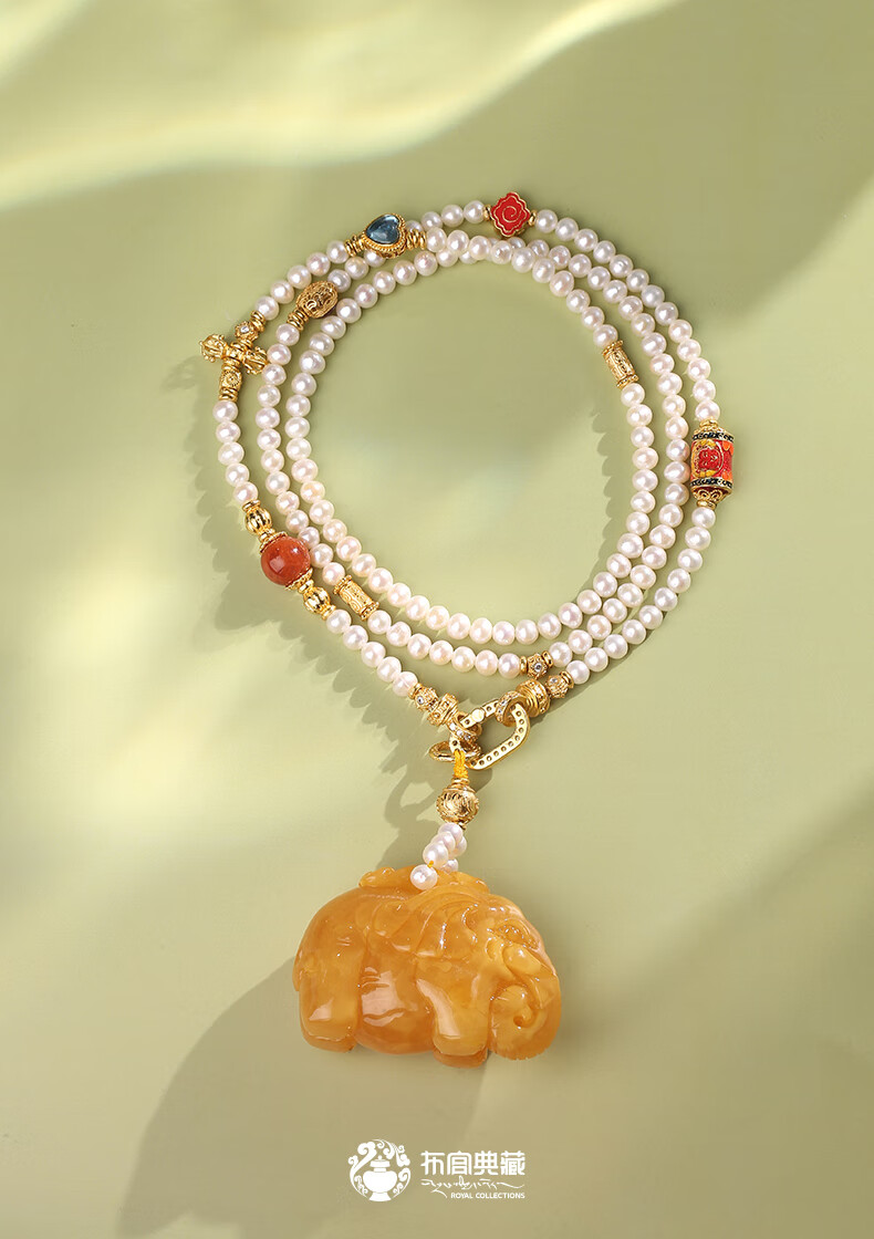 Potala Palace Beeswax Pearl Necklace 925 Silver Six-Character Mantra Transfer Pearl Nanhong Duobao Women's Pendant as a Gift for Your Girlfriend Beeswax Pearl Necklace