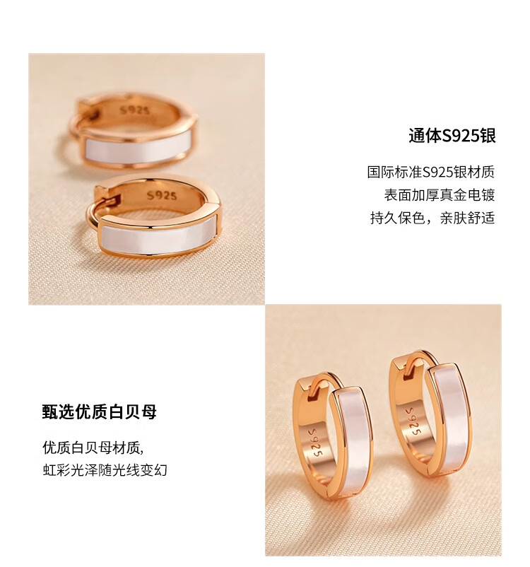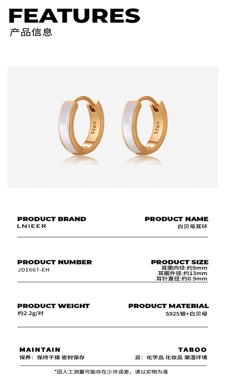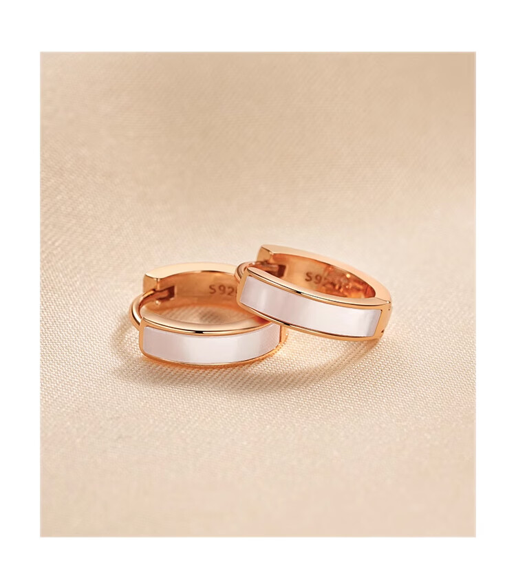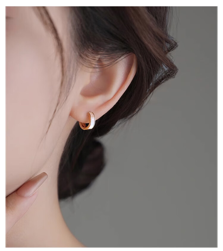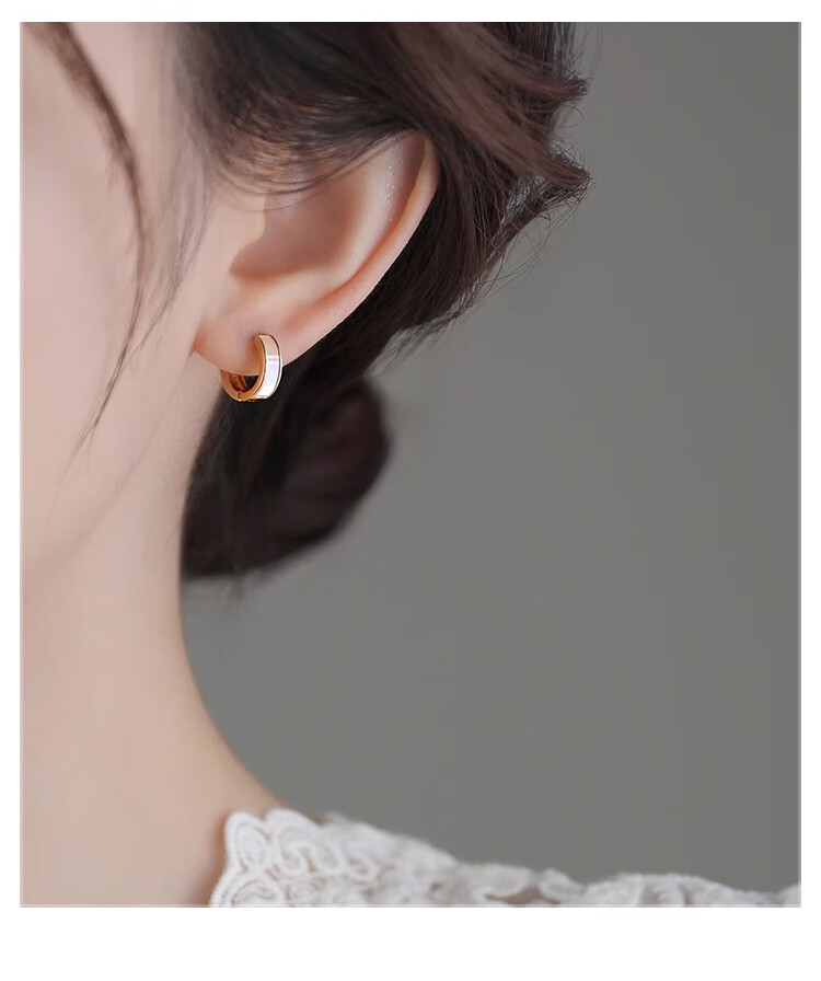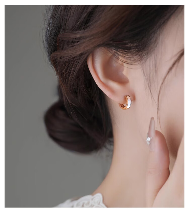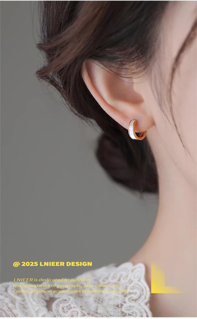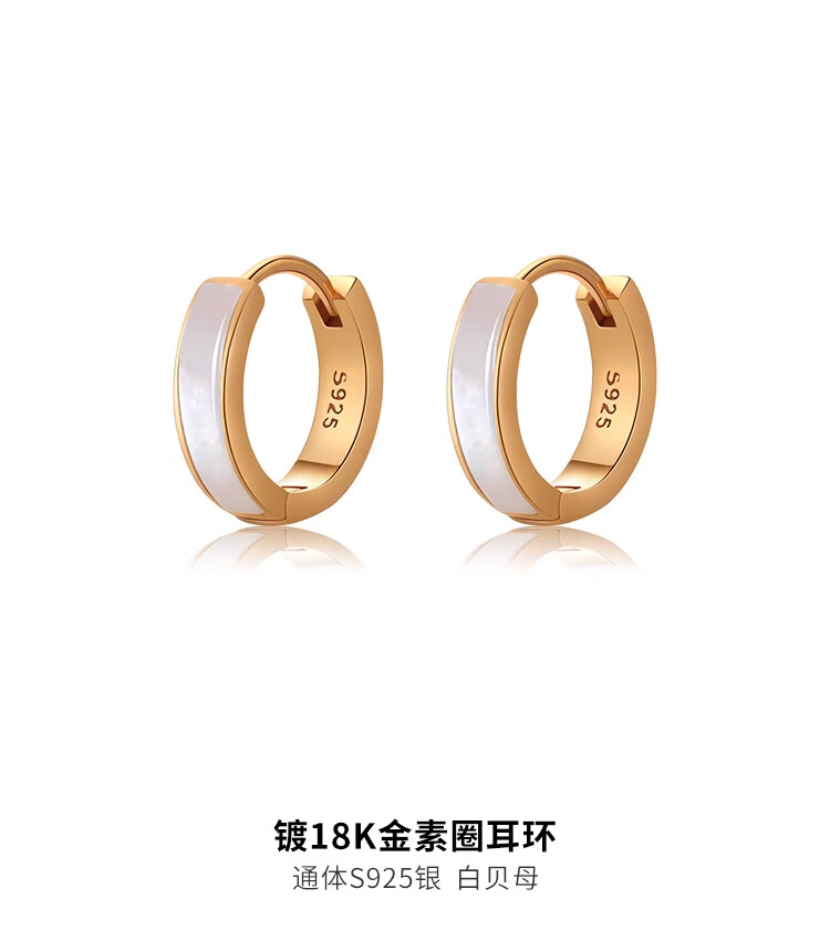 Lnieer925 silver white mother-of-pearl earrings for women 18K gold earrings light luxury high-end plain hoop earrings earrings jewelry K gold mother-of-pearl earrings 925 silver
