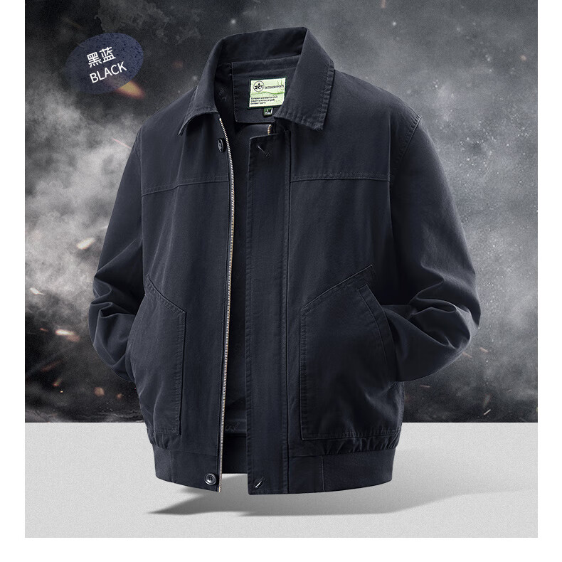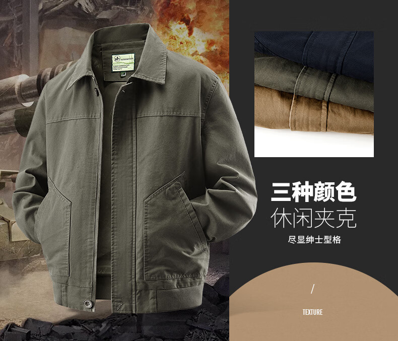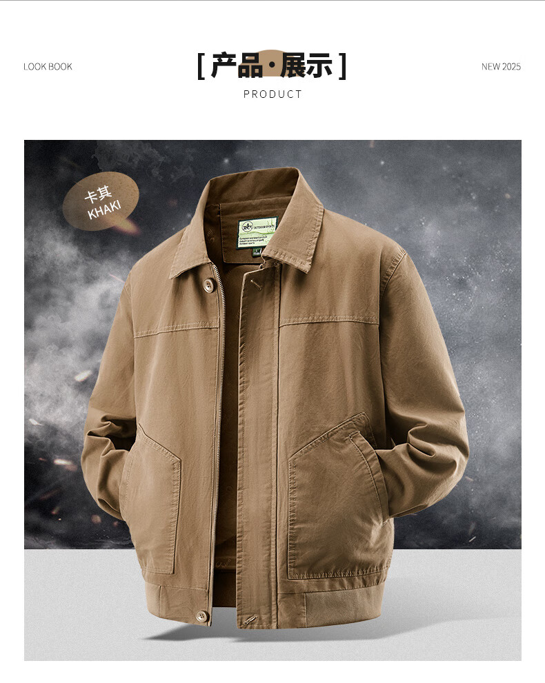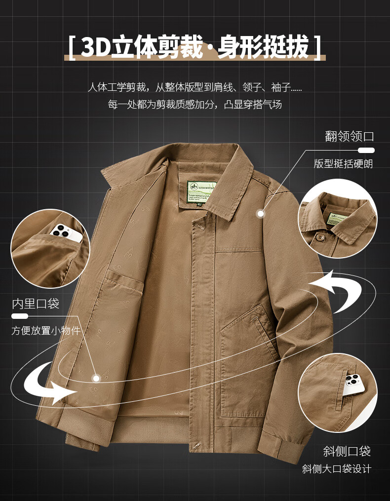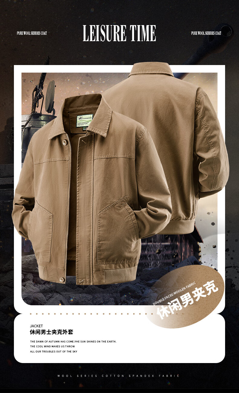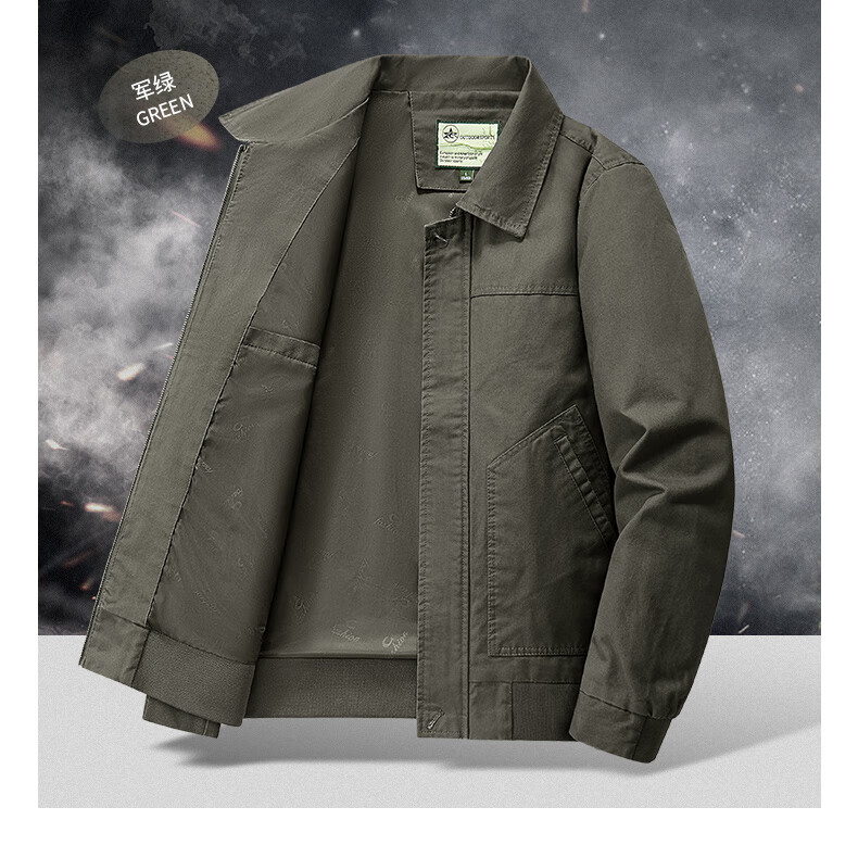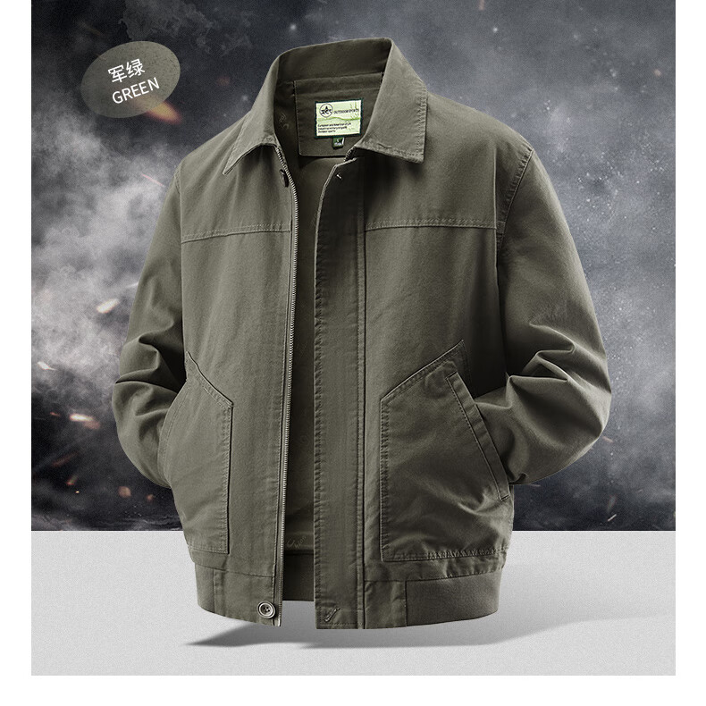 Jeep (JEEP) Spring and Autumn Washed Cotton Casual Loose Jacket Men's Fashion Large Size Loose Middle-aged Lapel Jacket Dad's Wear Army Green 2XL Suitable for Weight 160-170Jin Jin is equal to 0.5 kg