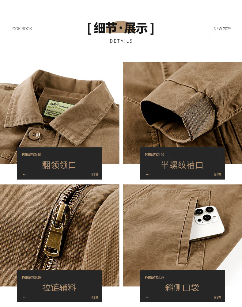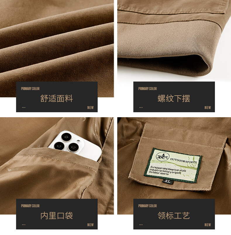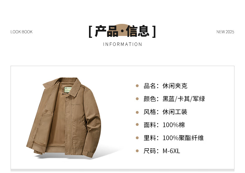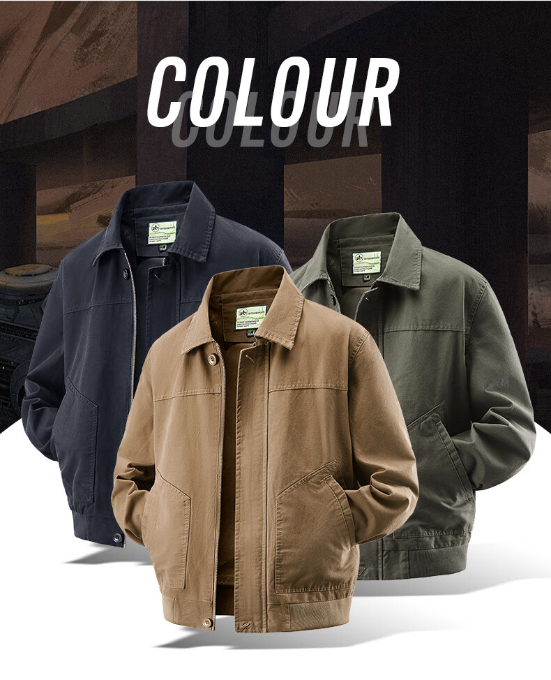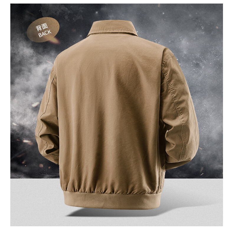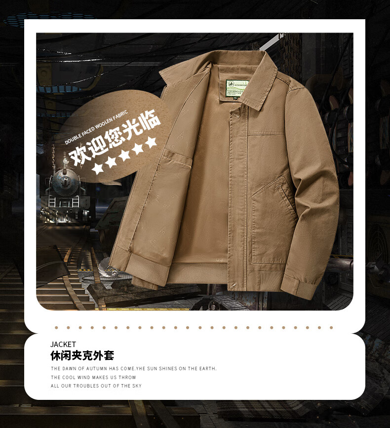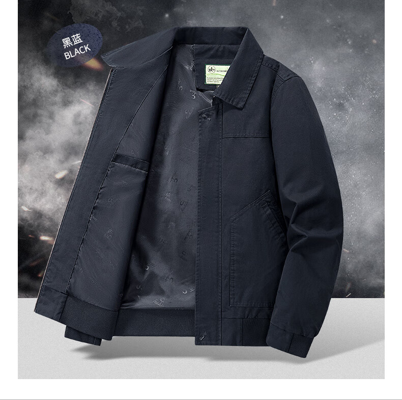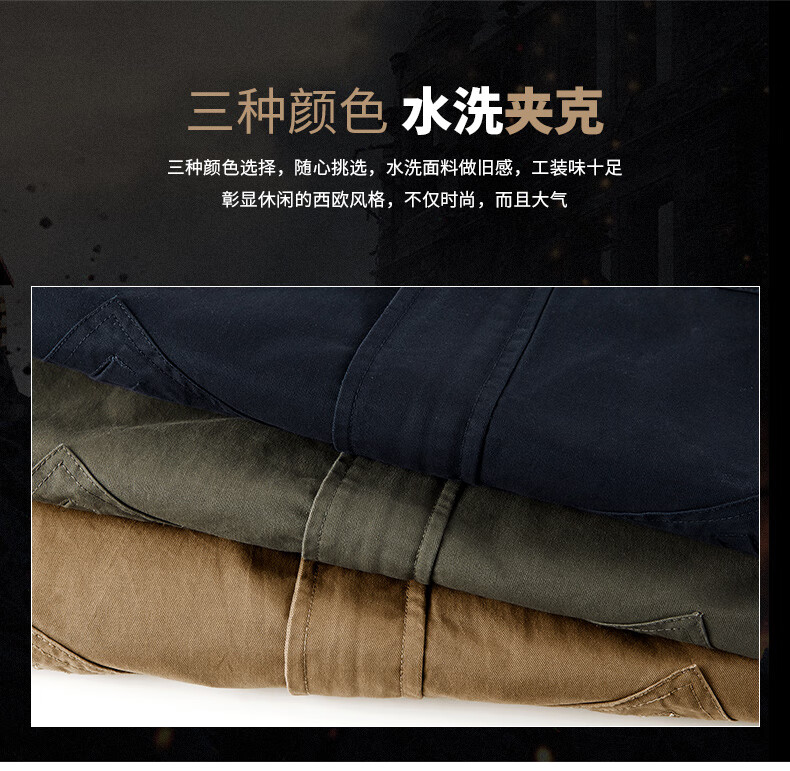 Jeep (JEEP) Spring and Autumn Washed Cotton Casual Loose Jacket Men's Fashion Large Size Loose Middle-aged Lapel Jacket Dad's Wear Army Green 2XL Suitable for Weight 160-170Jin Jin is equal to 0.5 kg