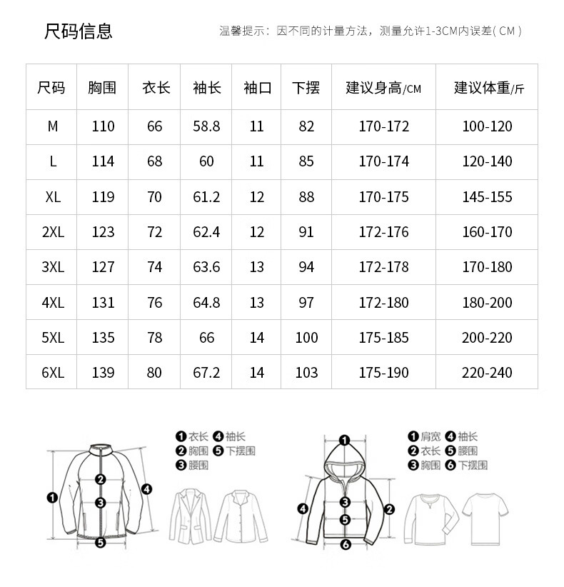 China (cm) 165 / 88-90 170 / 96-98 175 / 108-110 180 / 118-122 185 / 126-130