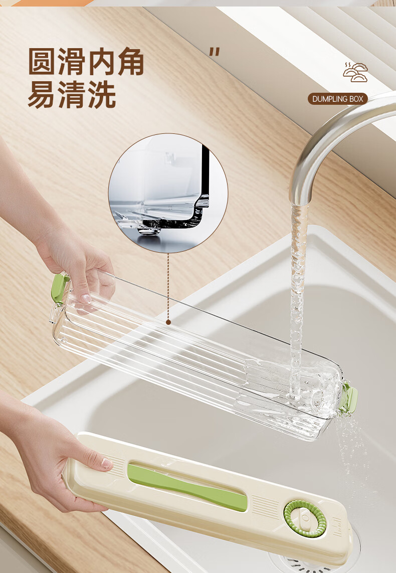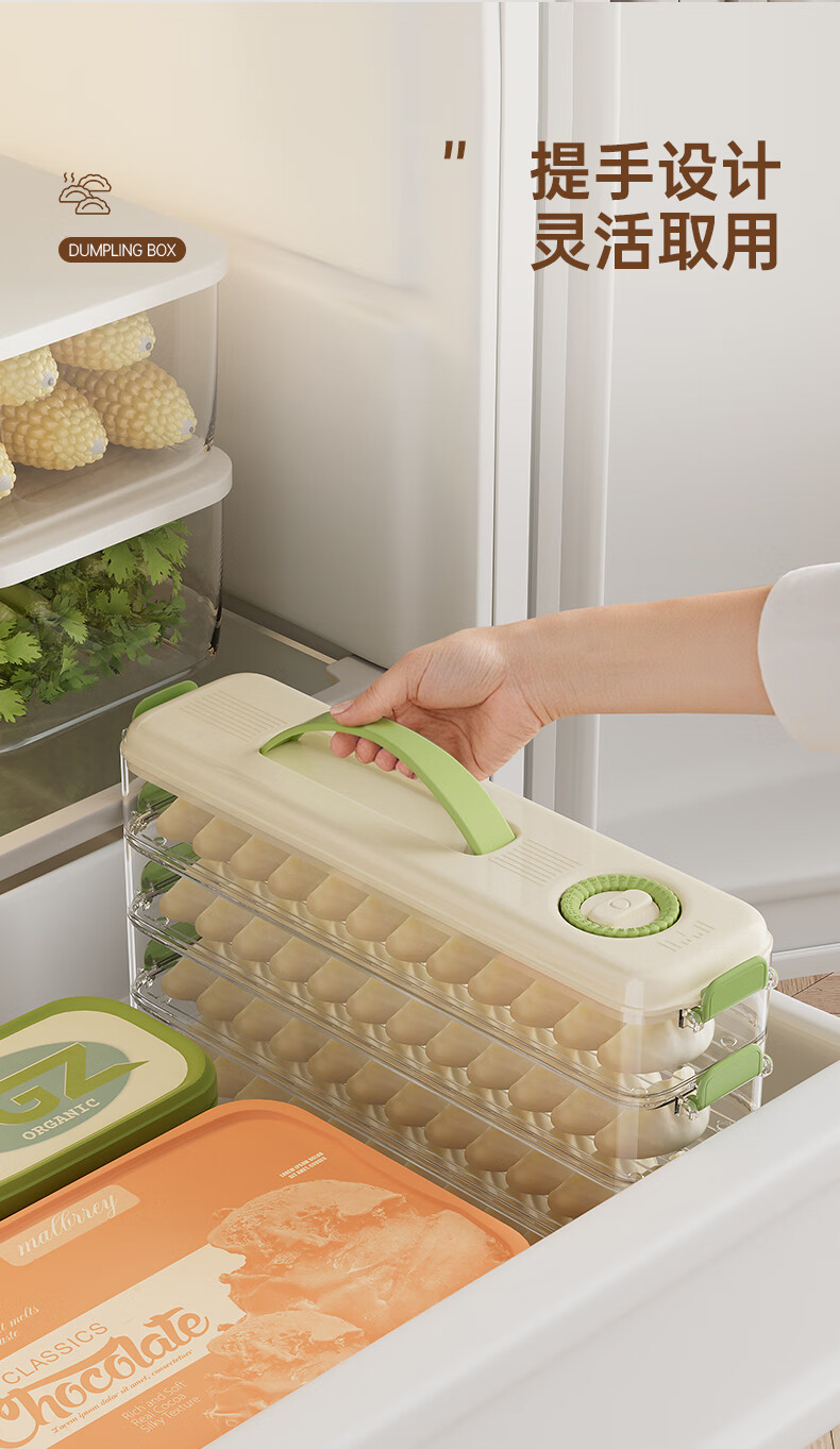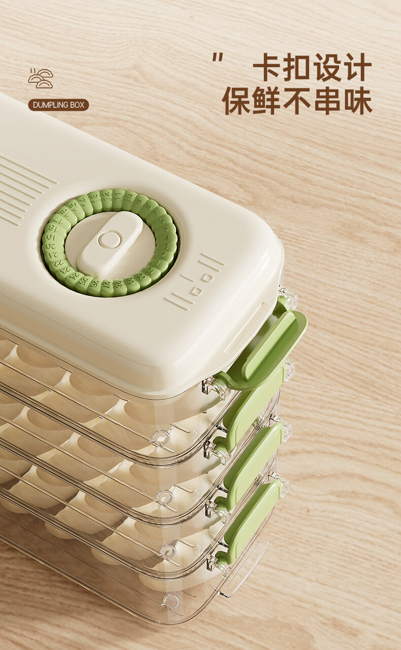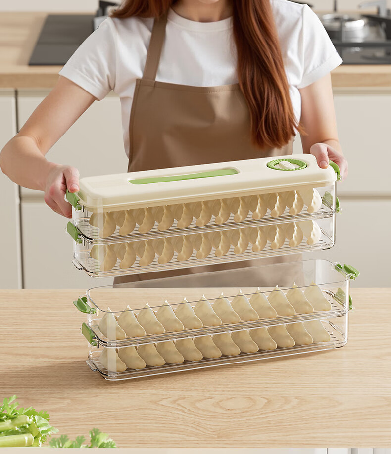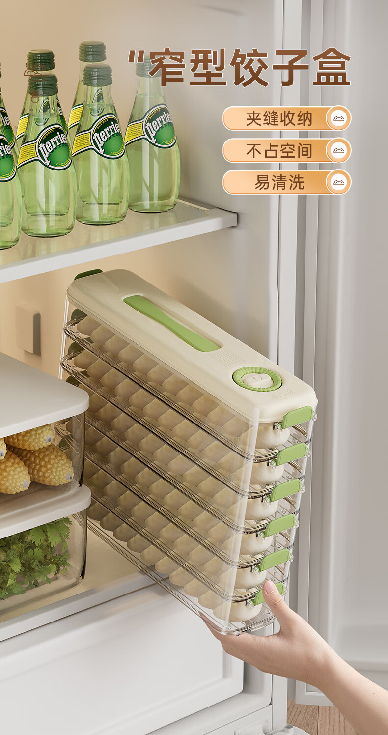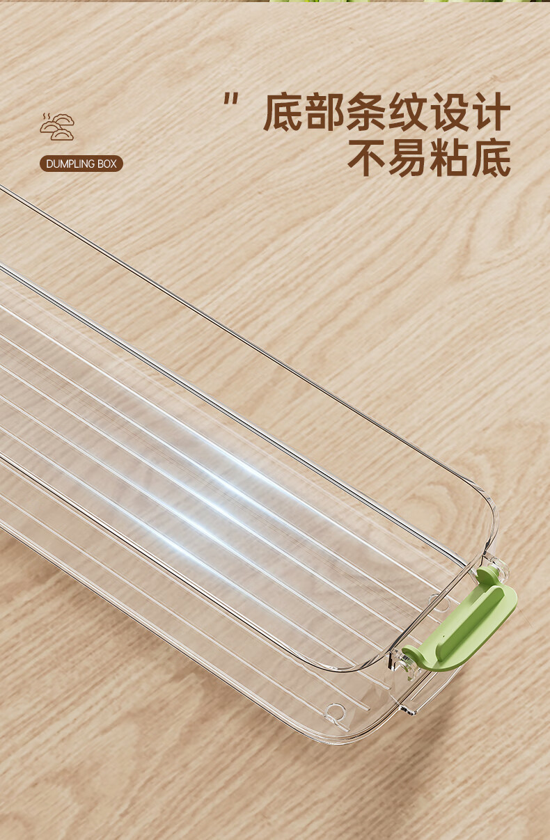 Pukua narrow dumpling box refrigerator crisper food grade household enlarged storage box multi-functional frozen dumpling wonton box (green) enlarged and thickened 1 layer 1 cover