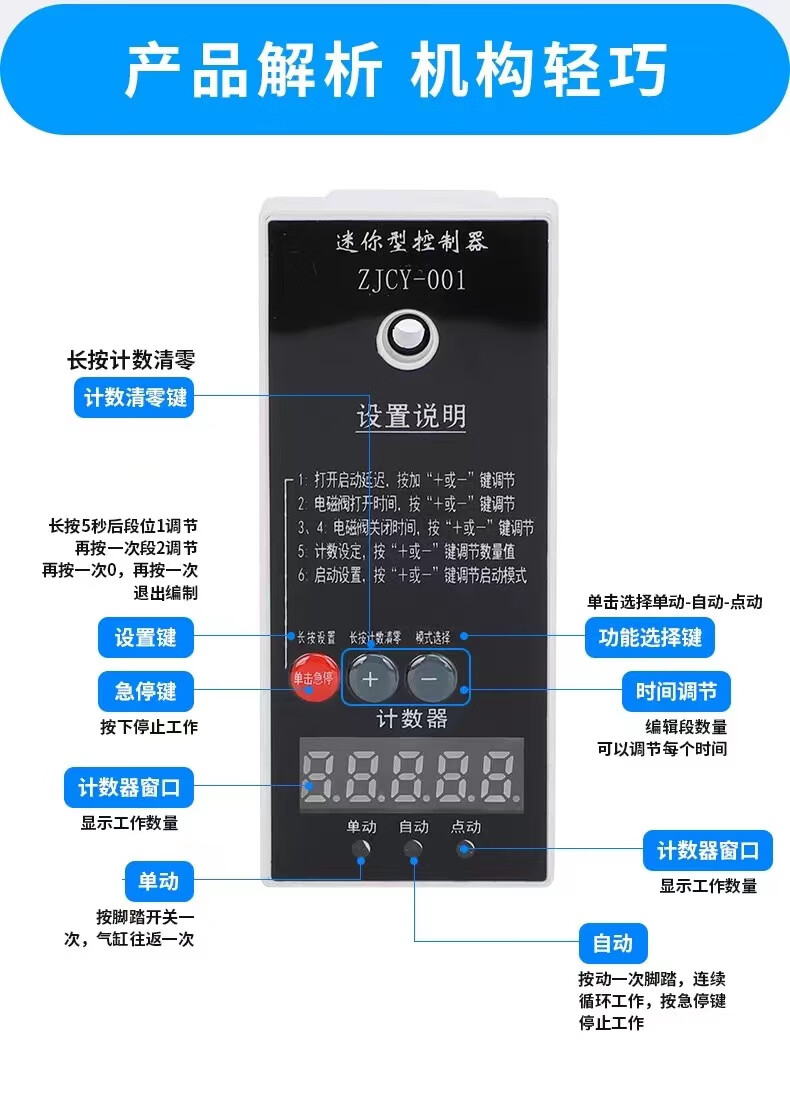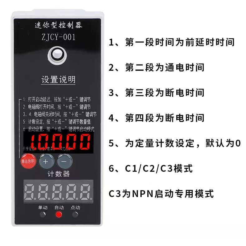 Solenoid valve cylinder intelligent controller pneumatic punch inching automatic time reciprocating setting delay counting limit controller + power plug + double photoelectric switch