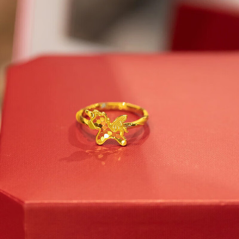 BMOI Old Phoenix Authentic Gold Unicorn Ring Women's Light Luxury Niche Fish Scale Small Golden Horse Ring Temperament Ring