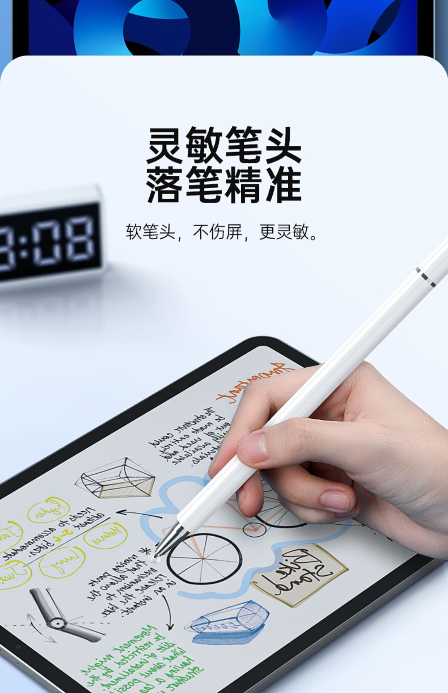 Homework Helper is suitable for learning machine touch screen pen T20Pro learning pen T30 stylus early education machine P20 point reading machine flagship model three-in-one white + 2 pen tips P
