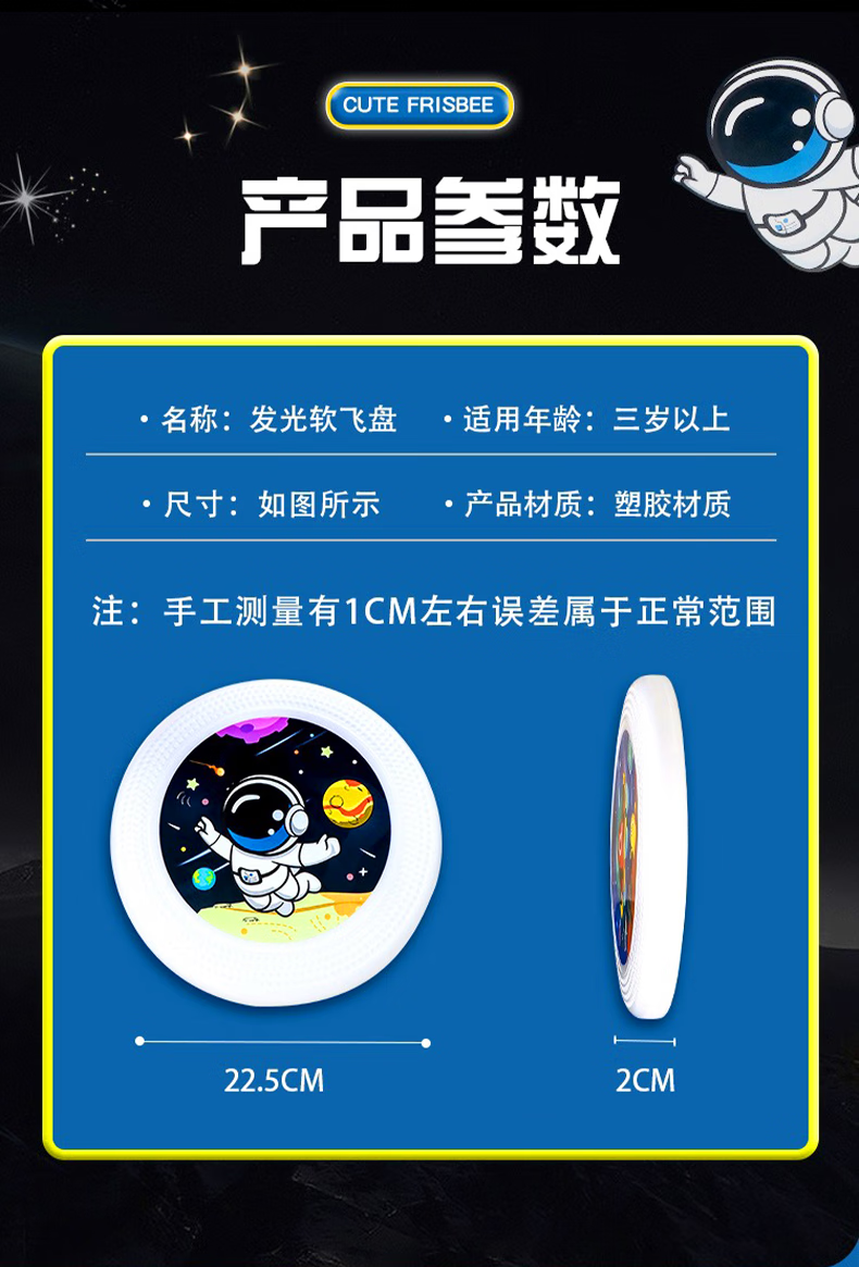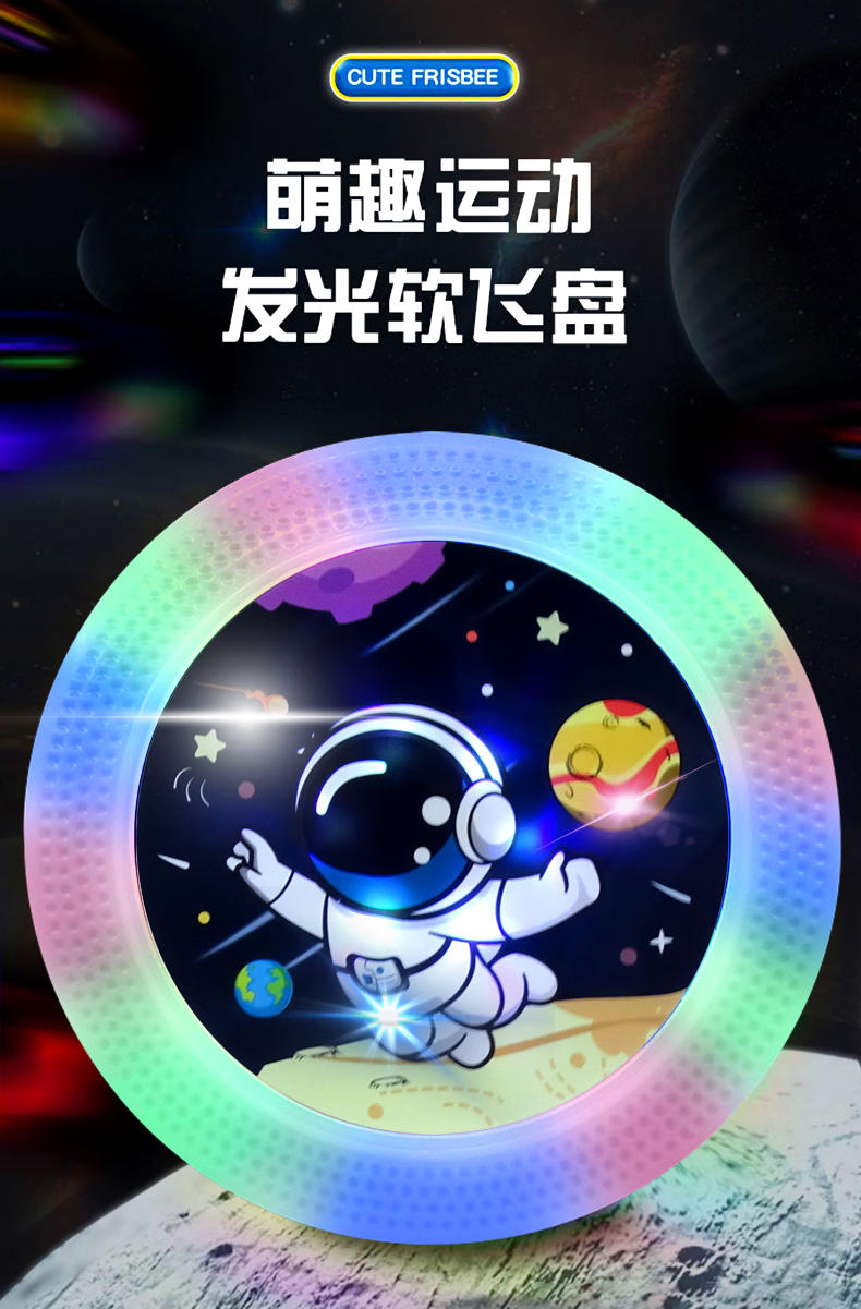 TLXT Children's Soft Frisbee Outdoor Adult Luminous Soft Silicone Flash Dodge Disk Beach Frisbee Rotating Lights Luminous Colorful Lights Astronaut/Soft Thickening