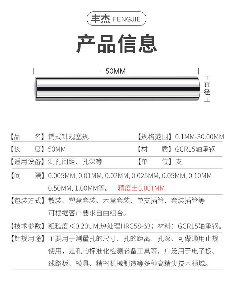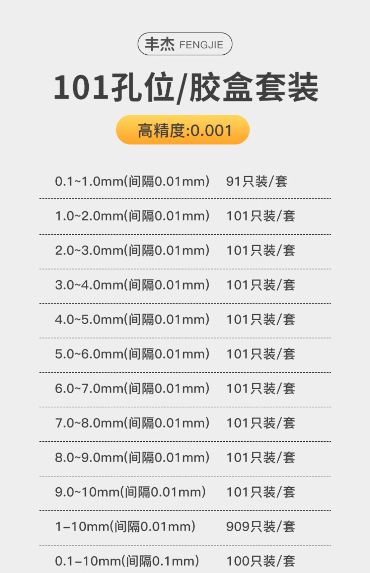 FENGJIE complete set of needle gauges, plug gauges, white steel intervals 0.01mm, high-precision gauges, smooth pass-and-stop gauges 101 0.1-1.0, intervals 0.01 (91 pieces), free handle