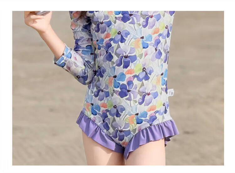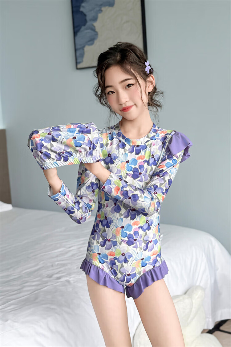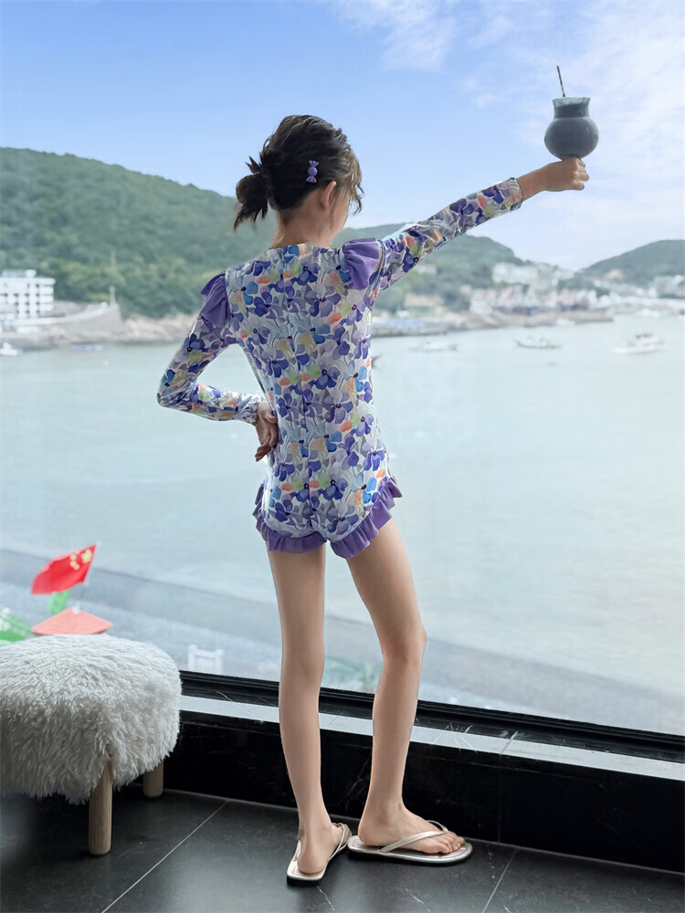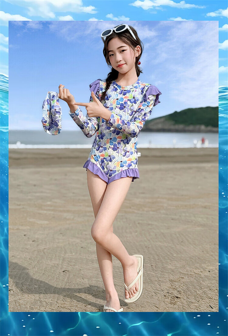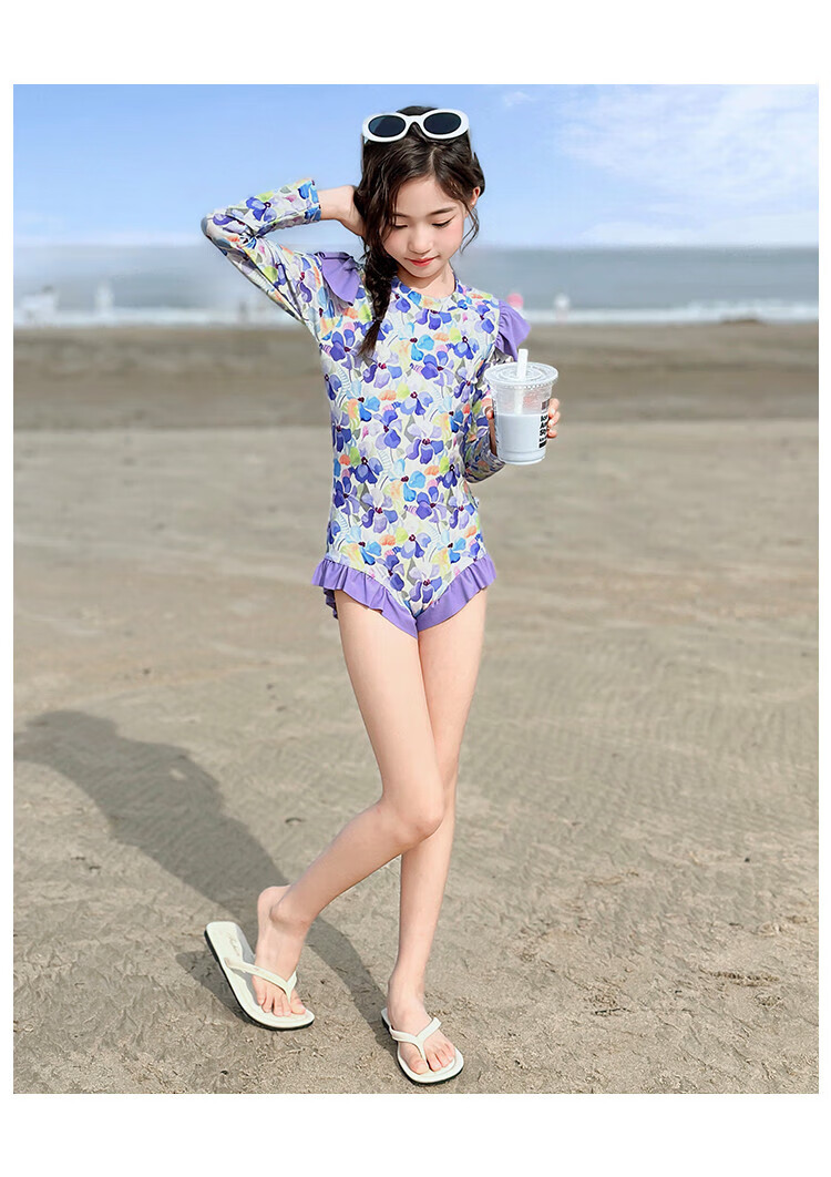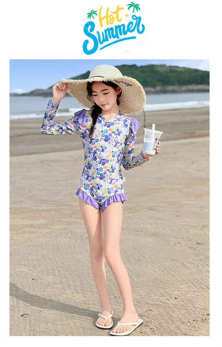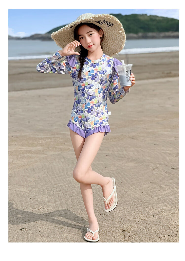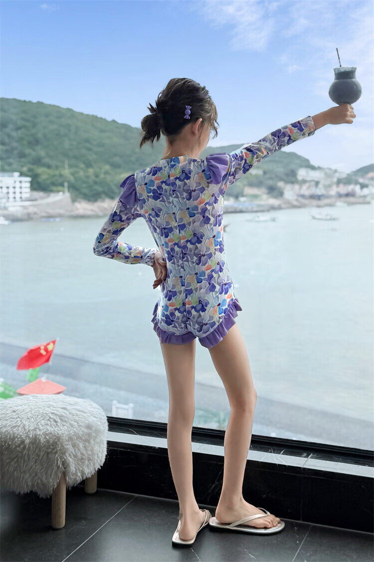 G.DUCKKIDS Girls Swimwear Summer 2025 New Big Girls Long Sleeve Sun Protection Swimsuit Fashionable Children Summer One-piece Swimsuit Picture Color 150 cm