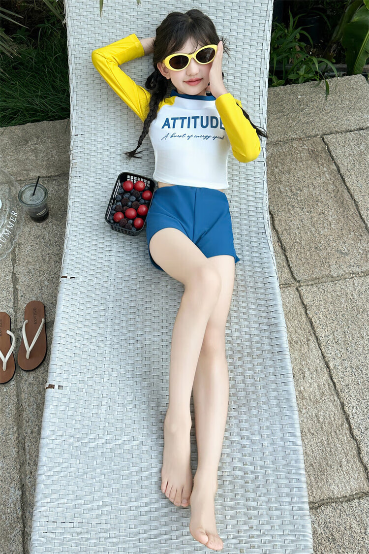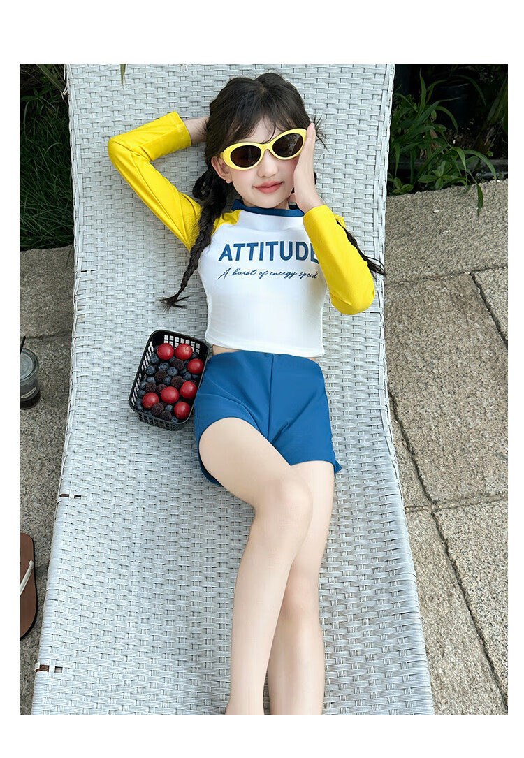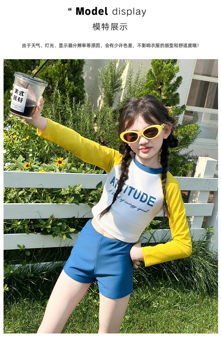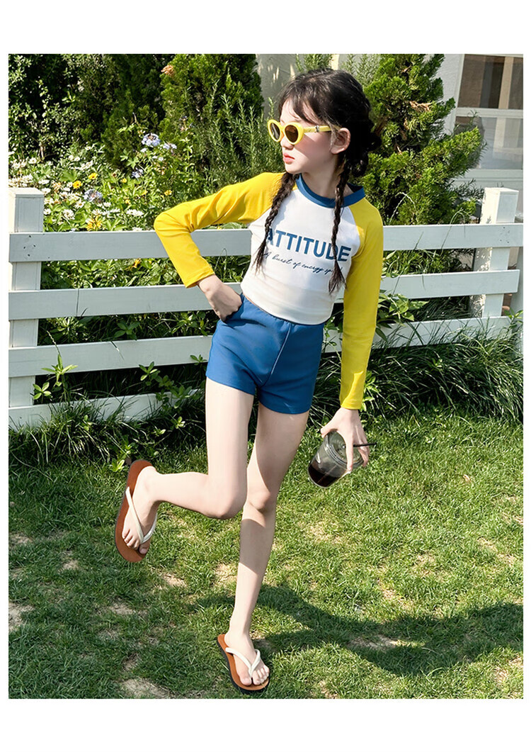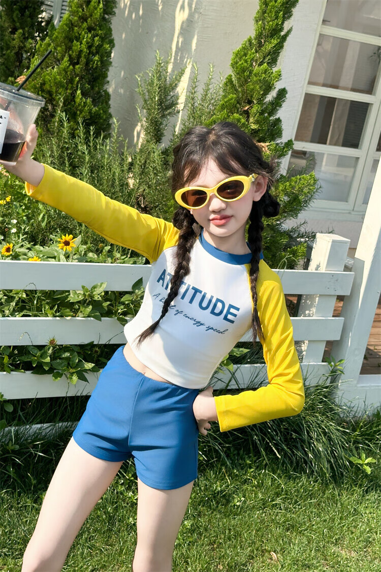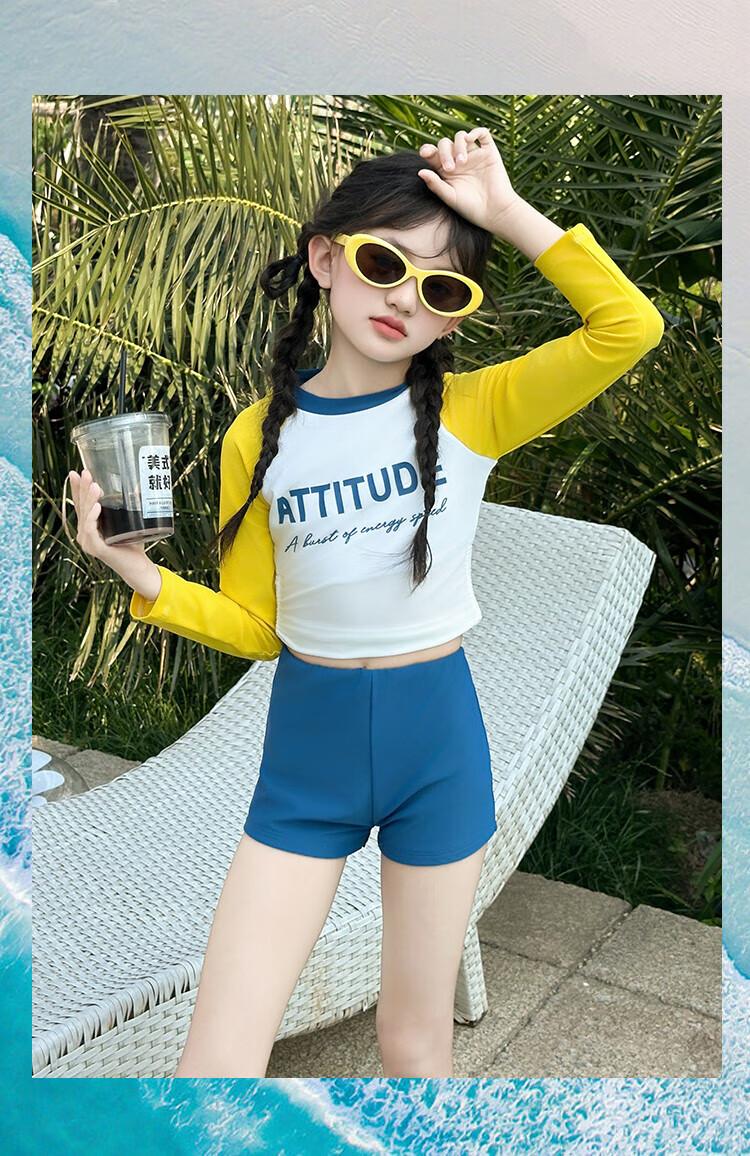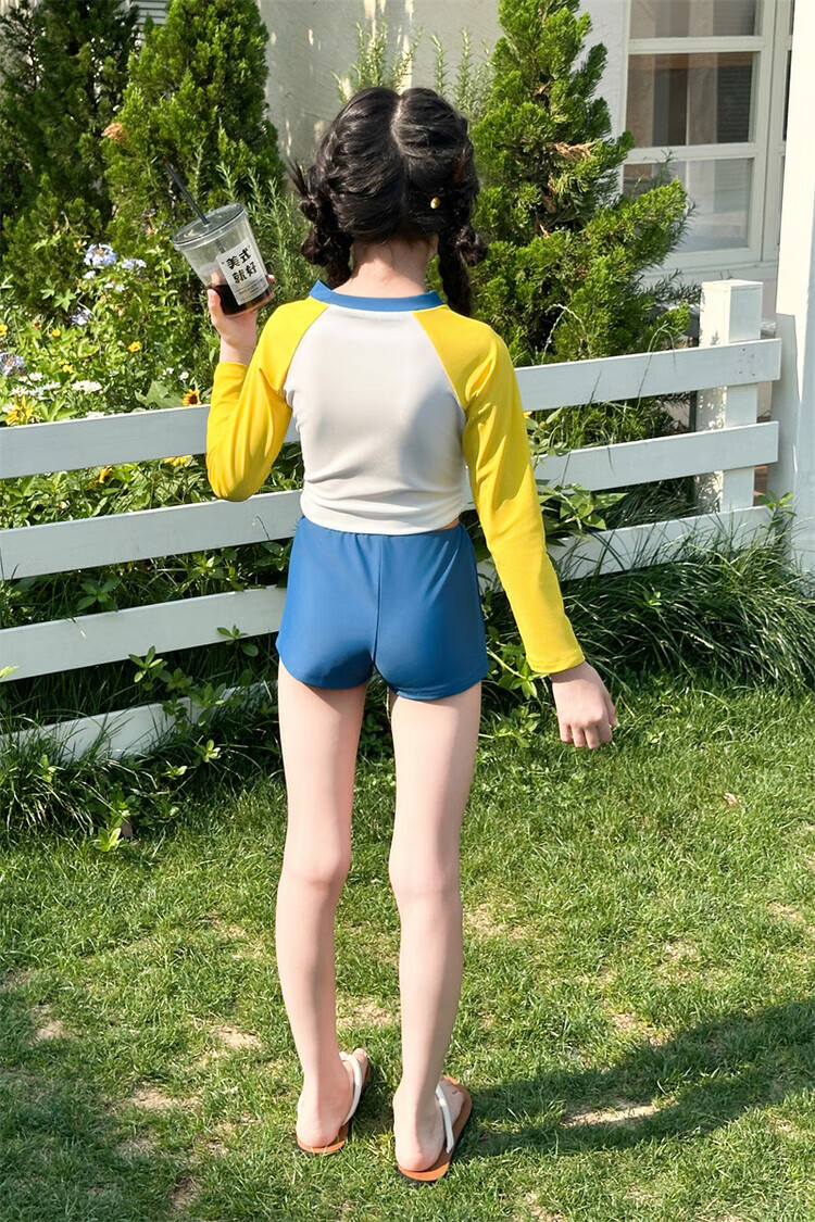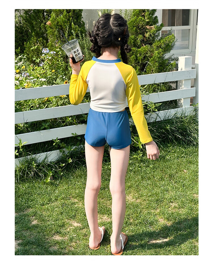 G.DUCKKIDS Girls Swimwear 2025 New Children's Split High-Value Swimwear Big Children Girls Internet Celebrity Long-Sleeved Sun Protection Swimsuit Picture Color 110 cm