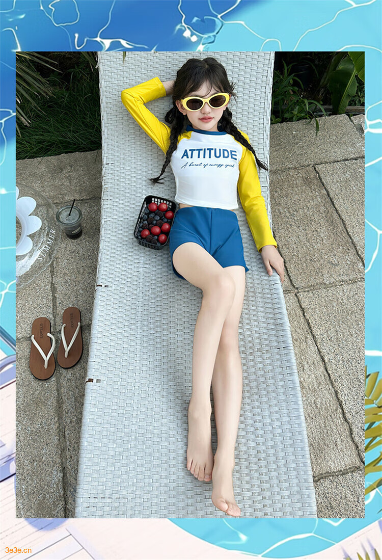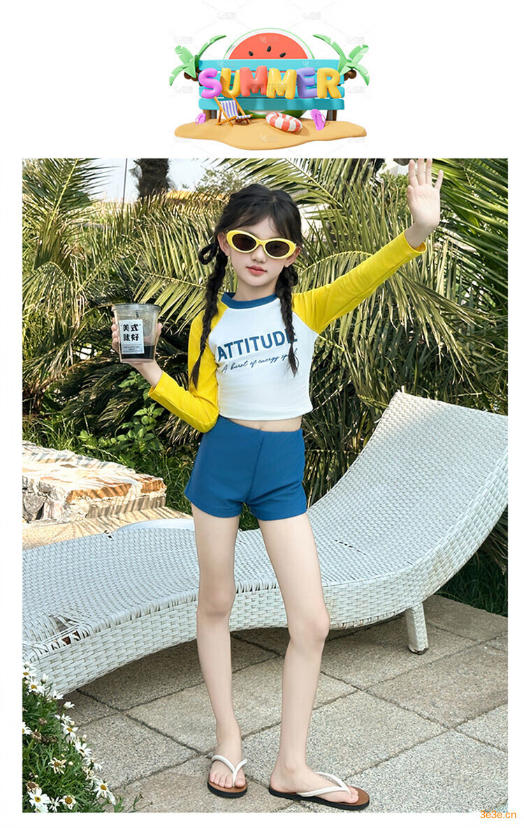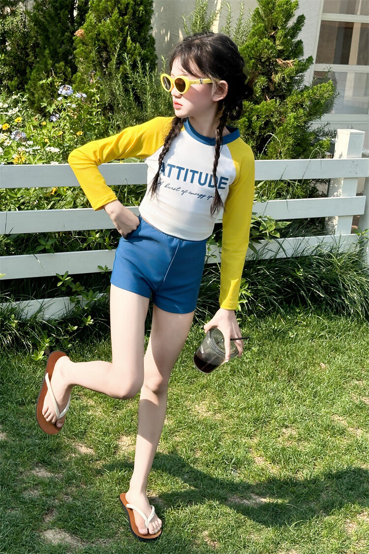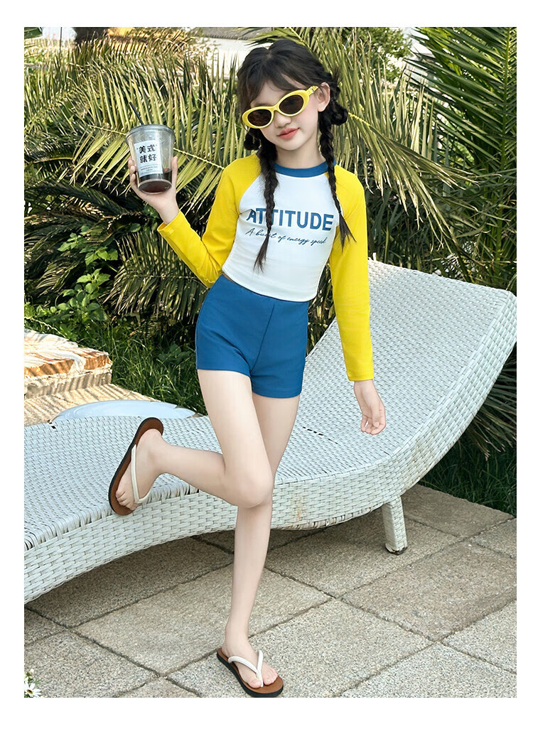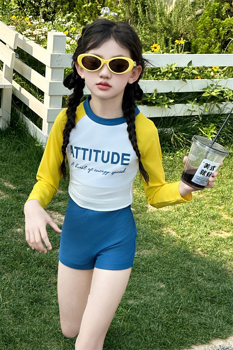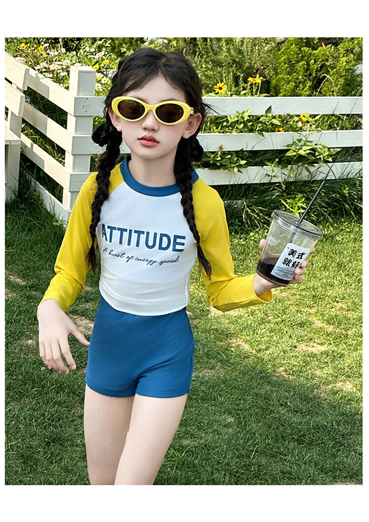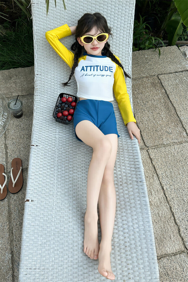 G.DUCKKIDS Girls Swimwear 2025 New Children's Split High-Value Swimwear Big Children Girls Internet Celebrity Long-Sleeved Sun Protection Swimsuit Picture Color 110 cm