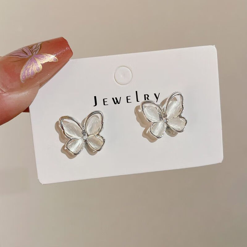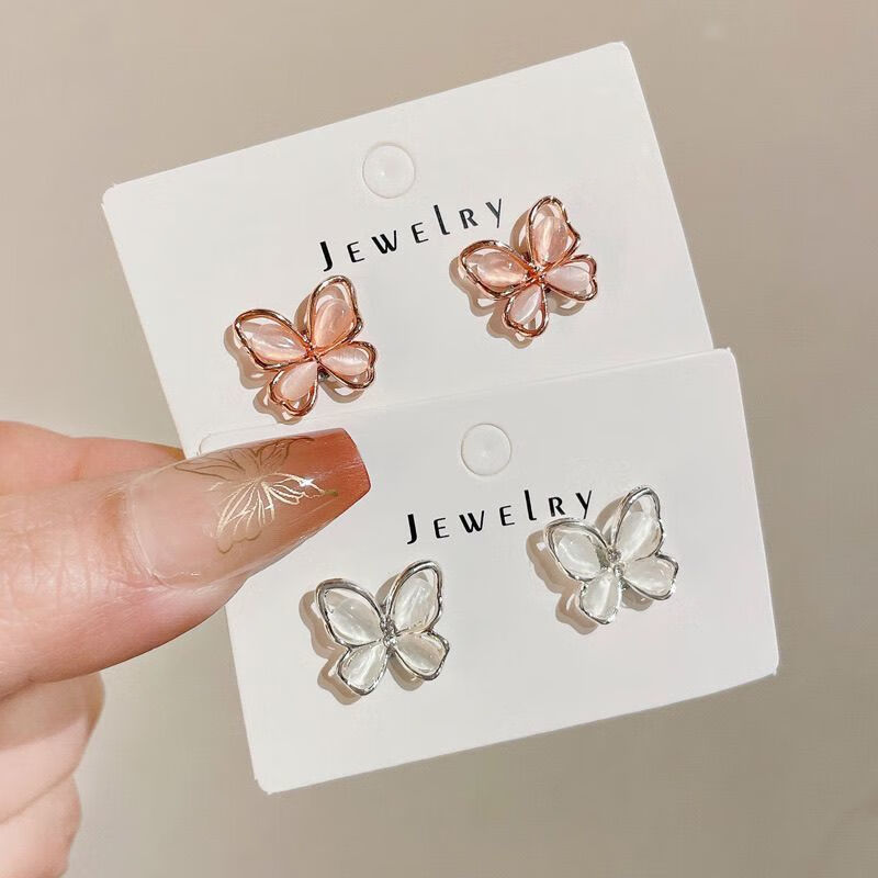 Meipai pack of four super fairy butterflies, exquisite magnetic suction for girls, no need for piercing, students' simple ear piercing earrings, temperament and sweet earrings SN silver butterfly + rose pink butterfly, four magnetic ear clips, no need for ear piercing