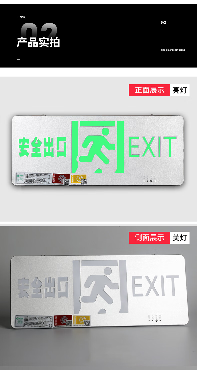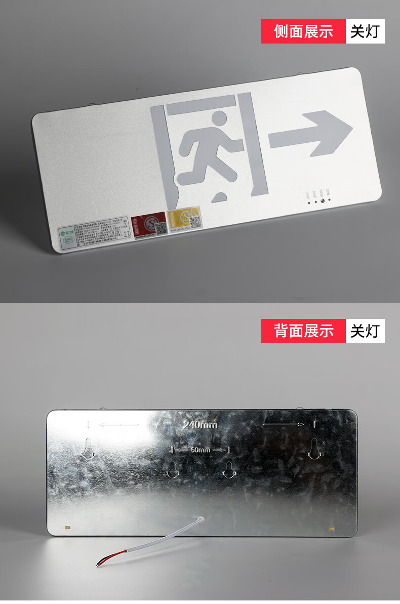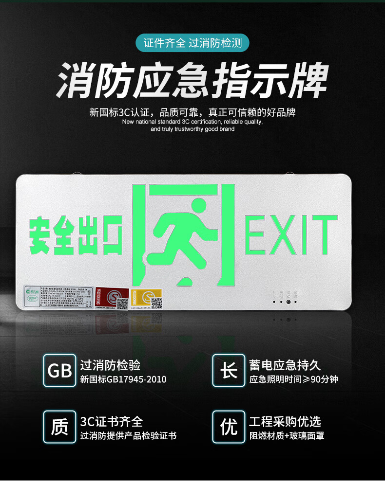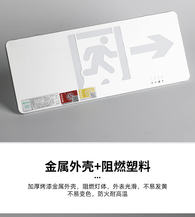 Safety exit fire sign escape emergency self-luminous luminous no-plug evacuation sign fluorescent indicator light safety exit emergency 90 minutes color steel model