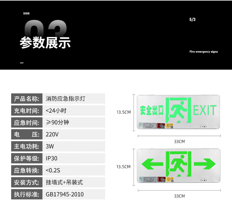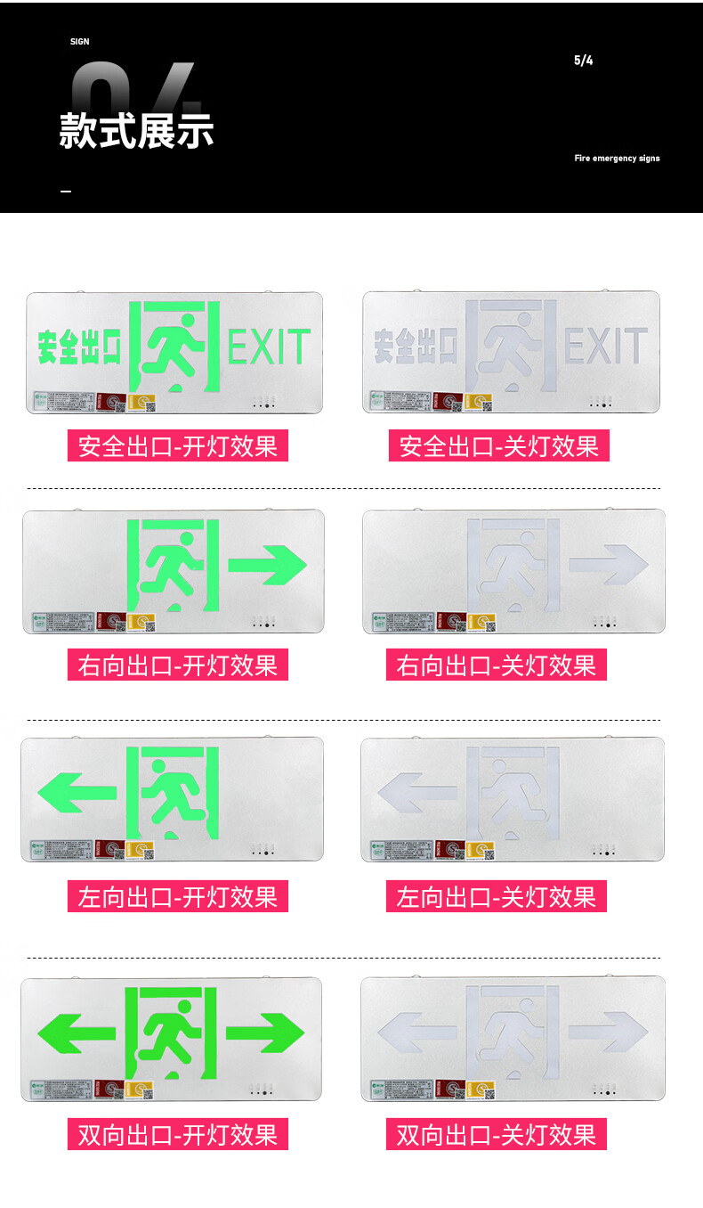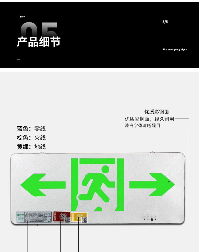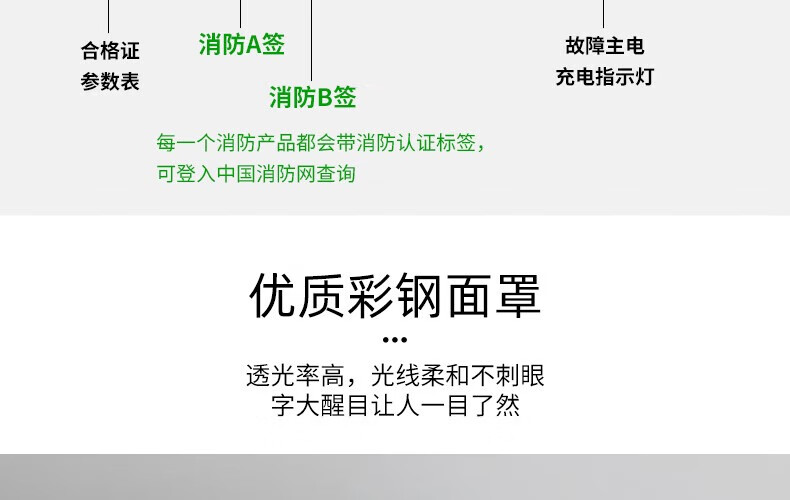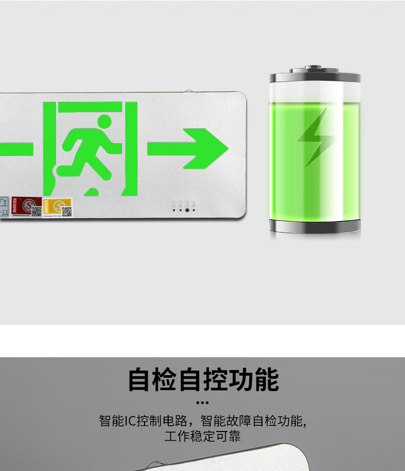Safety exit fire sign escape emergency self-luminous luminous no-plug evacuation sign fluorescent indicator light safety exit emergency 90 minutes color steel model