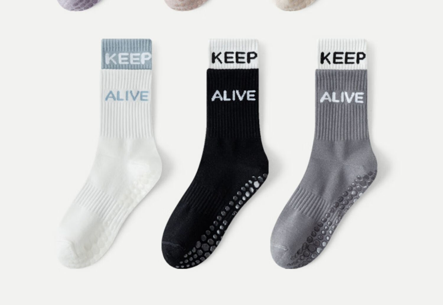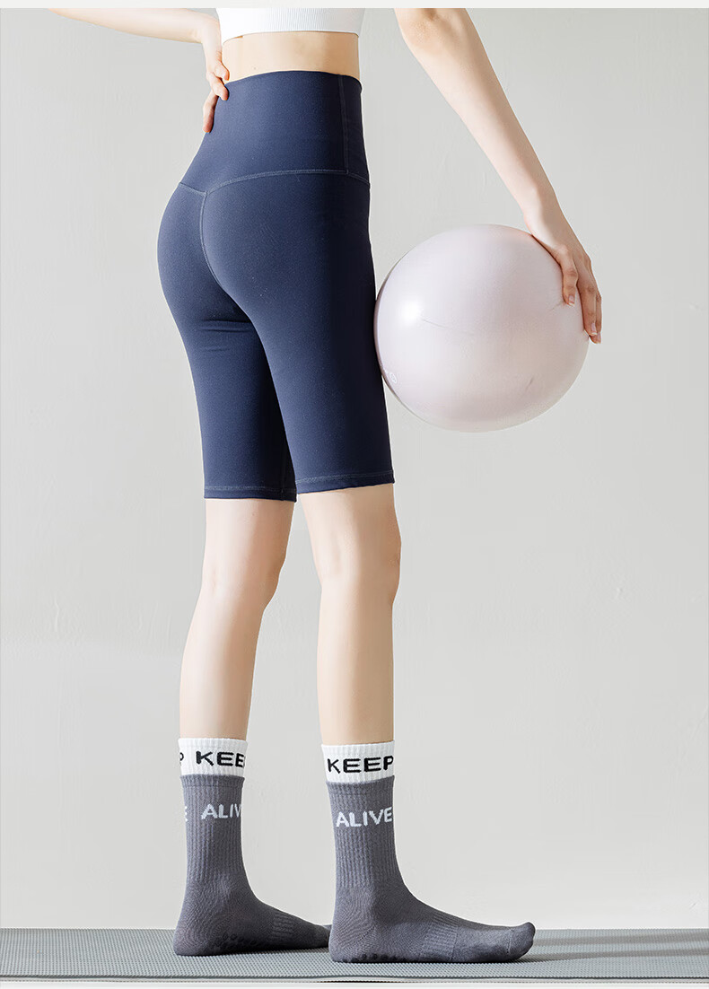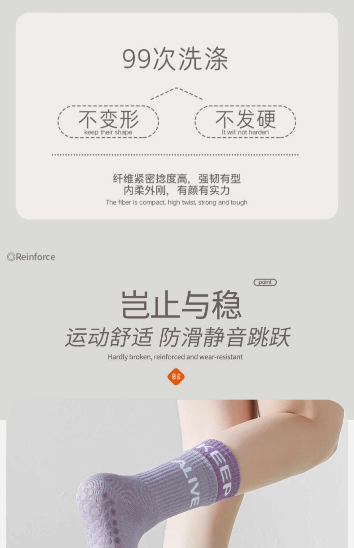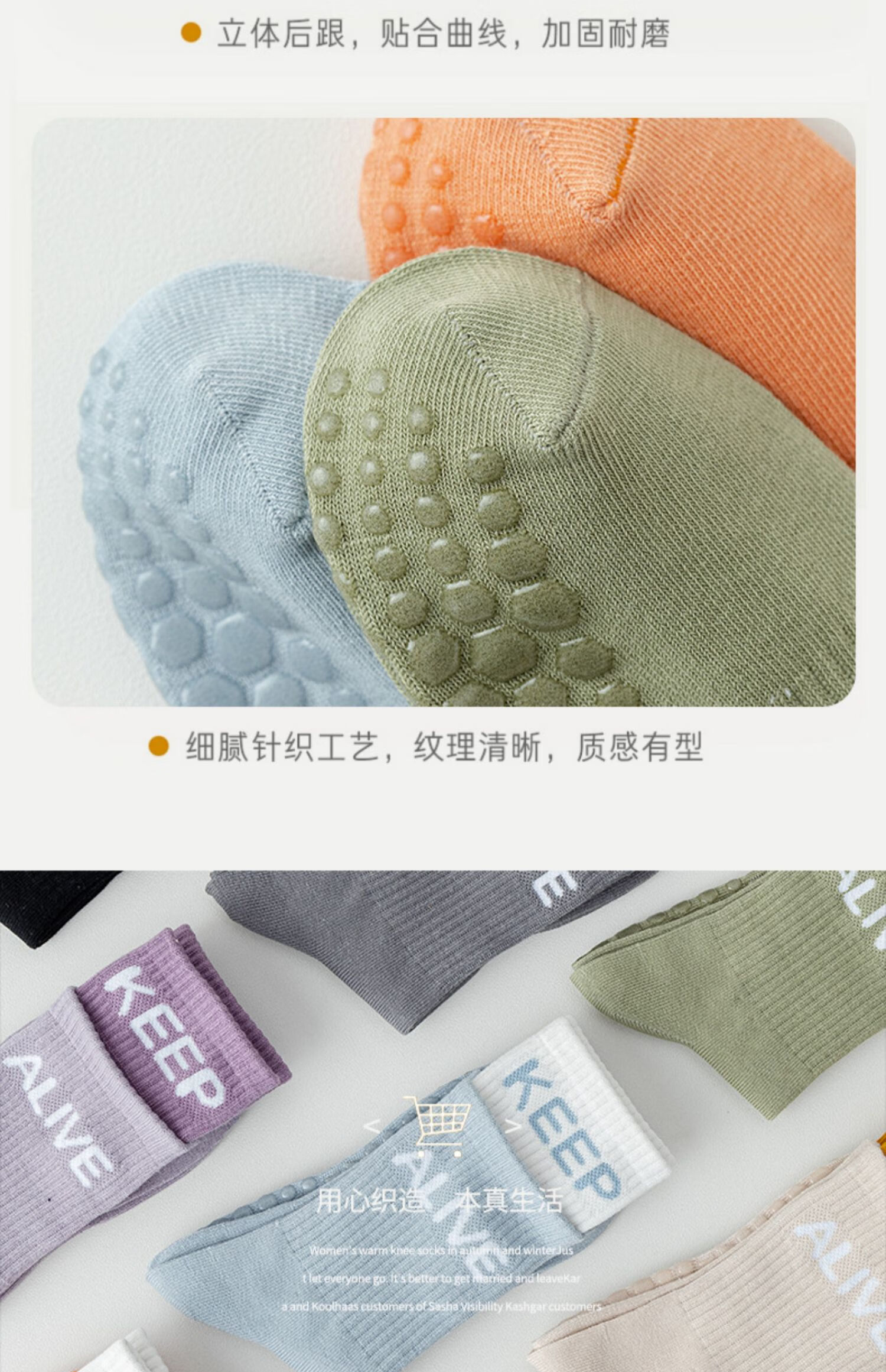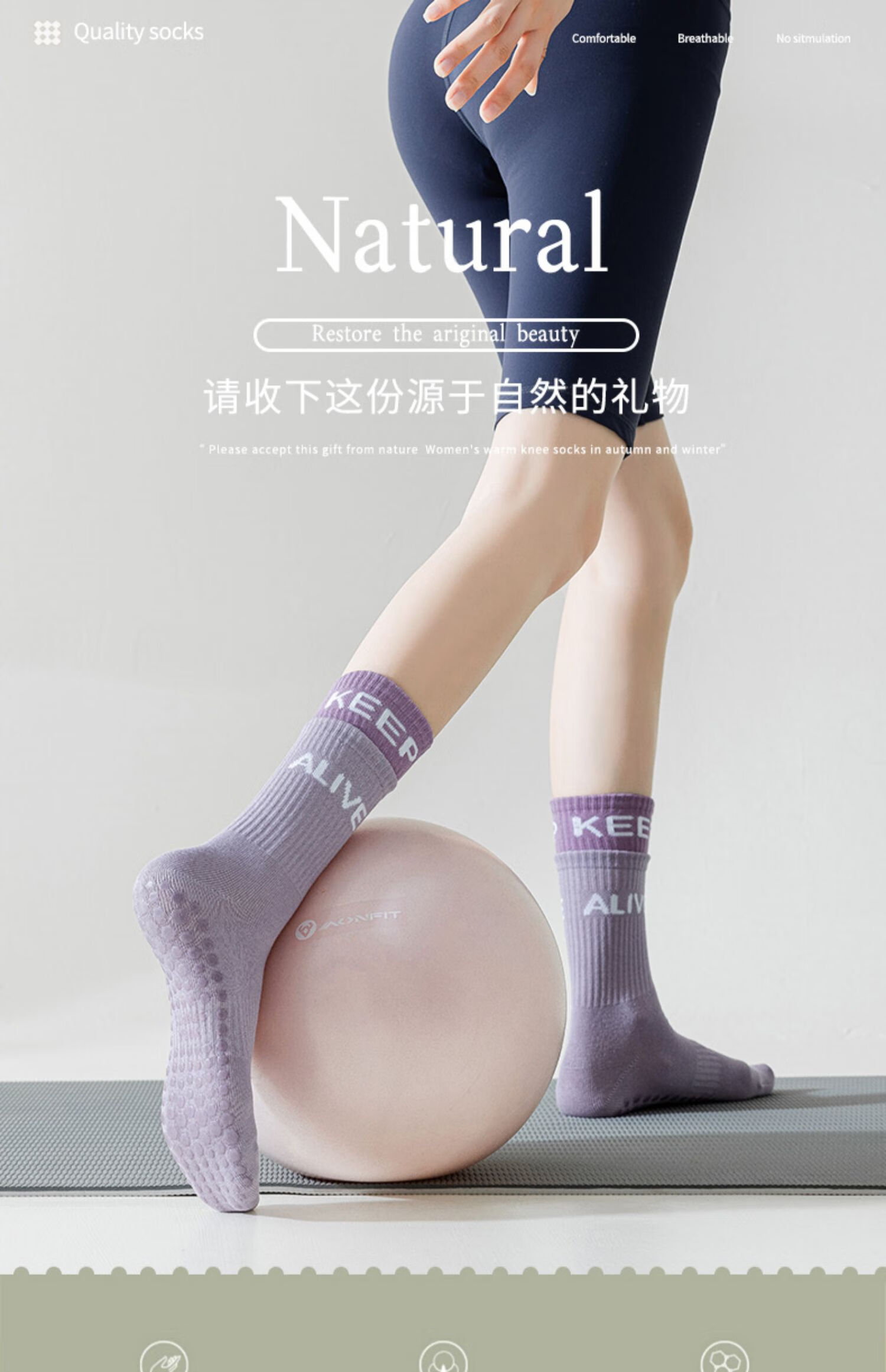 Zhewei Yoga Socks Women's Spring and Summer Thin Mid-calf Non-Slip Pilates Fitness Floor Socks with Shark Pants Long Socks Purple 1 Pair One Size 36-41