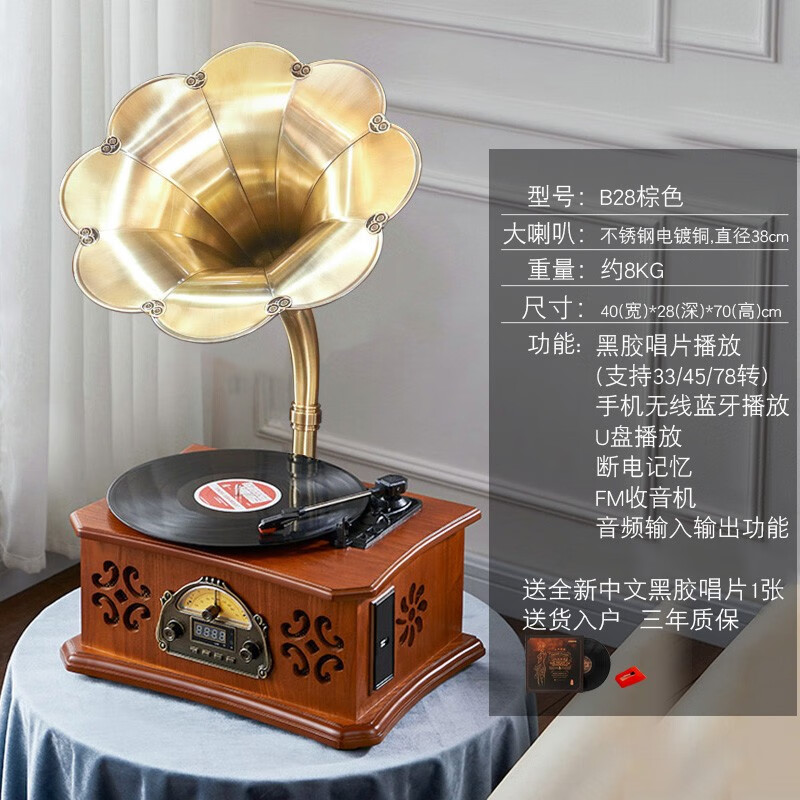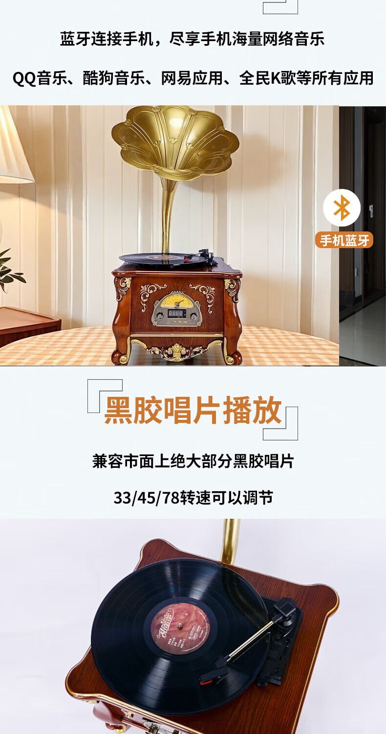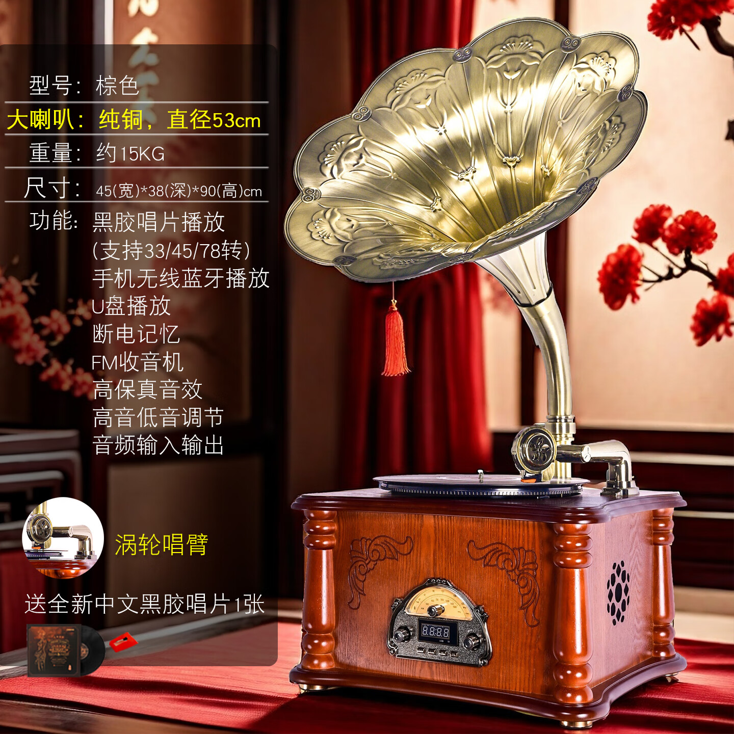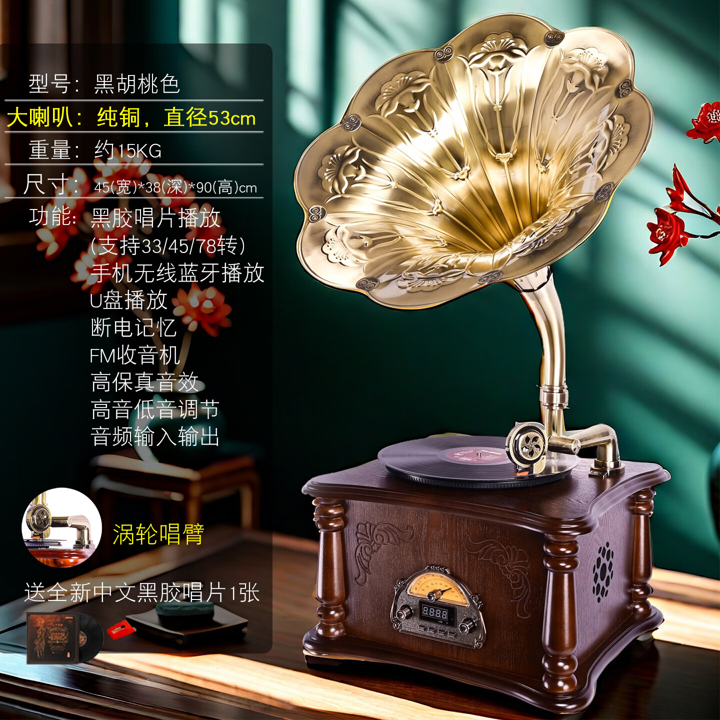 BLACKNOTE Jinmo gramophone Chinese-style vinyl record player antique streaming sound machine large speaker solid wood retro record player Bluetooth D96 A pure copper speaker + subwoofer + plug-in + genuine vinyl record