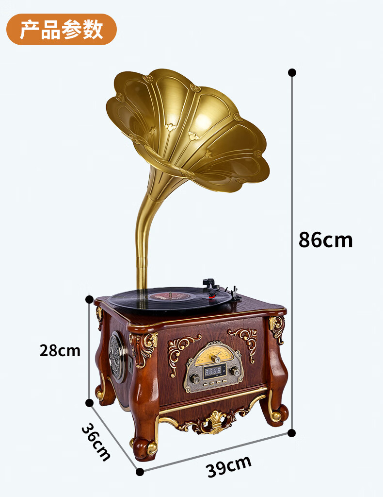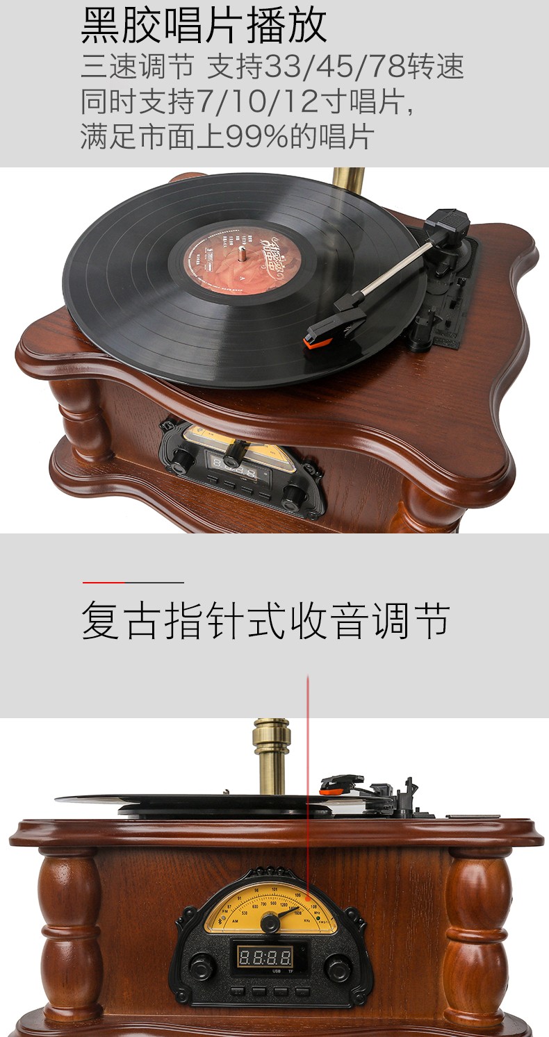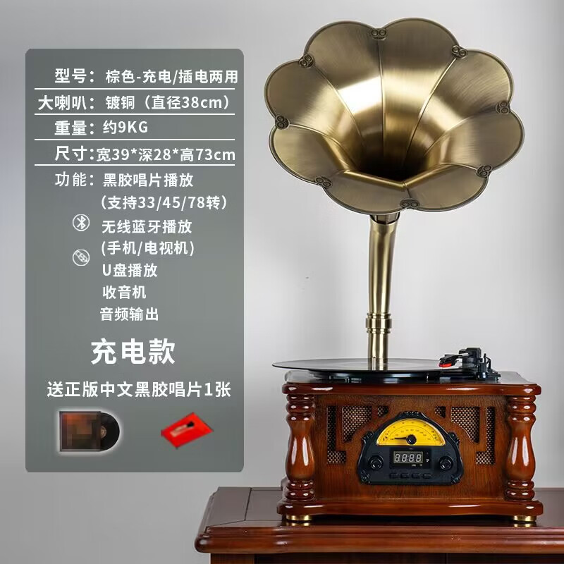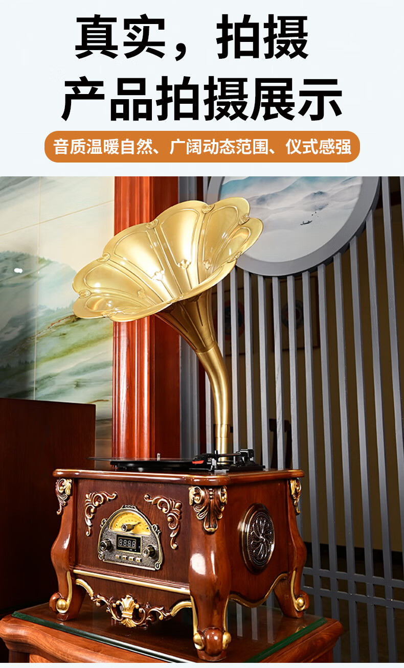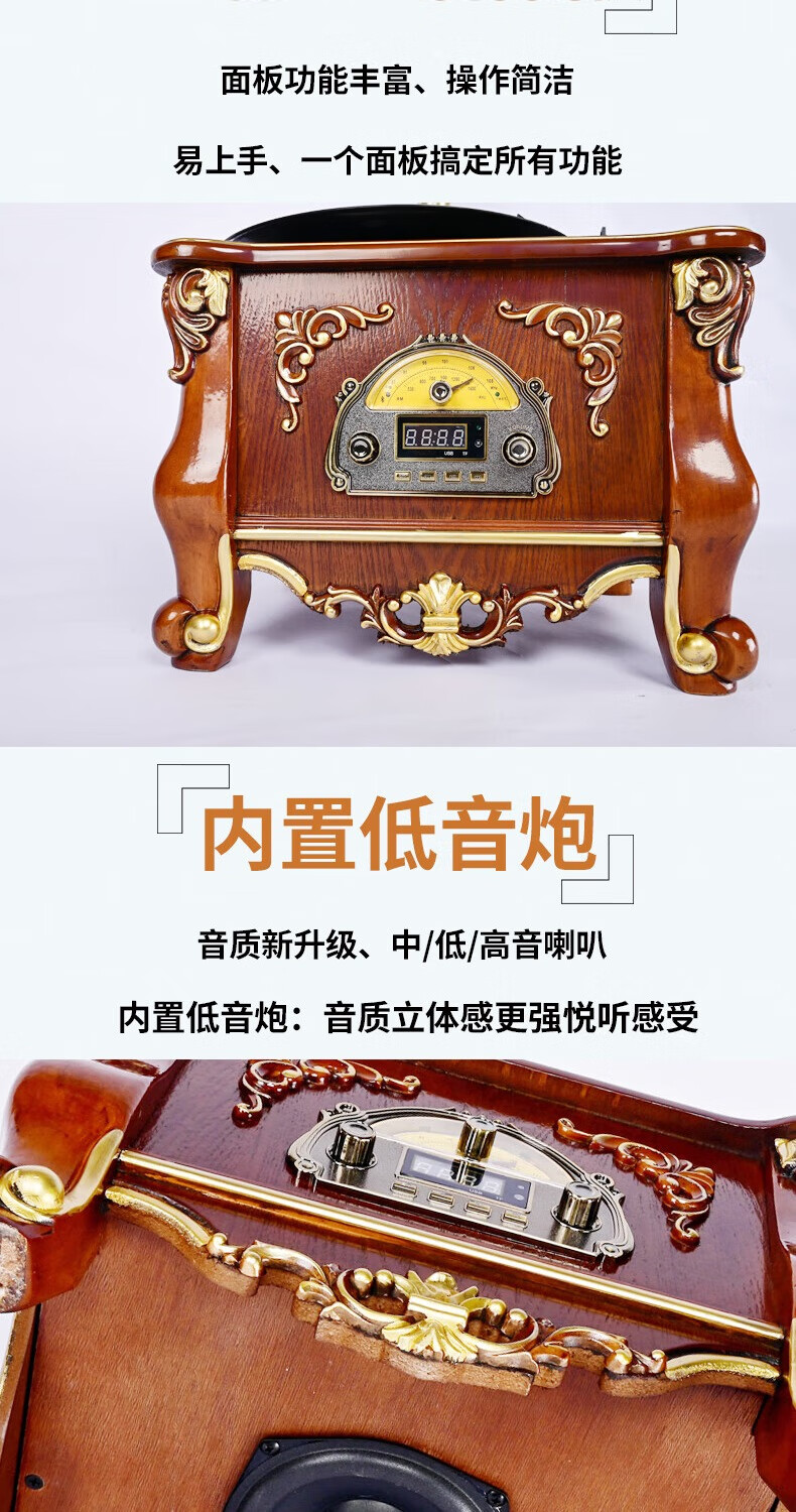 BLACKNOTE Jinmo gramophone Chinese-style vinyl record player antique streaming sound machine large speaker solid wood retro record player Bluetooth D96 A pure copper speaker + subwoofer + plug-in + genuine vinyl record